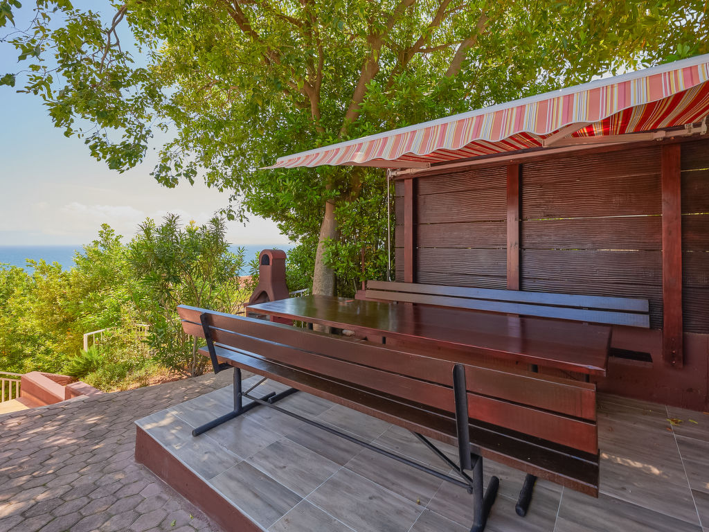 7-Zimmer-Haus 150 m2 auf 3 Stockwerken. 1 Zimmer mit 1 Doppelbett (2 x 90 cm, Länge 200 cm), Sat-TV. Küche (2 Kochplatten) mit Klimaanlage. Ausgang zur Terrasse. Dusche/WC. Obergeschoss: (Aussentreppe) Wohn-/Esszimmer mit 1 Diwanbett (160 cm, Länge 200 cm), Sat-TV und Klimaanlage. Ausgang zur Terrasse. 2 Zimmer, jedes Zimmer mit 1 Doppelbett (2 x 90 cm, Länge 200 cm). Offene Küche (4 Kochplatten, Backofen, Mikrowelle, Tiefkühler, elektrische Kaffeemaschine). Dusche/WC. 2. Obergeschoss: (Aussentreppe) Wohn-/Esszimmer mit 1 Diwanbett (160 cm, Länge 200 cm), Sat-TV und Klimaanlage. Ausgang zur Terrasse. 2 Zimmer, jedes Zimmer mit 1 Doppelbett (2 x 90 cm, Länge 200 cm). Offene Küche (4 Kochplatten, Backofen, Mikrowelle, Tiefkühler, elektrische Kaffeemaschine). Dusche/WC. Terrasse 6 m2, 2 Terrassen 6 m2, überdacht. Terrassenmöbel. Herrliche Panoramasicht auf das Meer. Zur Verfügung: Haartrockner. Internet (Wireless LAN, gratis). 1 Haustier/Hund erlaubt.