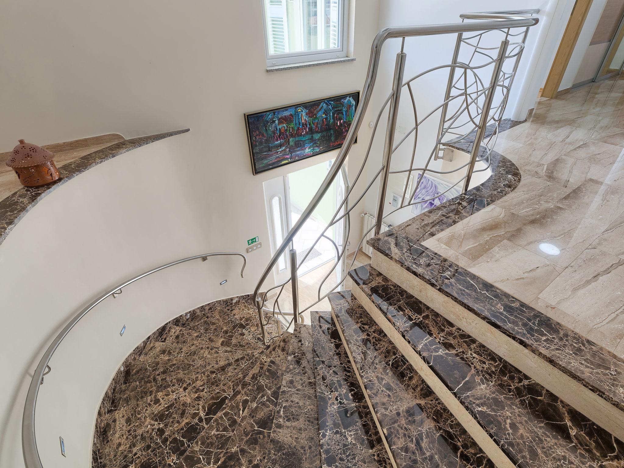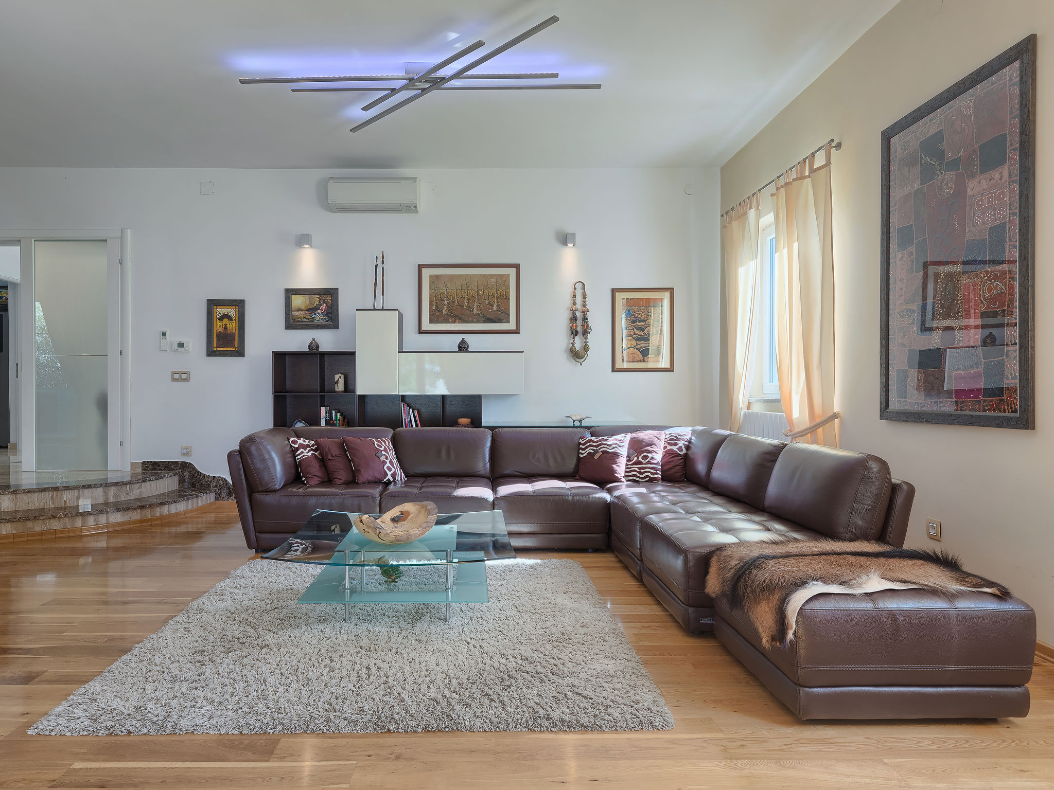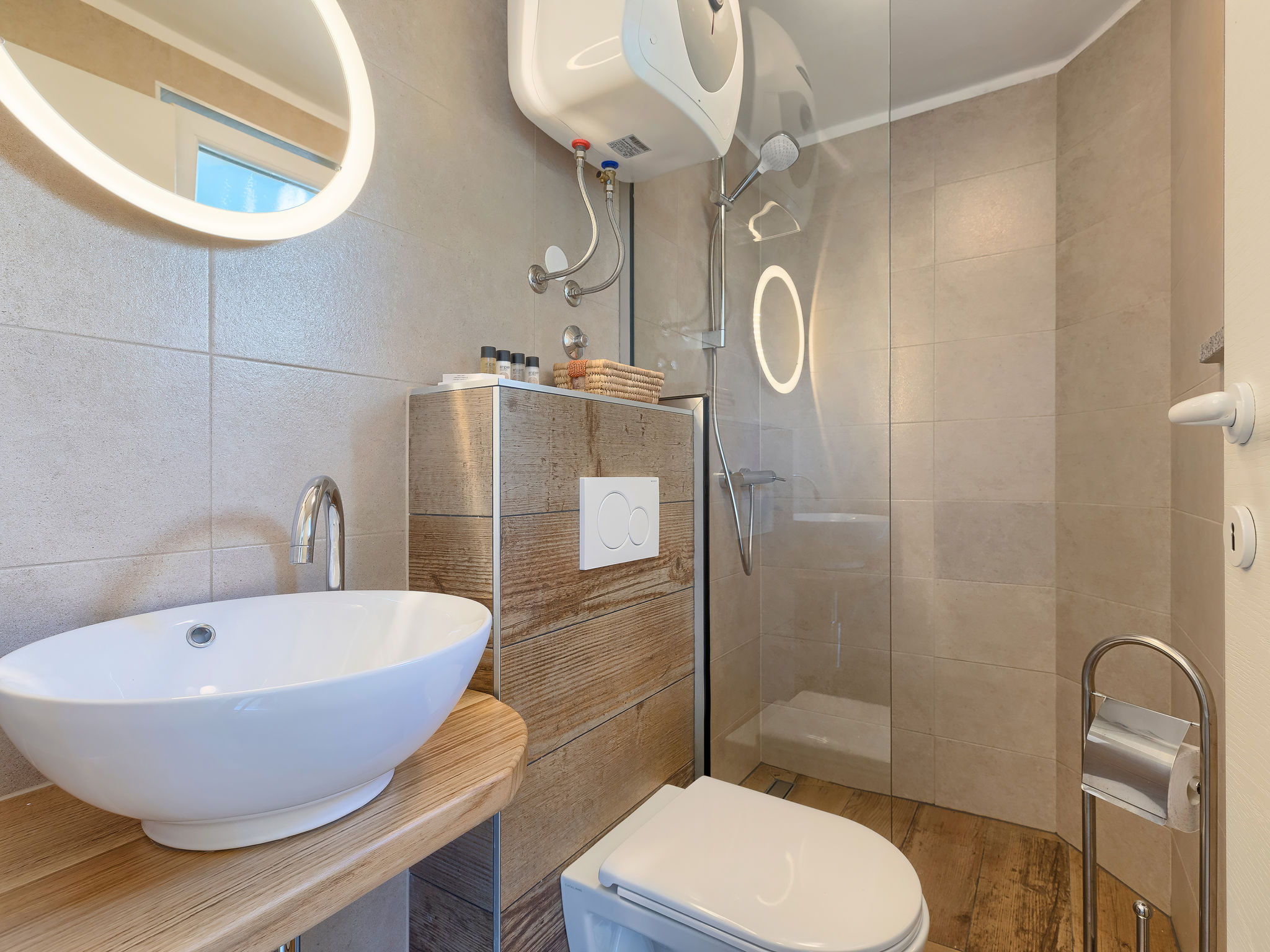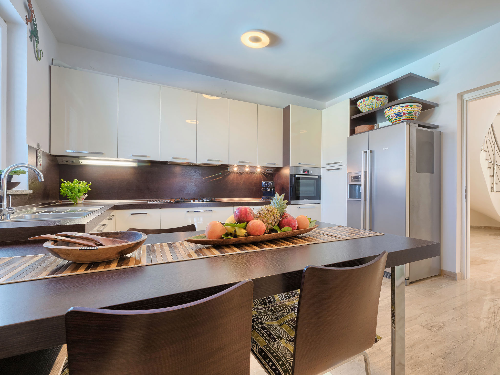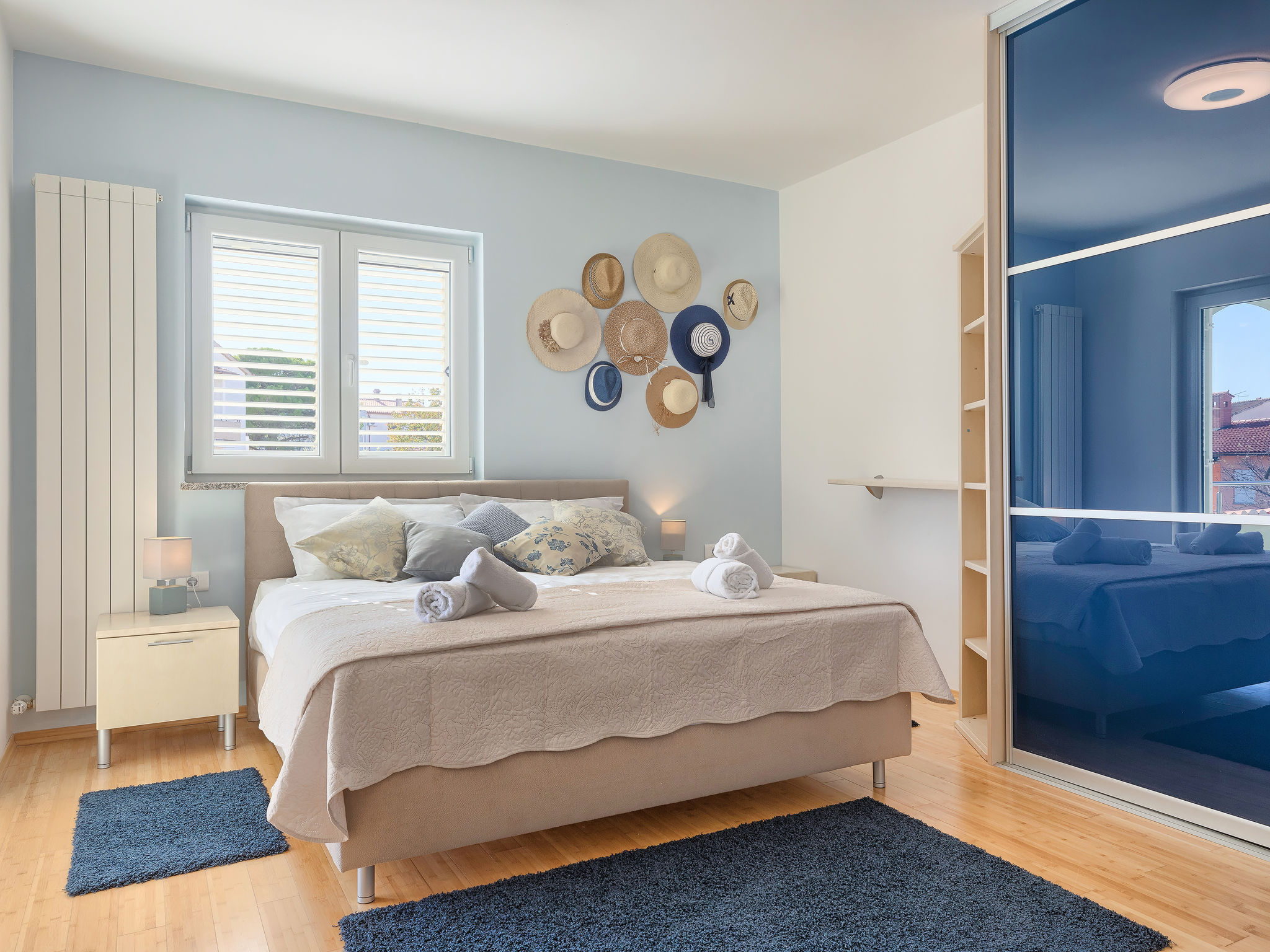 6-Zimmer-Villa 315 m2 auf 3 Stockwerken. Wohn-/Esszimmer mit Sat-TV (Flachbildschirm), Klimaanlage. Ausgang zur Terrasse. Küche (Backofen, Geschirrspüler, 4 Glaskeramikherd Platten, Mikrowelle, Tiefkühler, elektrische Kaffeemaschine) mit Klimaanlage. Dusche/Bidet/WC. Obergeschoss: 1 Zimmer mit 1 franz. Bett (180 cm, Länge 200 cm), Klimaanlage. Ausgang zur Terrasse. 1 Zimmer mit 2 Betten (90 cm, Länge 200 cm), Sat-TV (Flachbildschirm), Klimaanlage. Ausgang zur Terrasse. 1 Zimmer mit 1 franz. Bett (180 cm, Länge 200 cm), Bad/Bidet/WC, Doppelwaschbecken, Sprudelbad und Klimaanlage. Dusche/Bidet/WC. 3. Obergeschoss: 1 Zimmer mit 2 Betten (90 cm, Länge 200 cm), 2 Diwanbetten (90 cm, Länge 200 cm), Sat-TV (Flachbildschirm), Klimaanlage. Ausgang zur Terrasse. 1 Zimmer mit 2 Betten (90 cm, Länge 200 cm), Klimaanlage. Dusche/Bidet/WC. Heizung (extra). Terrasse 20 m2, überdacht, 3 Terrassen 10 m2. Terrassenmöbel, Gartengrill (mobil), Liegestühle. Sicht auf das Meer und das Schwimmbad. Zur Verfügung: Safe, Babybett, Haartrockner. Internet (Wireless LAN, gratis). Parkplatz (überdacht, 1 Auto). Bei Belegung mit weniger Personen als der maximalen Personenzahl steht eine Etage nicht zur Verfügung.