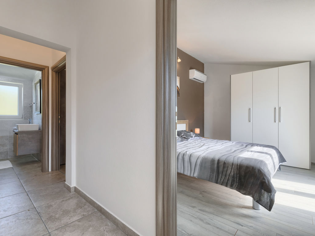 6-Zimmer-Haus 150 m2 auf 2 Stockwerken. Wohn-/Esszimmer mit Küchenblock, Sat-TV und Klimaanlage. 1 Zimmer mit 2 Betten (80 cm, Länge 190 cm). 1 Zimmer mit 1 franz. Bett (180 cm, Länge 200 cm), Klimaanlage. Wohn-/Esszimmer mit Sat-TV und Klimaanlage. Offene Küche (Backofen, Geschirrspüler, 4 Glaskeramikherd Platten, Mikrowelle, Tiefkühler, elektrische Kaffeemaschine). 2 Duschen/WC. Obergeschoss: 1 Zimmer mit 1 franz. Bett (160 cm, Länge 200 cm), Klimaanlage. Ausgang zur Terrasse. 1 Zimmer mit 2 Betten (80 cm, Länge 200 cm), Klimaanlage. Dusche/WC. Terrasse 8 m2. Terrassenmöbel, Liegestühle. Zur Verfügung: Babybett. Internet (Wireless LAN, gratis). 1 Haustier/Hund erlaubt. Ein Haus mit Wohn-/Essbereich, offener Küche, 2 Schlafzimmern im Erdgeschoss und Taverne mit offenem Kamin, Esstisch und offener Küche (2 Kochplatten) im Untergeschoss. Das andere Haus mit Wohn-/Essbereich, offener Küche im Erdgeschoss und 2 Schlafzimmern im ersten Stock.