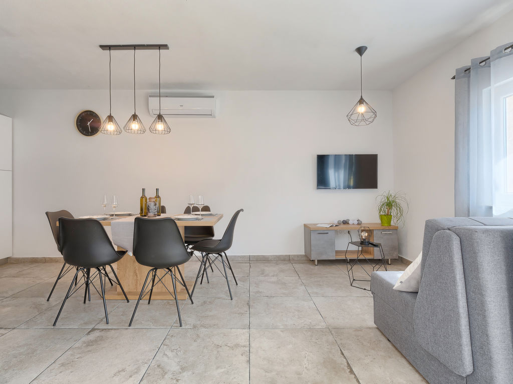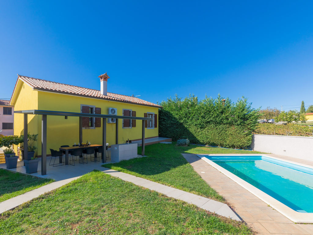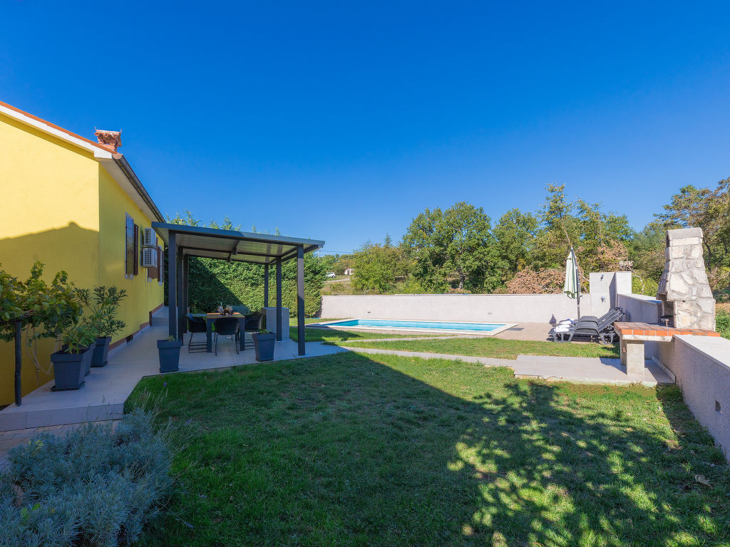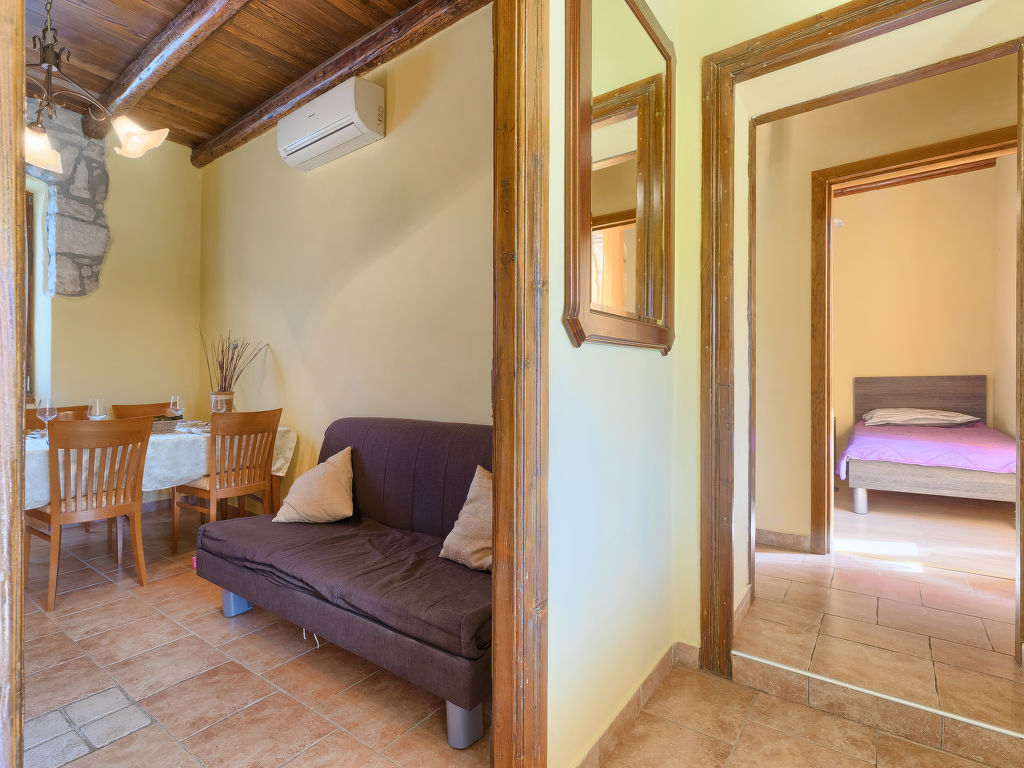 Einfamilienhaus "Corina", auf 2 Stockwerken. Im Weiler Mali Golji, 5 km vom Zentrum von Labin, ruhige, sonnige Lage, 12 km vom Meer. Zur Alleinbenutzung: Grundstück 500 m2, kleiner Garten mit Rasen und Pflanzen, Schwimmbad eckig (8 x 3 m, 26 m2, 140 cm tief, 25.04.-10.10.) mit Innentreppe. Aussendusche, Terrasse (15 m2), Gartenmöbel, Grill. Im Hause: Internetzugang, Waschmaschine. Parkplatz (für 4 Autos) beim Haus auf dem Grundstück. Einkaufsgeschäft 1 km, Supermarkt 5 km, Restaurant 3 km, Kieselstrand 12 km. Reitstall 10 km, Wanderwege ab Haus 100 m, Radweg 150 m. Die Anlage besteht aus zwei Häusern welche nur zusammen vermietet werden.