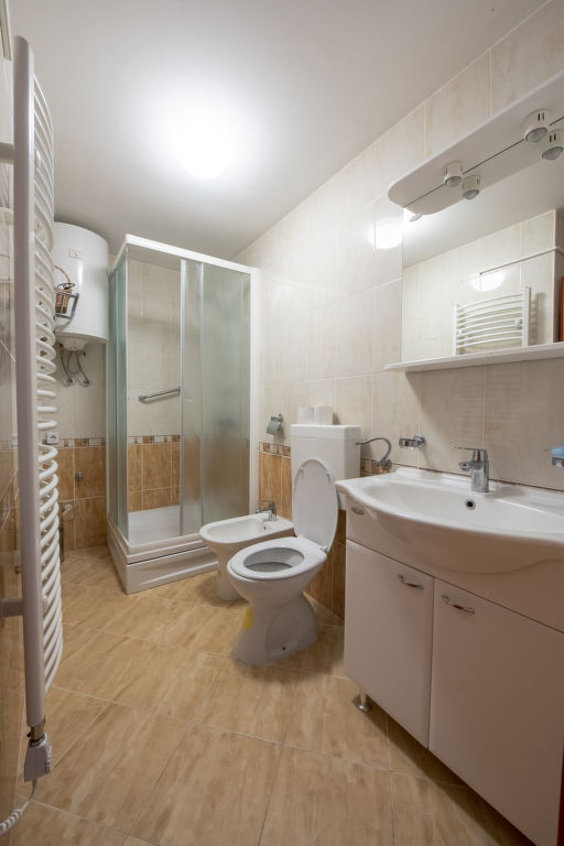 4-Zimmer-Doppelhaushälfte 120 m2. Vollständig renoviert im Jahre 2015: Wohn-/Esszimmer mit 1 Diwanbett (120 cm, Länge 190 cm). Ausgang zur Terrasse. 1 Zimmer mit 2 Betten (80 cm, Länge 200 cm), TV und Klimaanlage. 1 Zimmer mit 1 Doppelbett (2 x 90 cm, Länge 200 cm), TV (Flachbildschirm), Klimaanlage. 1 Zimmer mit 1 Diwanbett (120 cm, Länge 190 cm), 1 Doppelbett (2 x 80 cm, Länge 200 cm). Offene Küche (4 Kochplatten, Backofen). Dusche/WC, Dusche/Bidet/WC. Terrasse 20 m2, überdacht. Terrassenmöbel, Liegestühle. Sicht auf das Schwimmbad. Zur Verfügung: Safe. Internet (Wireless LAN, gratis).