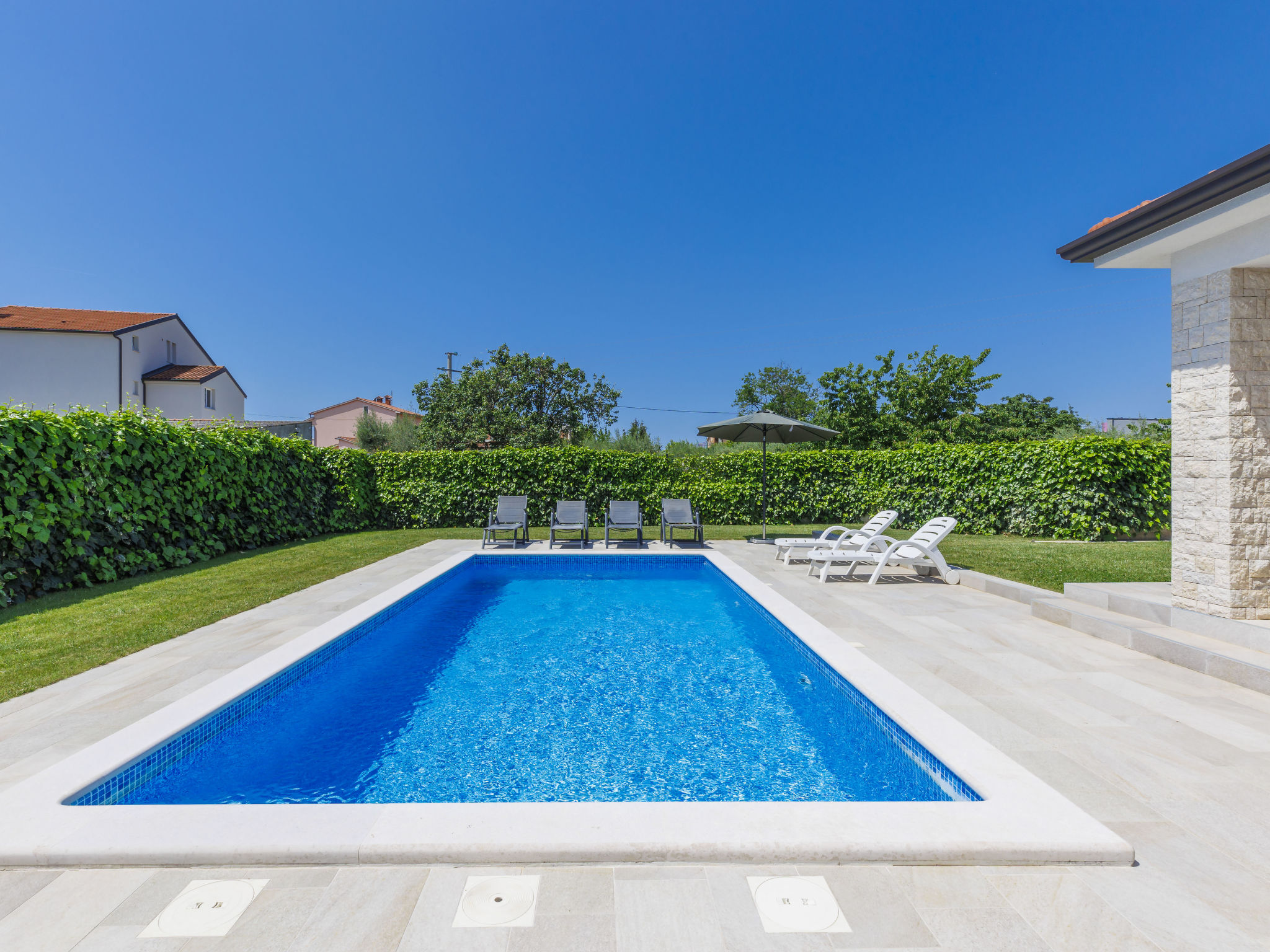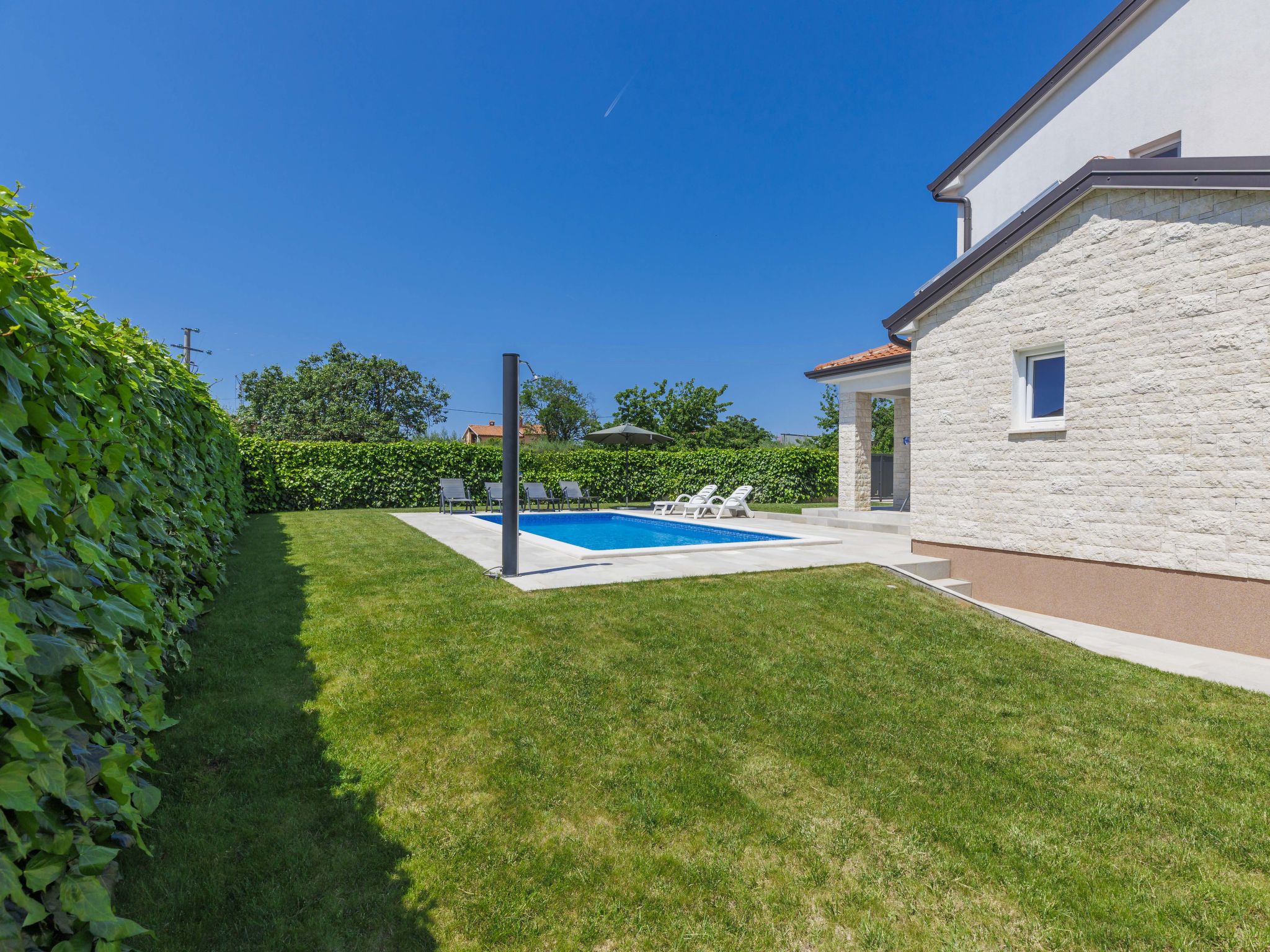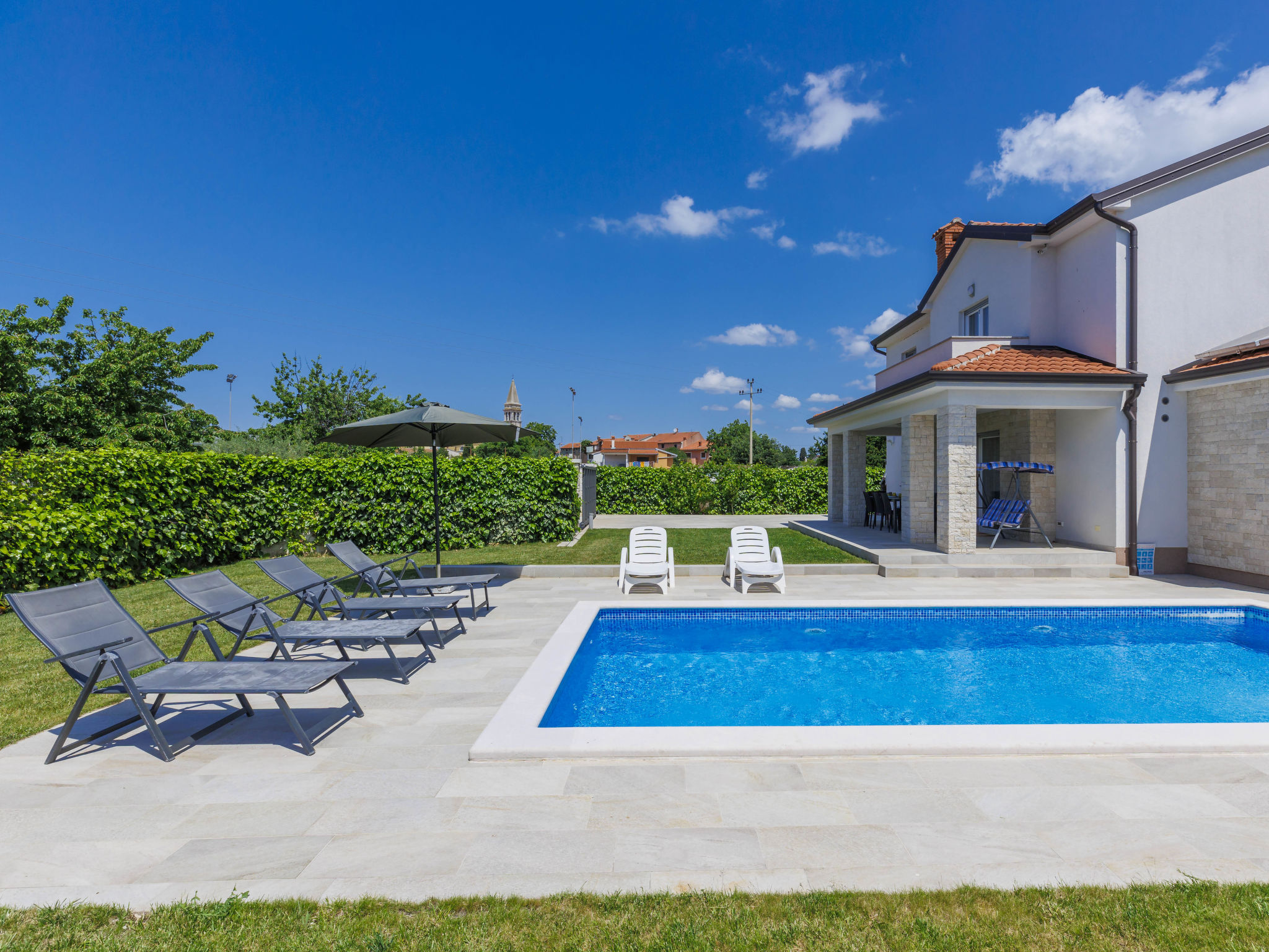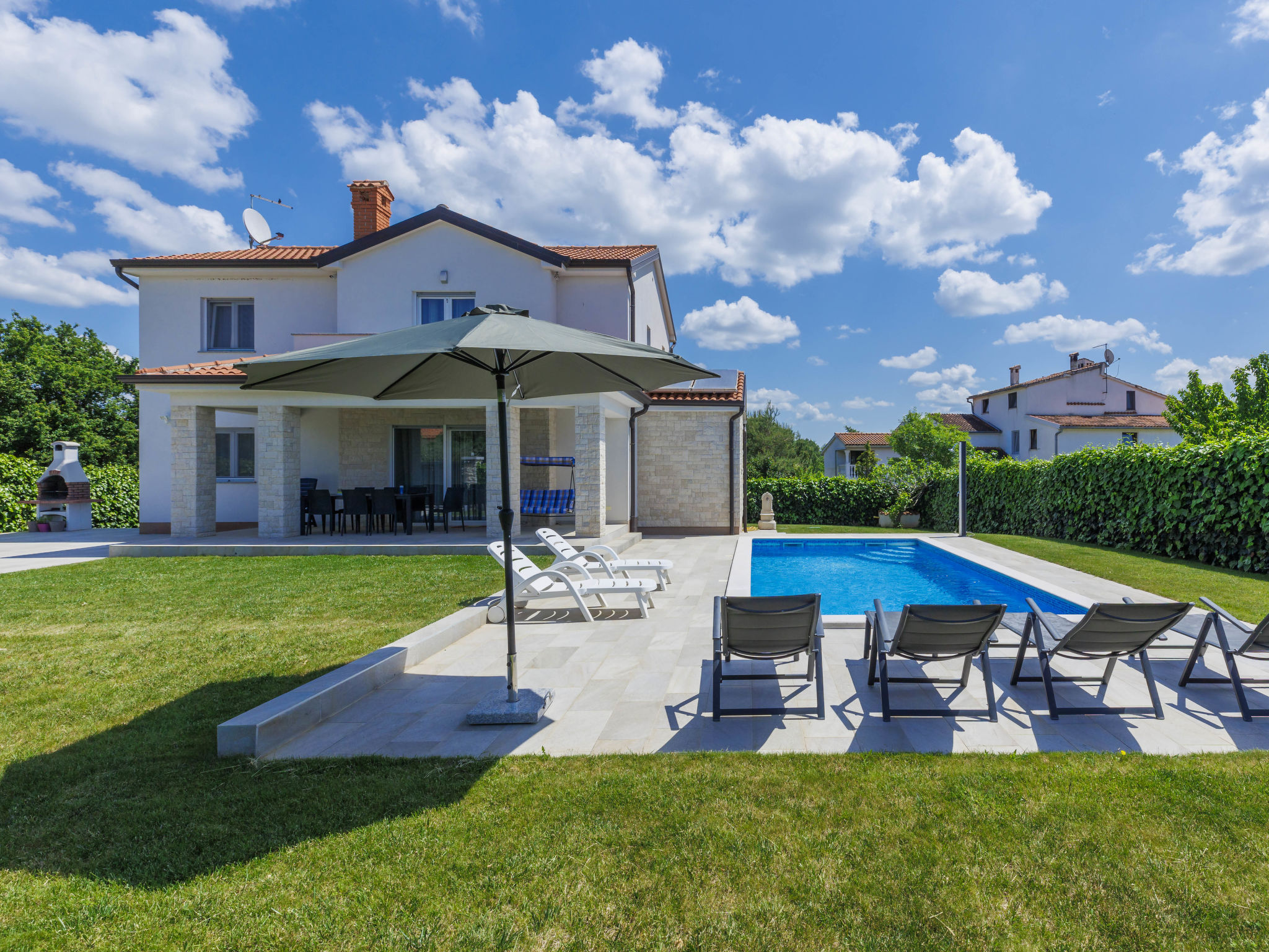 Nova Vas 6 km von Poreč: Schönes Einfamilienhaus "Villa Zirdum", auf 2 Stockwerken, Baujahr 2019. 300 m vom Zentrum von Nova Vas, sonnige Lage, 4 km vom Meer, 4 km vom Strand. Zur Alleinbenutzung: Grundstück 600 m2 (eingezäunt), Garten mit Rasen, Schwimmbad eckig (8 x 4 m, 150 cm tief, 01.05.-15.10.) mit Innentreppe. Aussendusche, Gartenmöbel, Grill. Im Hause: Internetzugang, Waschmaschine. Parkplatz (für 3 Autos) beim Haus auf dem Grundstück. Supermarkt 400 m, Restaurant 500 m, Kieselstrand 4 km, Felsstrand 4 km, Strandbad 4 km. Tennis 5 km, Reitstall 7 km, Wanderwege ab Haus 100 m, Radweg 150 m. Nahe gelegene Sehenswürdigkeiten: aquapark 10 km, amusement park 15 km. Bitte beachten: geeignet für Familien. Keine Vermietung an Jugendgruppen.