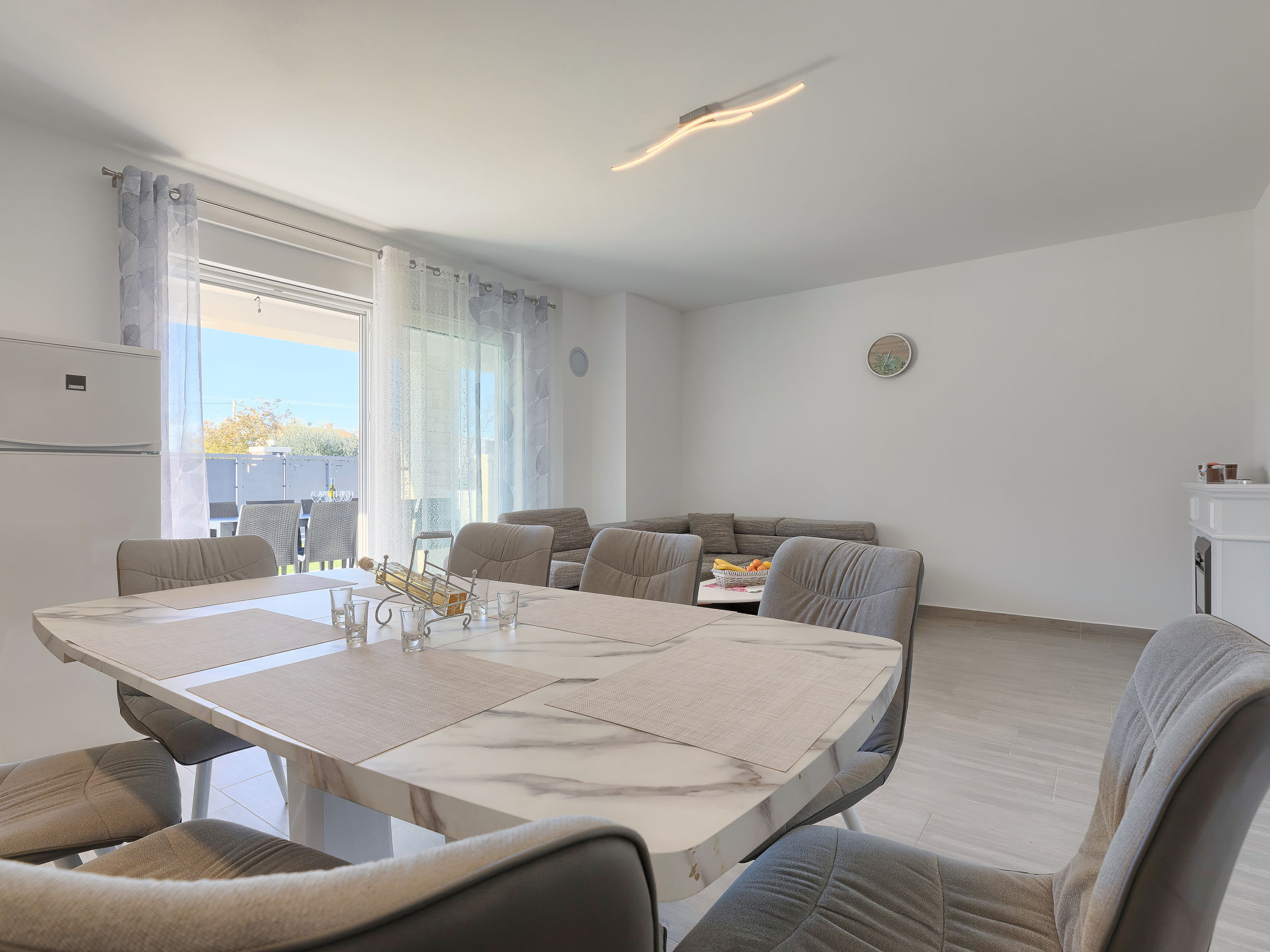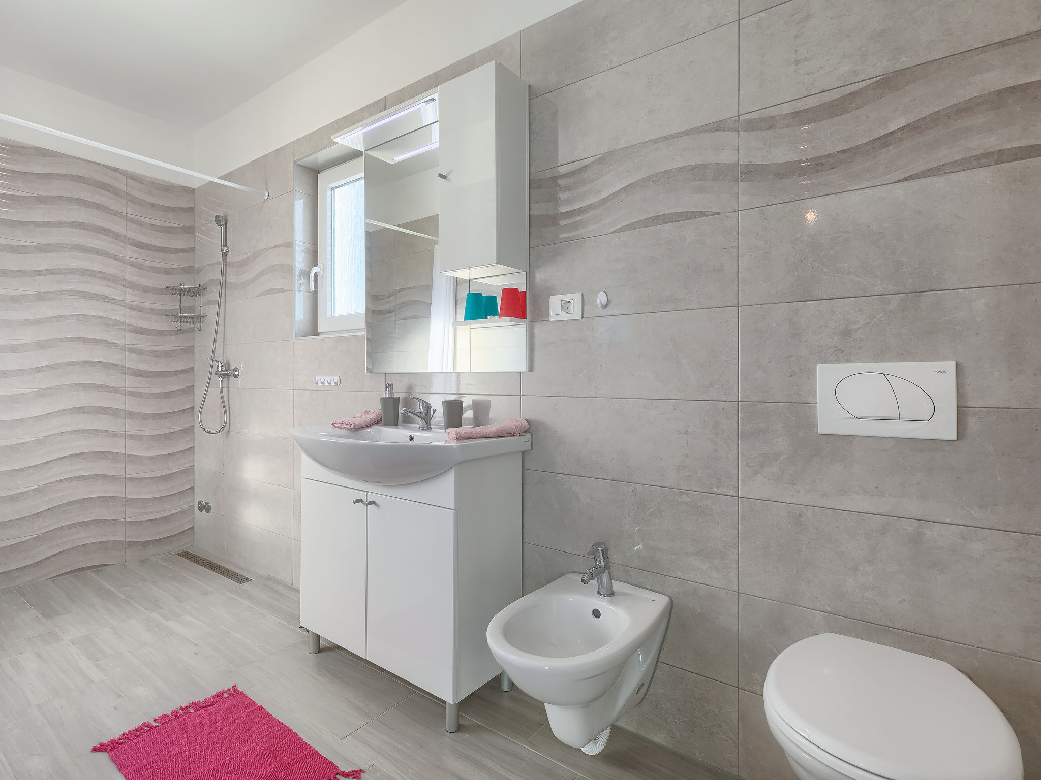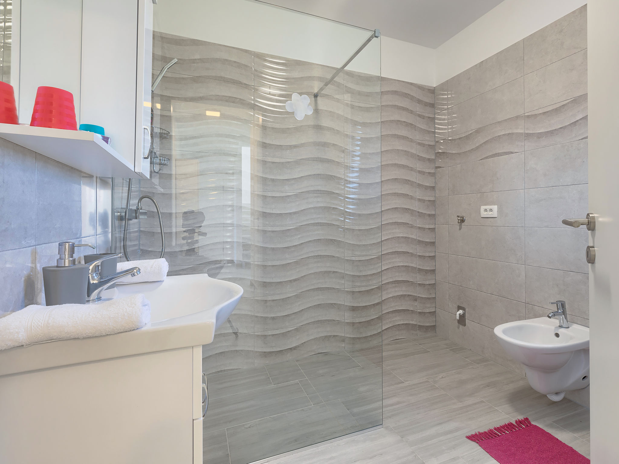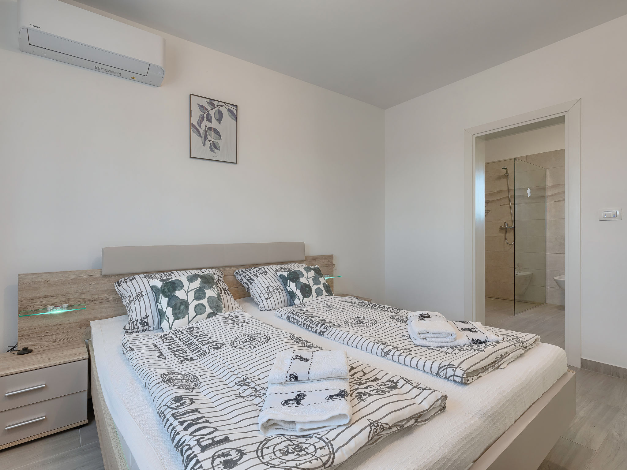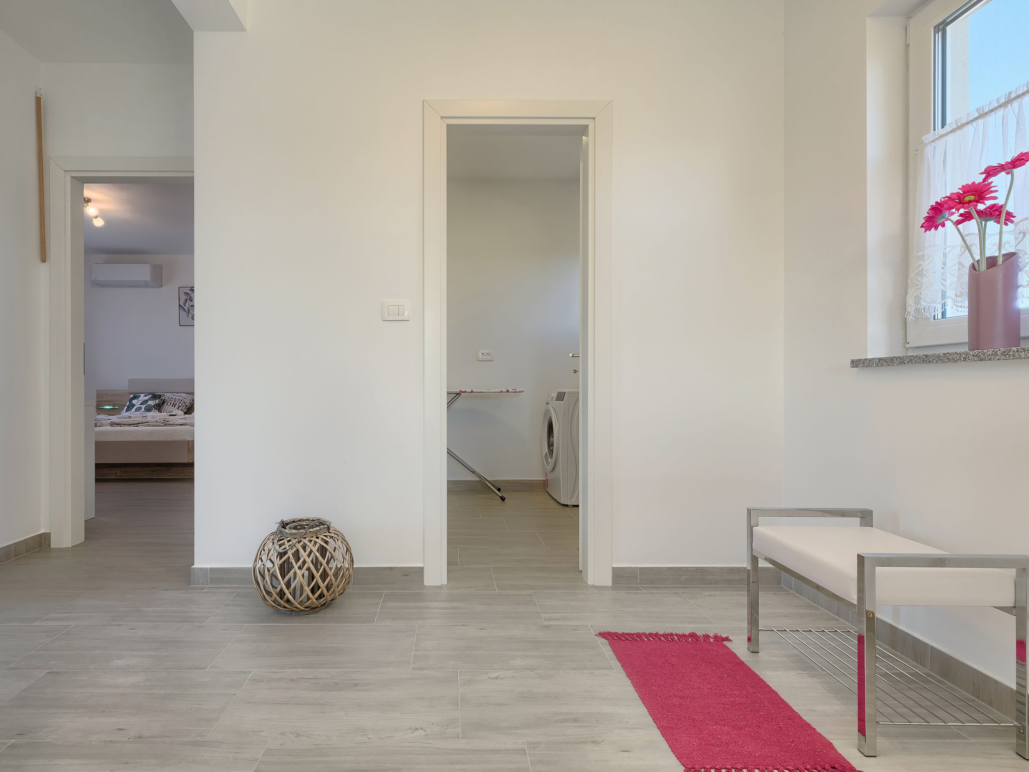 Nova Vas 6 km von Poreč: Schönes Einfamilienhaus "Villa Zirdum", auf 2 Stockwerken, Baujahr 2019. 300 m vom Zentrum von Nova Vas, sonnige Lage, 4 km vom Meer, 4 km vom Strand. Zur Alleinbenutzung: Grundstück 600 m2 (eingezäunt), Garten mit Rasen, Schwimmbad eckig (8 x 4 m, 150 cm tief, 01.05.-15.10.) mit Innentreppe. Aussendusche, Gartenmöbel, Grill. Im Hause: Internetzugang, Waschmaschine. Parkplatz (für 3 Autos) beim Haus auf dem Grundstück. Supermarkt 400 m, Restaurant 500 m, Kieselstrand 4 km, Felsstrand 4 km, Strandbad 4 km. Tennis 5 km, Reitstall 7 km, Wanderwege ab Haus 100 m, Radweg 150 m. Nahe gelegene Sehenswürdigkeiten: aquapark 10 km, amusement park 15 km. Bitte beachten: geeignet für Familien. Keine Vermietung an Jugendgruppen.