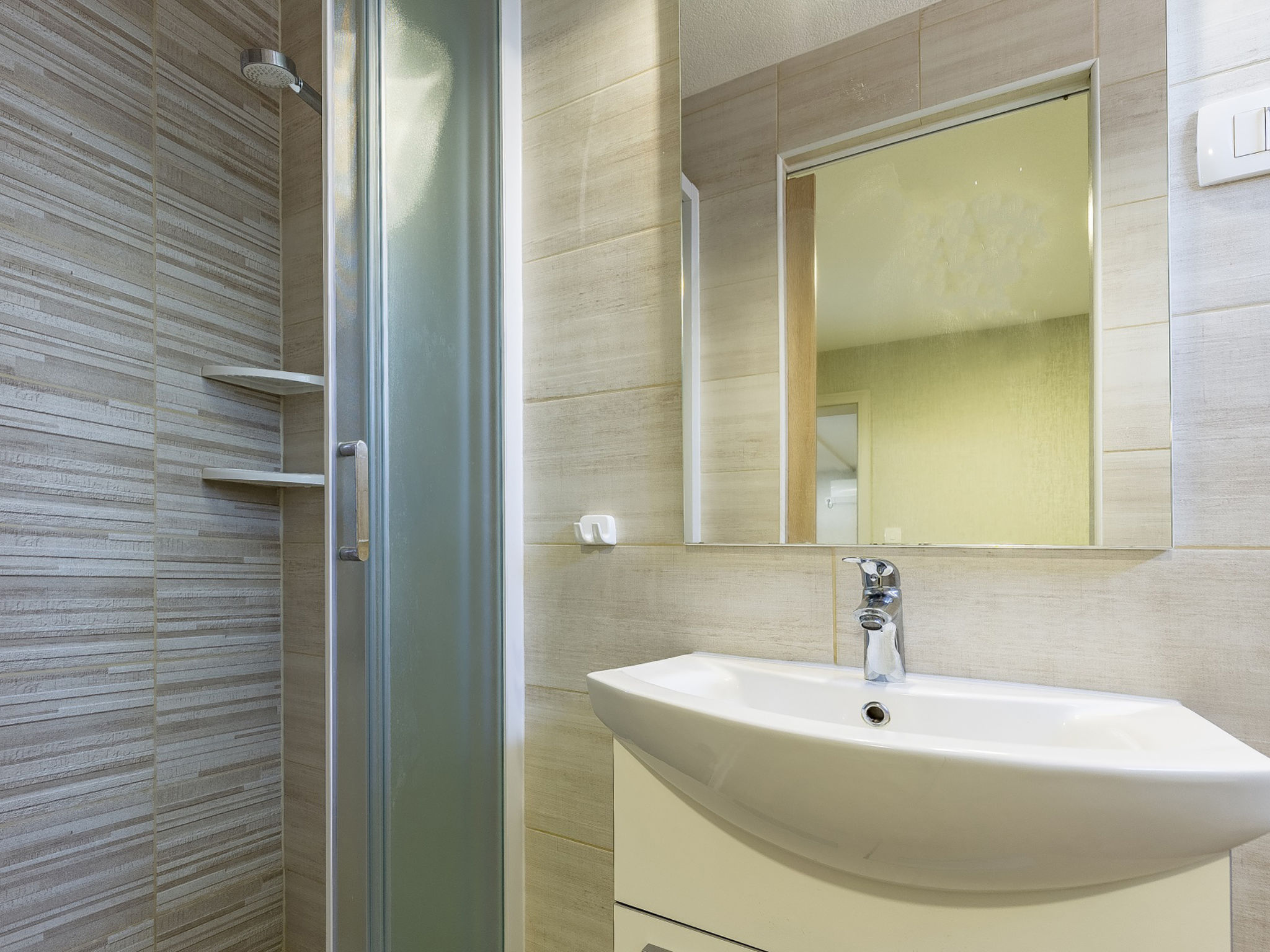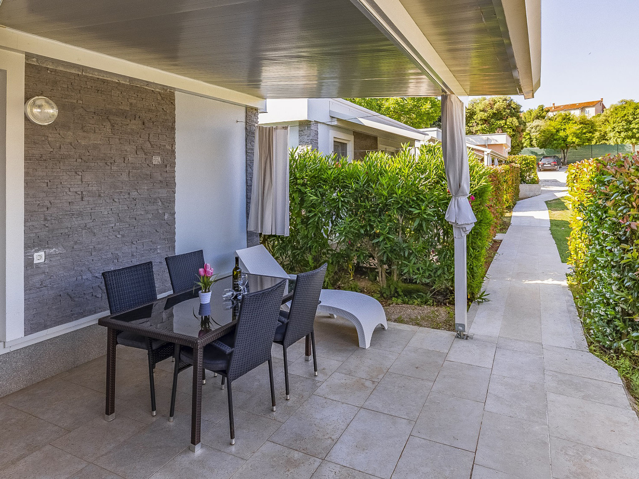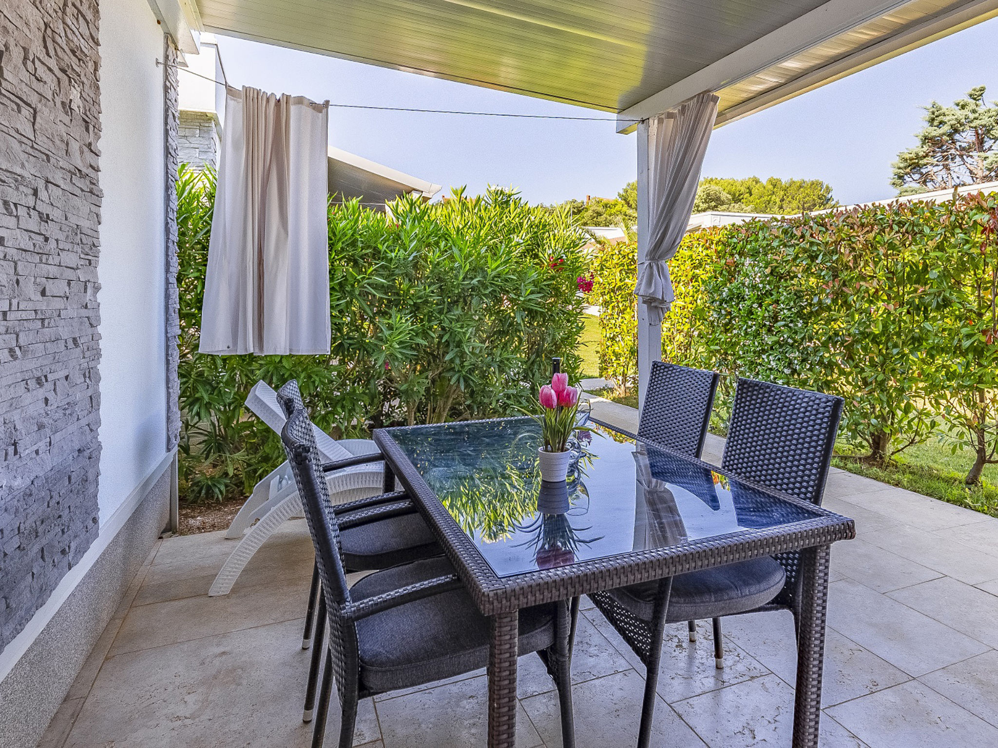 "Superior", 3-Zimmer-Mobilheim 40 m2. Wohn-/Esszimmer mit 1 Doppeldiwanbett (160 cm, Länge 200 cm), Sat-TV (Flachbildschirm), Klimaanlage. Ausgang zur Terrasse. 2 Zimmer, jedes Zimmer mit 1 franz. Bett (160 cm, Länge 200 cm), Dusche/WC. Offene Küche (Geschirrspüler, 4 Glaskeramikherd Platten, Mikrowelle, Tiefkühler, elektrische Kaffeemaschine). Terrasse 15 m2, überdacht. Terrassenmöbel. Zur Verfügung: Internet (Wireless LAN, gratis). 1 Haustier/Hund erlaubt.