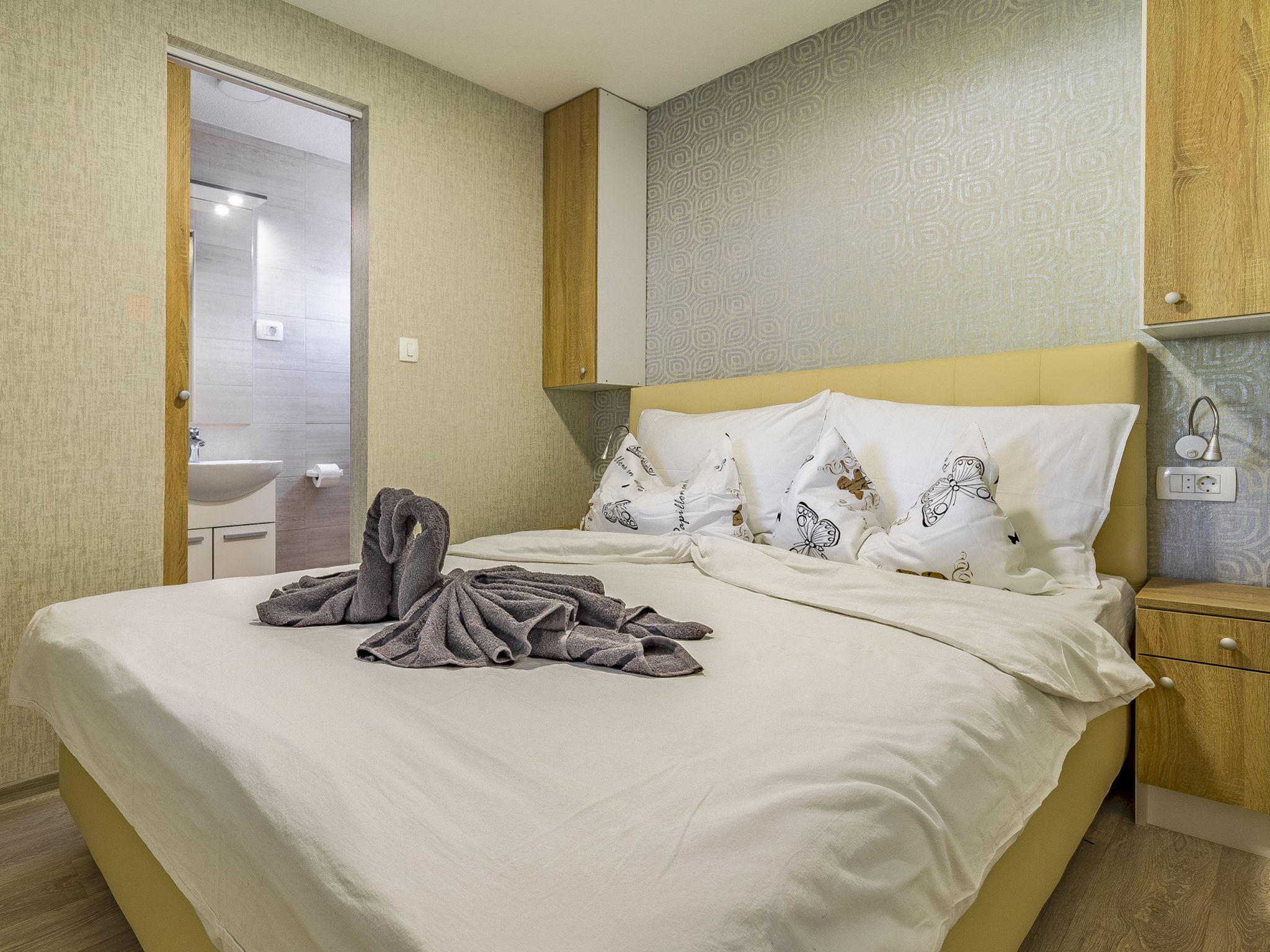 Ferienanlage. Sonnige Lage, 1 km vom Meer, 1 km vom Strand. Zur Mitbenutzung: Grundstück 2'000 m2 (eingezäunt), Garten mit Rasen und Pflanzen, Schwimmbad (60 m2, 140 cm tief, saisonale Verfügbarkeit: 01.Mai.-01.Okt.) mit Innentreppe. Ungleichmässige Schwimmbadform Dusche/WC im Poolbereich, Kinderbecken, Aussendusche, Tennis, Basketball, Volleyball, Terrasse (20 m2), Gartenmöbel, Grill, Kinderspielplatz (Rutschbahn, Schaukel). Im Hause: Internetzugang, Trampolin, Waschmaschine (extra) (zur Mitbenutzung). Parkplatz beim Haus auf dem Grundstück. Einkaufsgeschäft 1 km, Restaurant 1 km, Sandstrand 7 km, Kieselstrand 1 km, Felsstrand 1 km. Wanderwege ab Haus 100 m, Radweg 150 m. Nahe gelegene Sehenswürdigkeiten: Nature park Kamenjak 6 km. Bitte beachten: Das Foto ist nur ein Hausbeispiel. In diesem Haus sind weitere Ferienwohnungen mietbar.