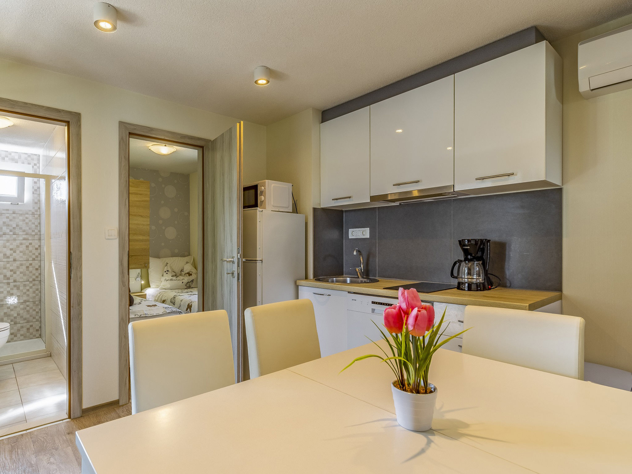 Ferienanlage. Sonnige Lage, 1 km vom Meer, 1 km vom Strand. Zur Mitbenutzung: Grundstück 2'000 m2 (eingezäunt), Garten mit Rasen und Pflanzen, Schwimmbad (60 m2, 140 cm tief, saisonale Verfügbarkeit: 01.Mai.-01.Okt.) mit Innentreppe. Ungleichmässige Schwimmbadform Dusche/WC im Poolbereich, Kinderbecken, Aussendusche, Tennis, Basketball, Volleyball, Terrasse (20 m2), Gartenmöbel, Grill, Kinderspielplatz (Rutschbahn, Schaukel). Im Hause: Internetzugang, Trampolin, Waschmaschine (extra) (zur Mitbenutzung). Parkplatz beim Haus auf dem Grundstück. Einkaufsgeschäft 1 km, Restaurant 1 km, Sandstrand 7 km, Kieselstrand 1 km, Felsstrand 1 km. Wanderwege ab Haus 100 m, Radweg 150 m. Nahe gelegene Sehenswürdigkeiten: Nature park Kamenjak 6 km. Bitte beachten: Das Foto ist nur ein Hausbeispiel. In diesem Haus sind weitere Ferienwohnungen mietbar.