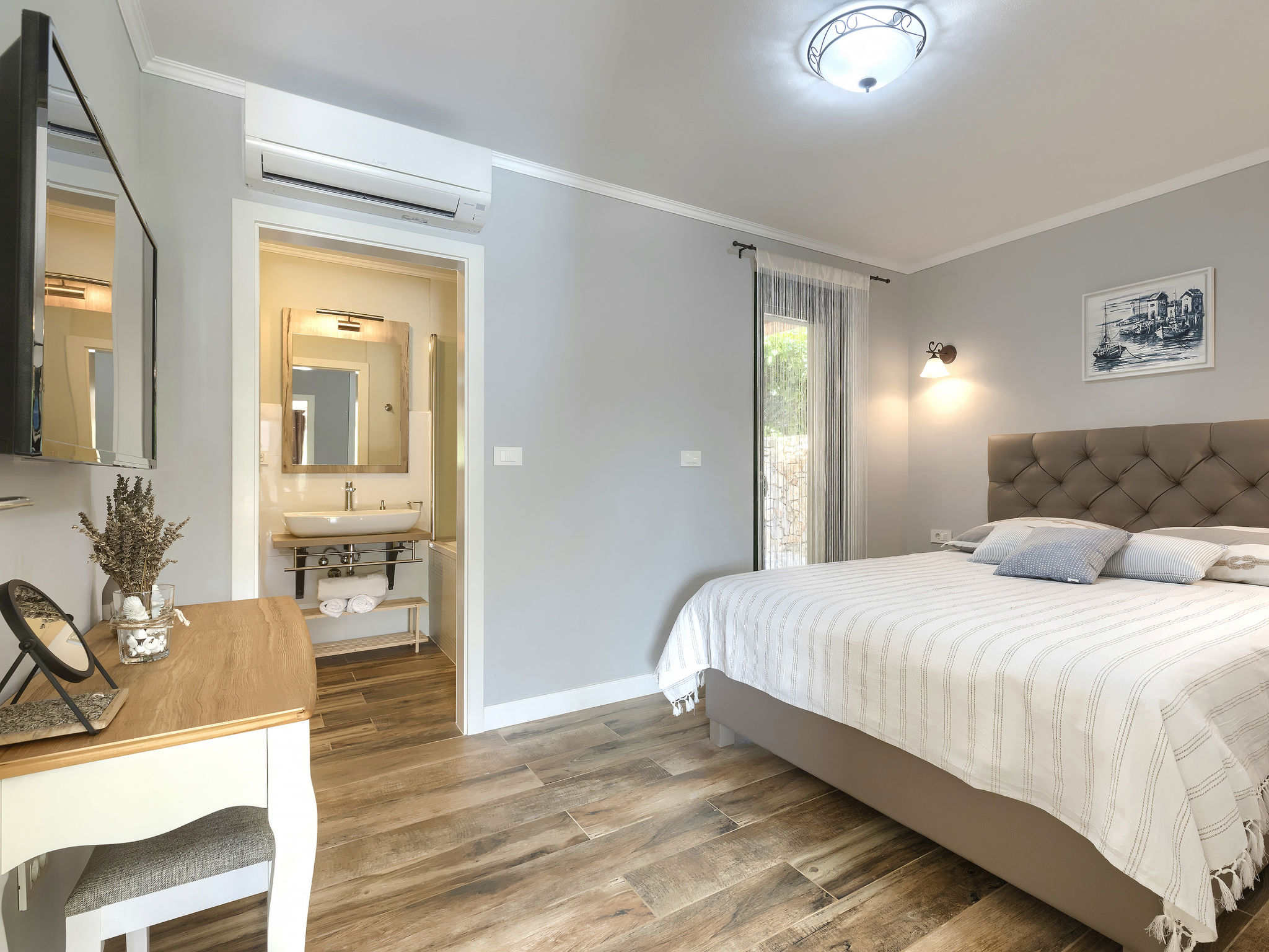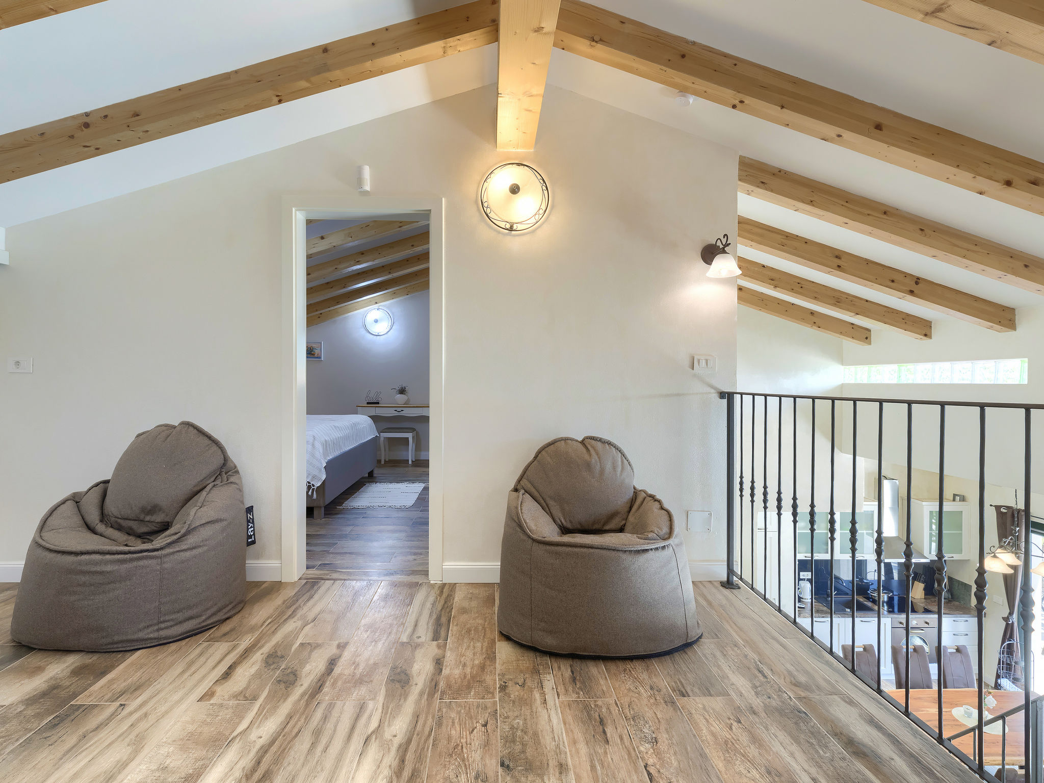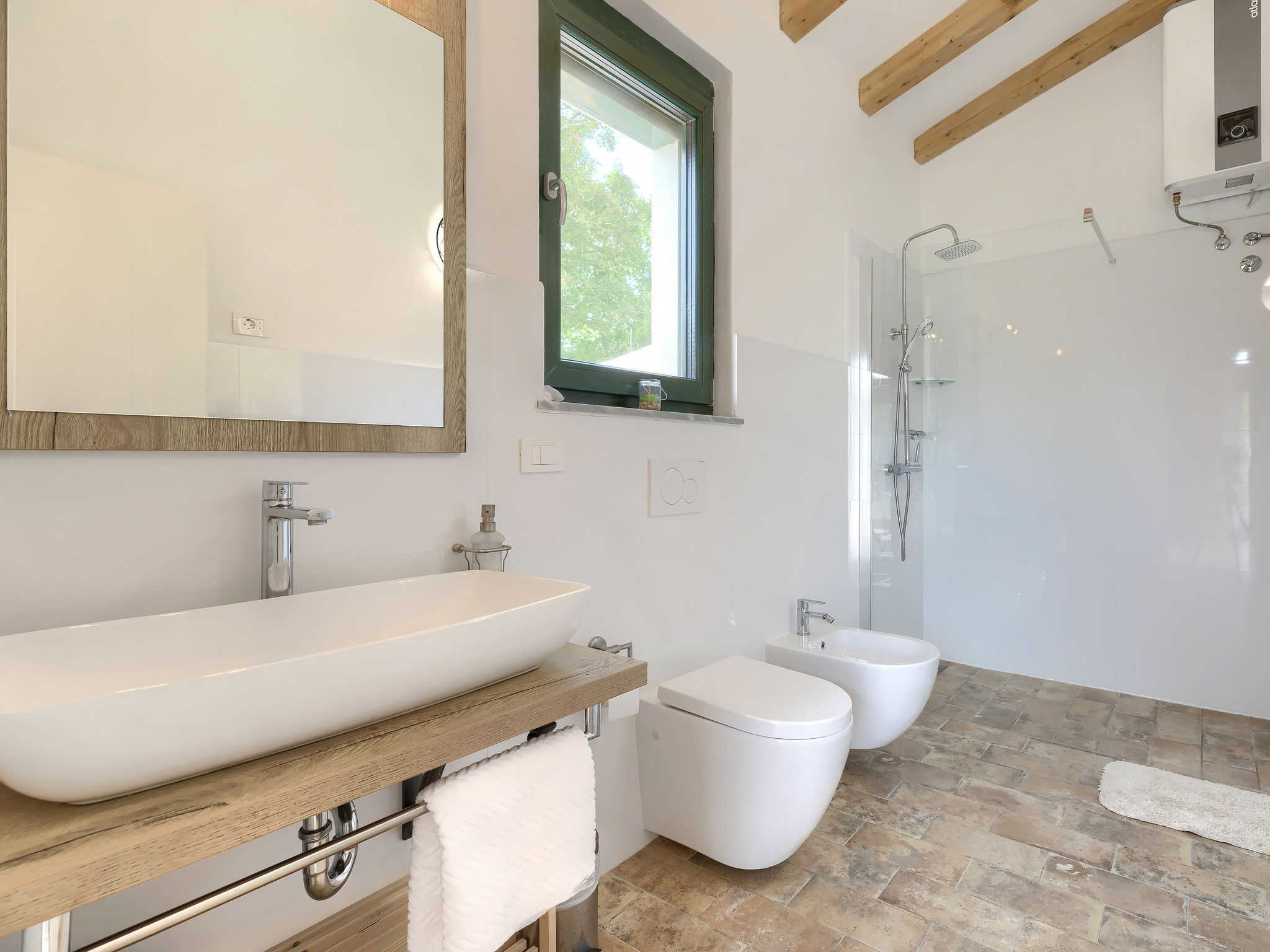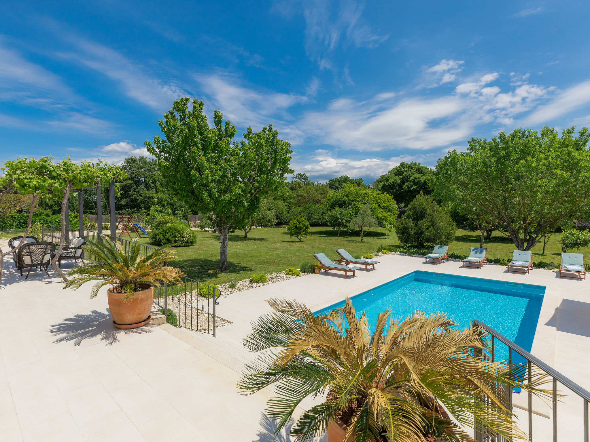 6-Zimmer-Haus 200 m2 auf 2 Stockwerken. Geschmackvoll eingerichtet: Wohn-/Esszimmer 20 m2 mit 1 Doppeldiwanbett (160 cm, Länge 200 cm), Küchenblock und Sat-TV (Flachbildschirm), Klimaanlage. Ausgang zur Terrasse. 1 Zimmer mit 1 Doppelbett (2 x 90 cm, Länge 200 cm), Dusche/Bidet/WC und Sat-TV (Flachbildschirm), Klimaanlage. Wohn-/Esszimmer 35 m2 mit Sat-TV (Flachbildschirm), Klimaanlage. Ausgang zur Terrasse. 1 Zimmer mit 1 Doppelbett (2 x 90 cm, Länge 200 cm), Bad/Bidet/WC und Sat-TV (Flachbildschirm), Klimaanlage. Ausgang zur Terrasse. 1 Zimmer mit 2 Betten (90 cm, Länge 200 cm), Dusche/Bidet/WC und Sat-TV (Flachbildschirm), Klimaanlage. Offene Küche (Backofen, Geschirrspüler, 4 Glaskeramikherd Platten, Mikrowelle, Tiefkühler, elektrische Kaffeemaschine). Sep. WC. Obergeschoss: offene Galerie mit Sat-TV (Flachbildschirm), Klimaanlage. 1 Zimmer mit 1 Doppelbett (2 x 90 cm, Länge 200 cm), Dusche/Bidet/WC und Sat-TV (Flachbildschirm), Klimaanlage. Terrasse 30 m2, Terrasse 15 m2. Terrassenmöbel, Liegestühle. Sicht auf das Schwimmbad. Zur Verfügung: Safe, Bügeleisen, Babybett, Haartrockner. Internet (Wireless LAN, gratis). Parkplatz (überdacht, 3 Autos). Terrasse 6 m2, überdacht.