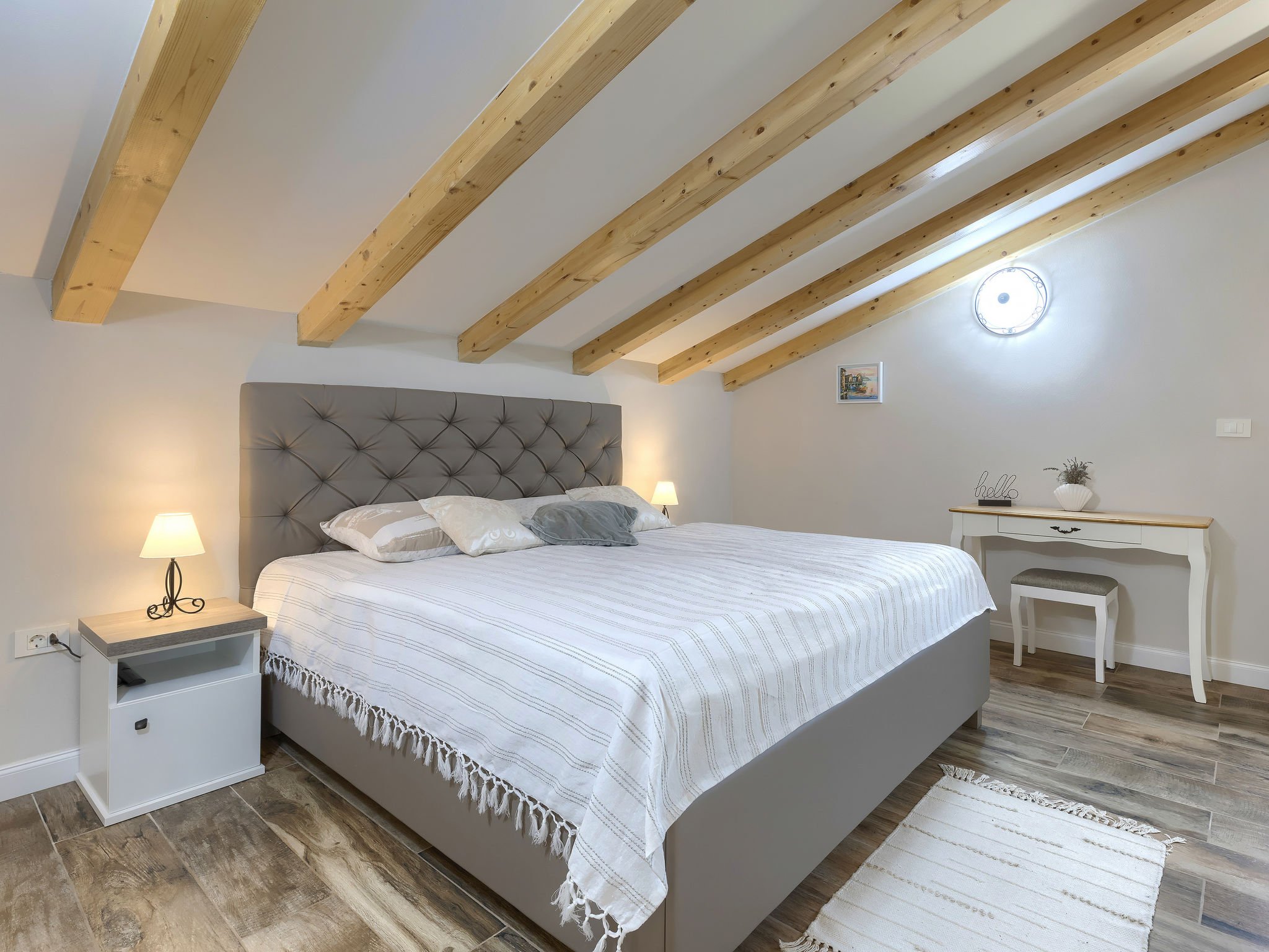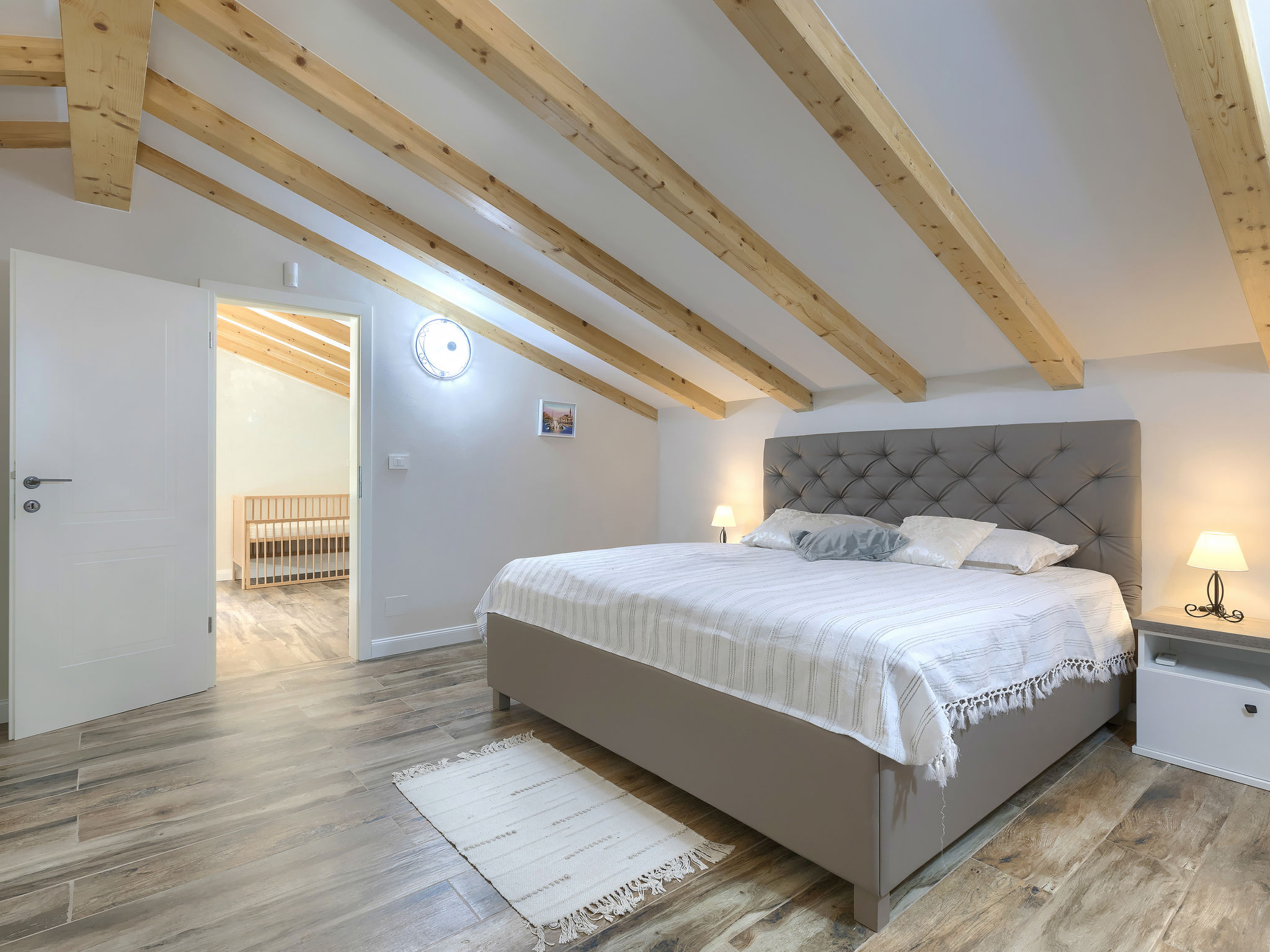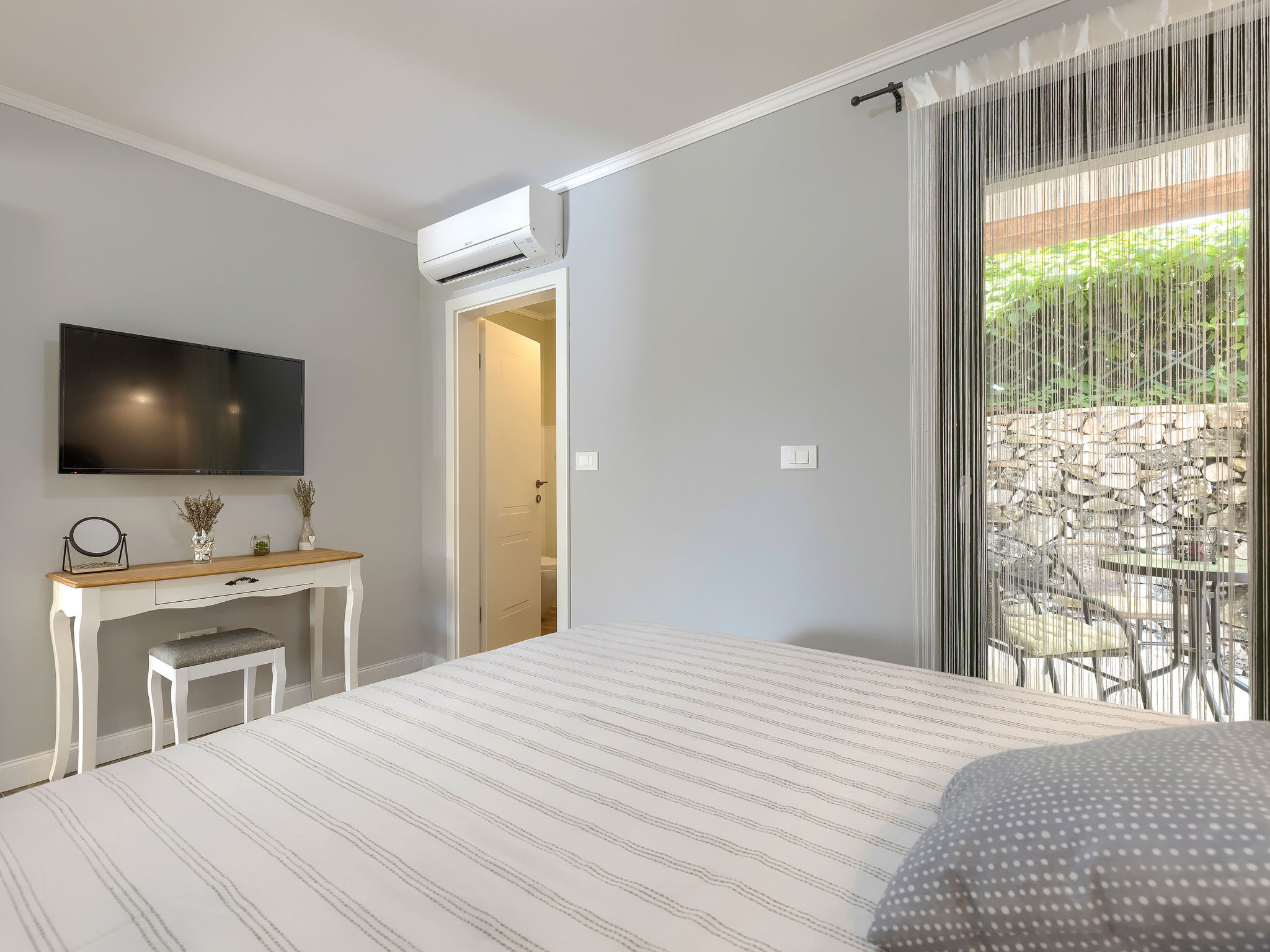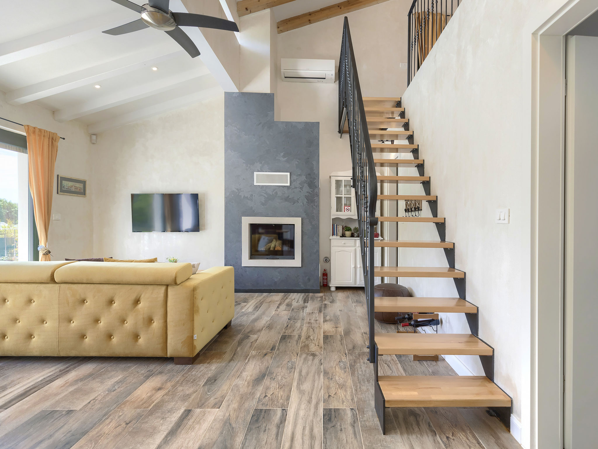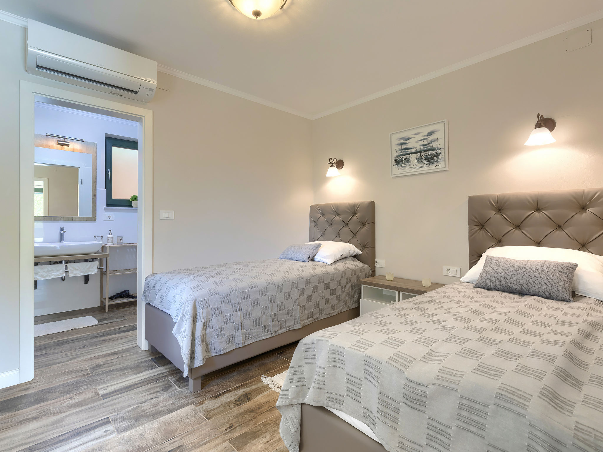 6-Zimmer-Haus 200 m2 auf 2 Stockwerken. Geschmackvoll eingerichtet: Wohn-/Esszimmer 20 m2 mit 1 Doppeldiwanbett (160 cm, Länge 200 cm), Küchenblock und Sat-TV (Flachbildschirm), Klimaanlage. Ausgang zur Terrasse. 1 Zimmer mit 1 Doppelbett (2 x 90 cm, Länge 200 cm), Dusche/Bidet/WC und Sat-TV (Flachbildschirm), Klimaanlage. Wohn-/Esszimmer 35 m2 mit Sat-TV (Flachbildschirm), Klimaanlage. Ausgang zur Terrasse. 1 Zimmer mit 1 Doppelbett (2 x 90 cm, Länge 200 cm), Bad/Bidet/WC und Sat-TV (Flachbildschirm), Klimaanlage. Ausgang zur Terrasse. 1 Zimmer mit 2 Betten (90 cm, Länge 200 cm), Dusche/Bidet/WC und Sat-TV (Flachbildschirm), Klimaanlage. Offene Küche (Backofen, Geschirrspüler, 4 Glaskeramikherd Platten, Mikrowelle, Tiefkühler, elektrische Kaffeemaschine). Sep. WC. Obergeschoss: offene Galerie mit Sat-TV (Flachbildschirm), Klimaanlage. 1 Zimmer mit 1 Doppelbett (2 x 90 cm, Länge 200 cm), Dusche/Bidet/WC und Sat-TV (Flachbildschirm), Klimaanlage. Terrasse 30 m2, Terrasse 15 m2. Terrassenmöbel, Liegestühle. Sicht auf das Schwimmbad. Zur Verfügung: Safe, Bügeleisen, Babybett, Haartrockner. Internet (Wireless LAN, gratis). Parkplatz (überdacht, 3 Autos). Terrasse 6 m2, überdacht.