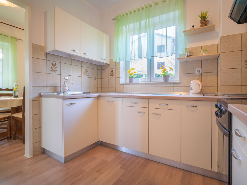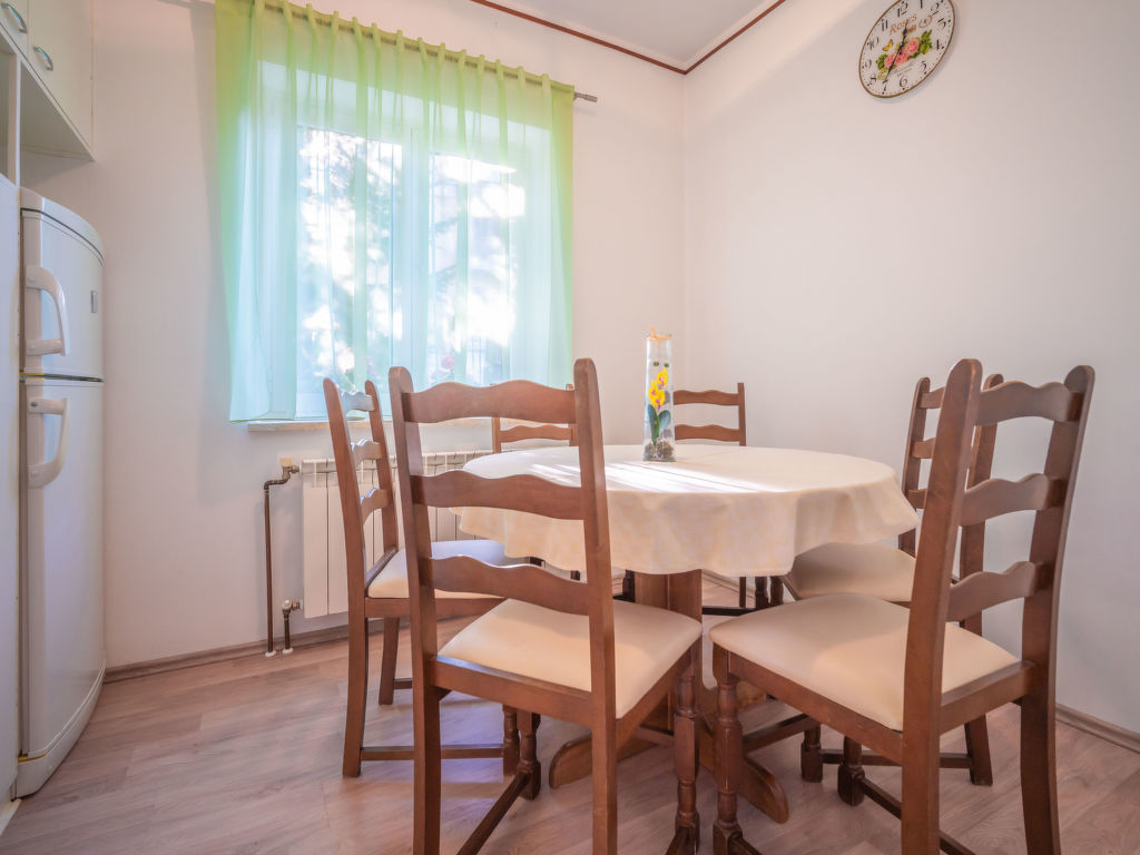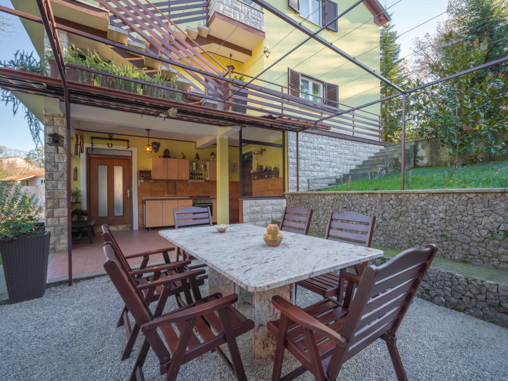 Matulji: Zweifamilienhaus "Željka". 1.7 km vom Zentrum von Matulji, 3.3 km vom Zentrum von Opatija, ruhige Lage, 3.3 km vom Meer, 3.3 km vom Strand, im Grünen. Zur Mitbenutzung: Grundstück 1'400 m2 (eingezäunt) mit Pflanzen. Zur Alleinbenutzung: Terrasse (30 m2), Gartenmöbel, Grill. Im Hause: Internetzugang. Einkaufsgeschäft 550 m, Restaurant 900 m, Kieselstrand 3.3 km, Strandbad 3.3 km, betonierter Strand 3.3 km. Privat: Aussenküche (4 Kochplatten, Backofen, Geschirrspüler). Taverne mit Esstisch.