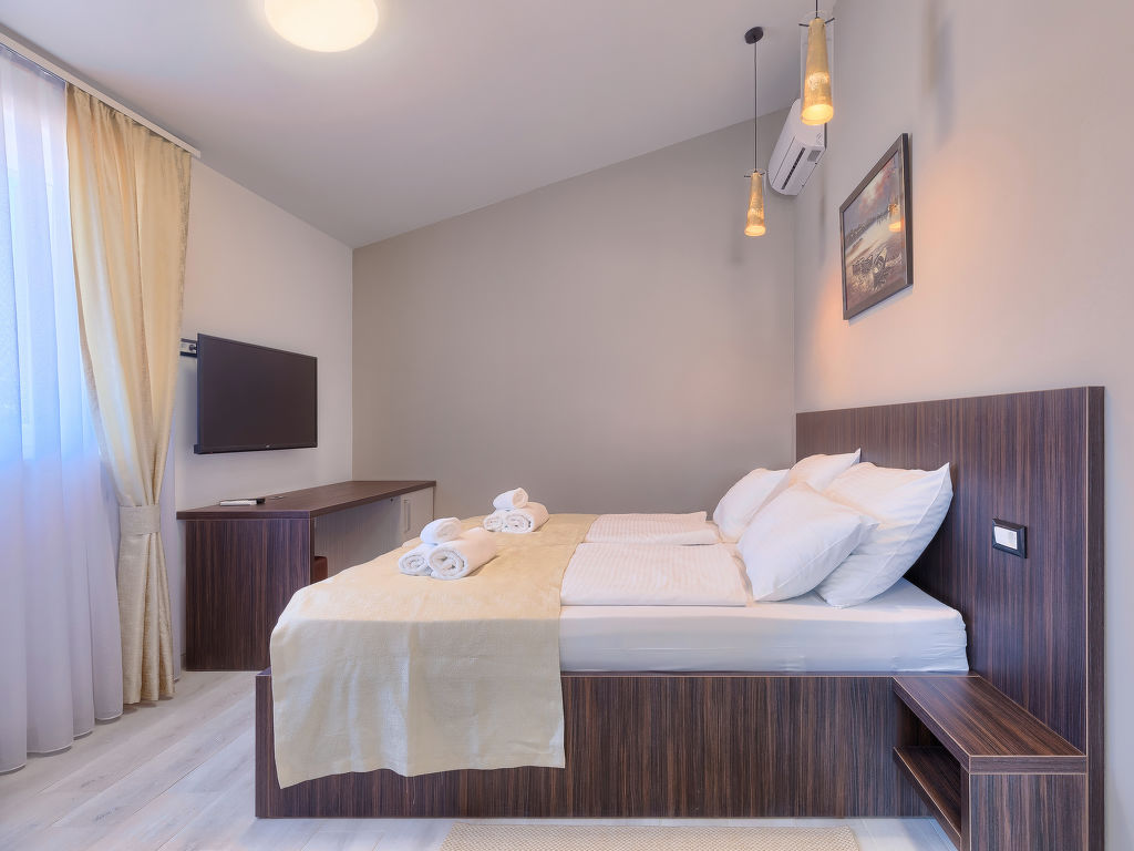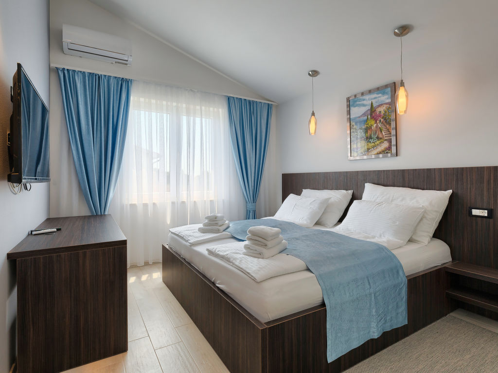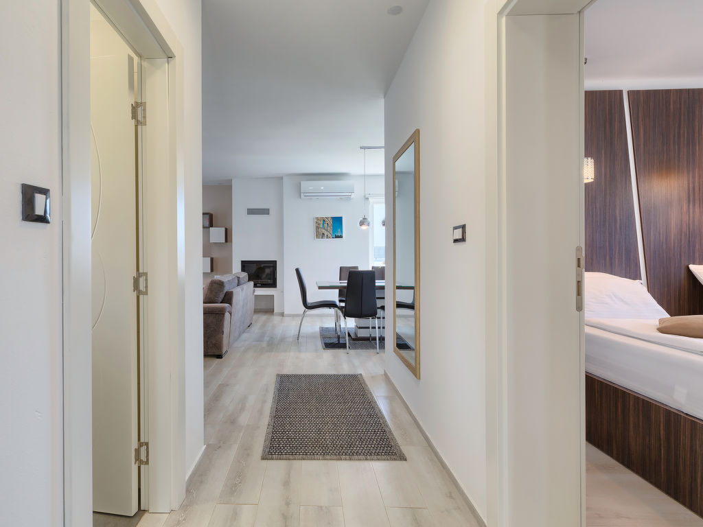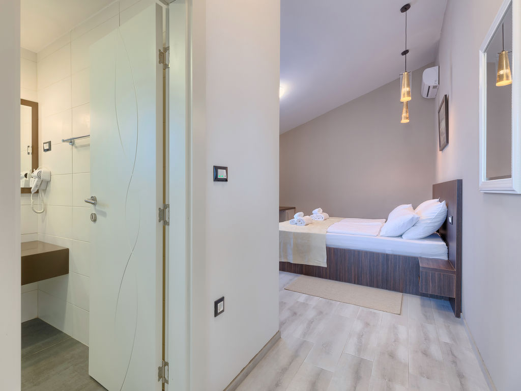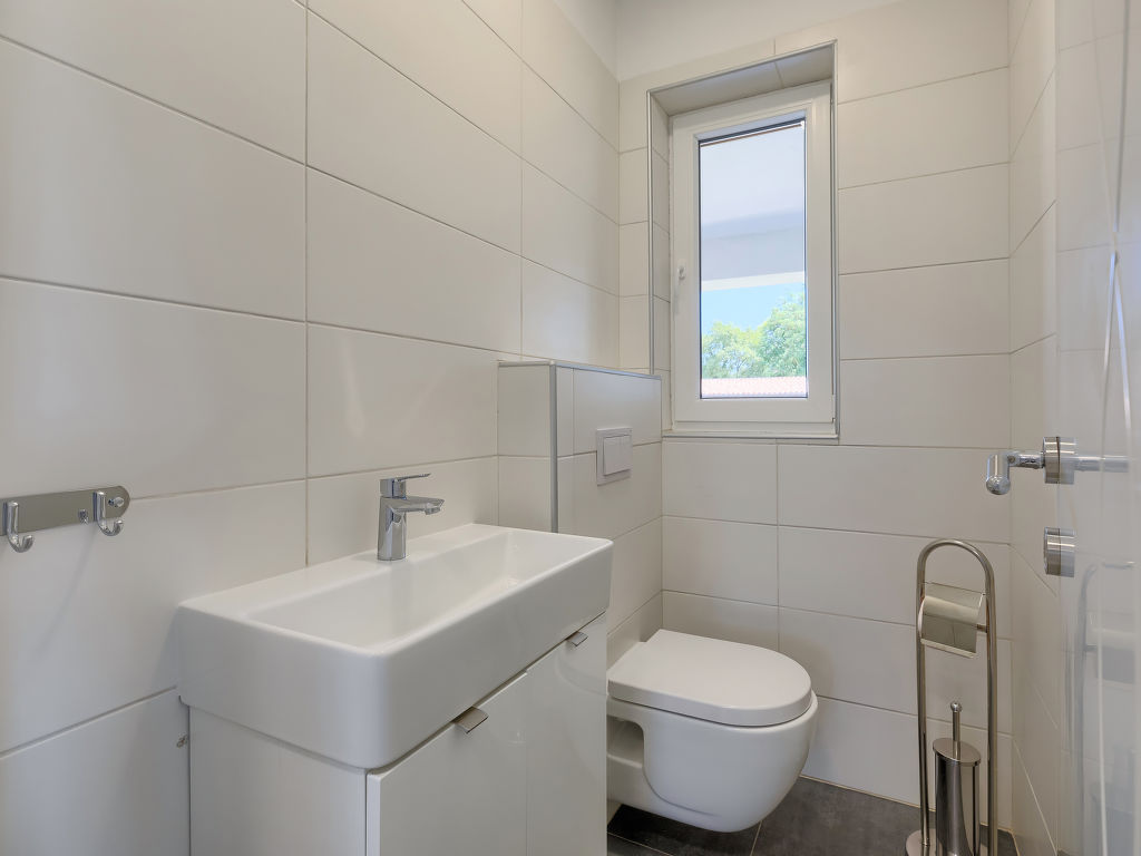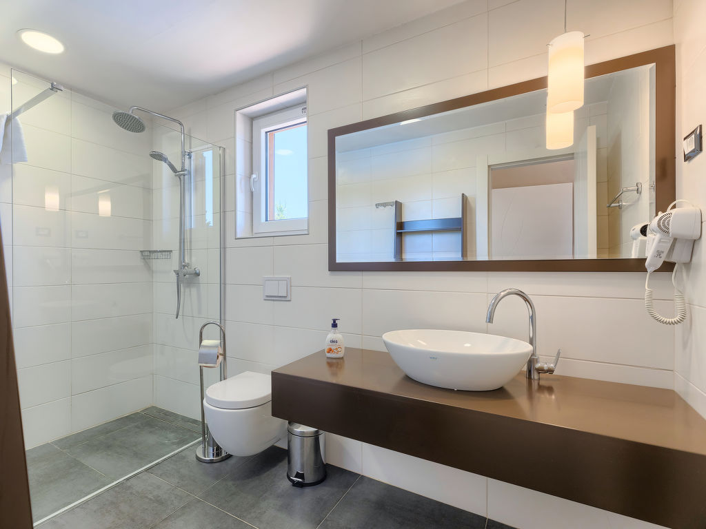 Šišan 5 km von Medulin: Schöne Villa "Alba Rossa", auf 2 Stockwerken, Baujahr 2019. 900 m vom Zentrum von Šišan, 8 km vom Zentrum von Pula, ruhige, sonnige Lage, 2 km vom Meer, 2 km vom Strand. Zur Alleinbenutzung: Grundstück 1'000 m2 (eingezäunt), schöner Garten mit Rasen und Pflanzen, Schwimmbad eckig (10 x 5 m, 140 cm tief, 04.04.-24.10.) mit Innentreppe. WC im Poolbereich, Aussendusche, Poolhaus mit Dusche, Tischtennis, Gartenmöbel, Grill, Kinderspielplatz (Rutschbahn, Schaukel). Im Hause: Internetzugang, Sprudelbad, Infrarotwärmekabine, Tischfussball, Trampolin, Waschmaschine. Zufahrt bis zum Haus (300 m Naturweg). Parkplatz (für 2 Autos, überdacht) beim Haus auf dem Grundstück. Einkaufsgeschäft 800 m, Supermarkt 6 km, Restaurant 650 m, Kieselstrand 2 km, Felsstrand 2 km. Surfschule 4 km, Segelschule 4 km, Tennis 6 km, Reitstall 1 km, Wanderwege ab Haus 100 m, Radweg 150 m. Schwimmbad mit Hydromassage. Privat: Aussenküche (2 Kochplatten aus Keramikglas, Backofen, Geschirrspüler, Gefrierschrank, elektrische Kaffeemaschine).