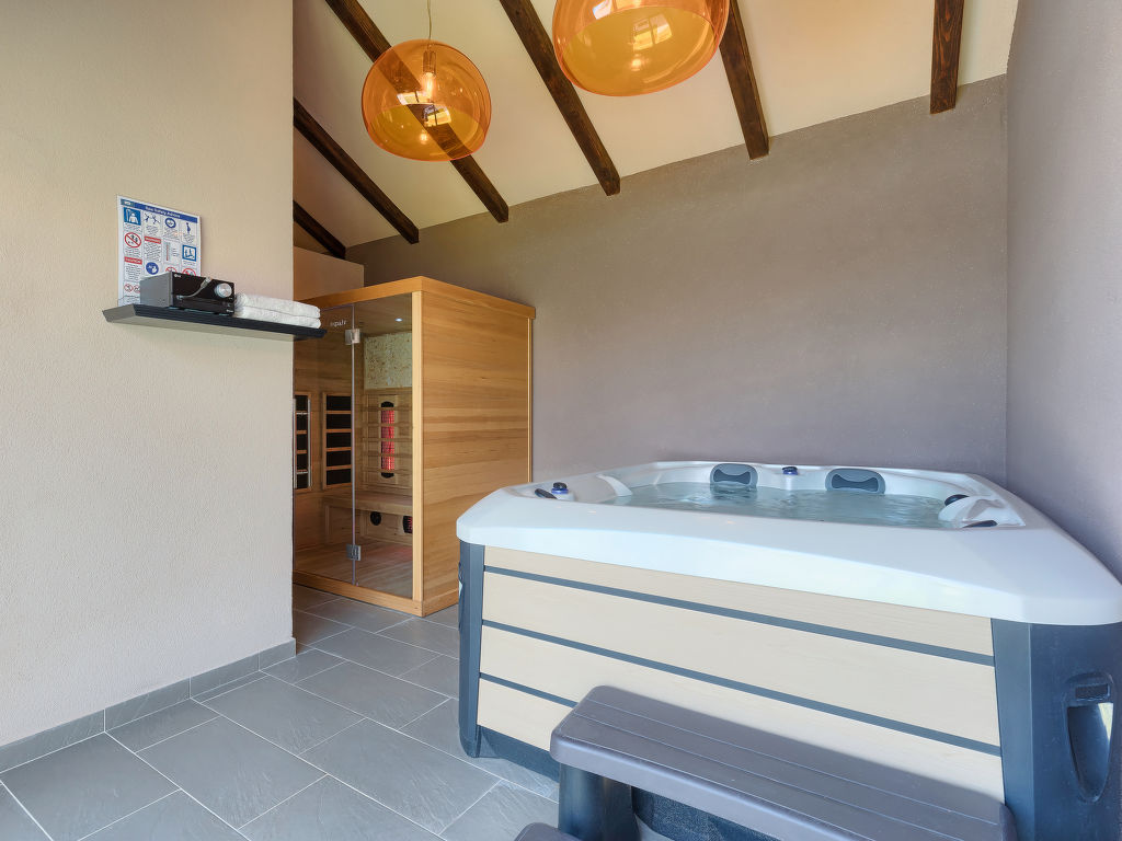4-Zimmer-Villa 170 m2 auf 2 Stockwerken. Wohn-/Esszimmer mit offenem Kamin und Sat-TV (Flachbildschirm). Ausgang zur Terrasse. 1 Zimmer mit 1 Doppelbett (2 x 90 cm, Länge 200 cm), Sat-TV (Flachbildschirm), Klimaanlage. Offene Küche (Backofen, Geschirrspüler, 4 Glaskeramikherd Platten, Mikrowelle, Tiefkühler, elektrische Kaffeemaschine). Dusche/WC, sep. WC. Obergeschoss: 1 Zimmer mit 1 franz. Bett (180 cm, Länge 200 cm), Dusche/WC und Sat-TV (Flachbildschirm), Klimaanlage. 1 Zimmer mit 1 franz. Bett (180 cm, Länge 200 cm), Dusche/WC, Doppelwaschbecken und Sat-TV (Flachbildschirm), Klimaanlage. Terrasse 10 m2, überdacht. Terrassenmöbel, Liegestühle. Sicht auf das Schwimmbad und den Garten. Zur Verfügung: Safe, Kinderhochstuhl, Babybett, Haartrockner. Internet (Wireless LAN, gratis). 1 kleines Haustier/Hund erlaubt.