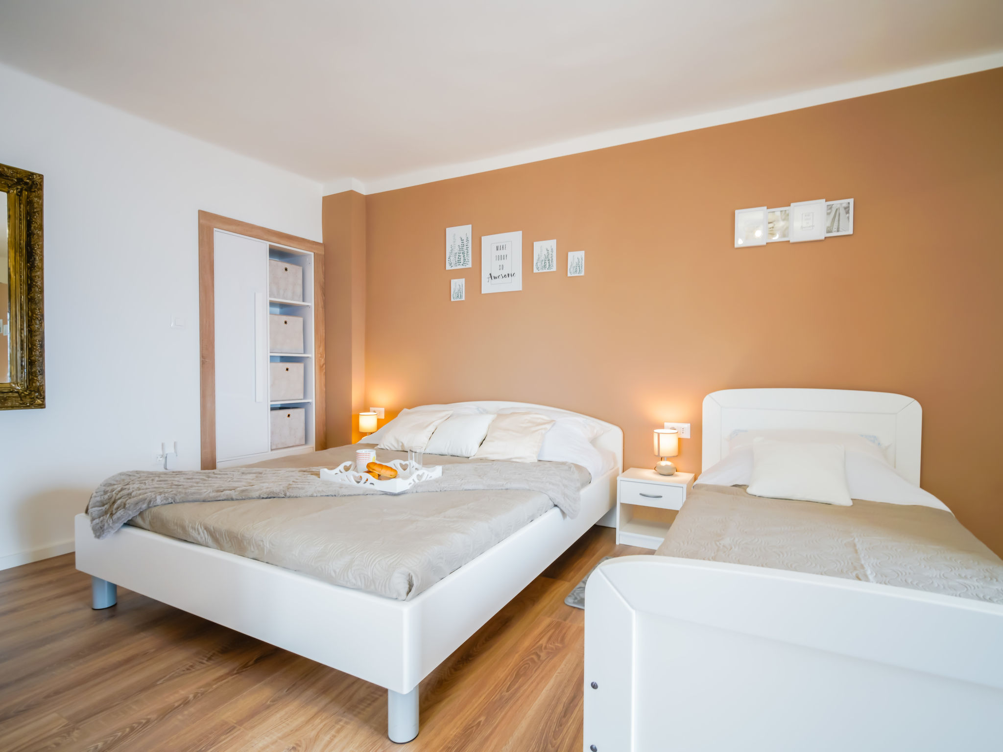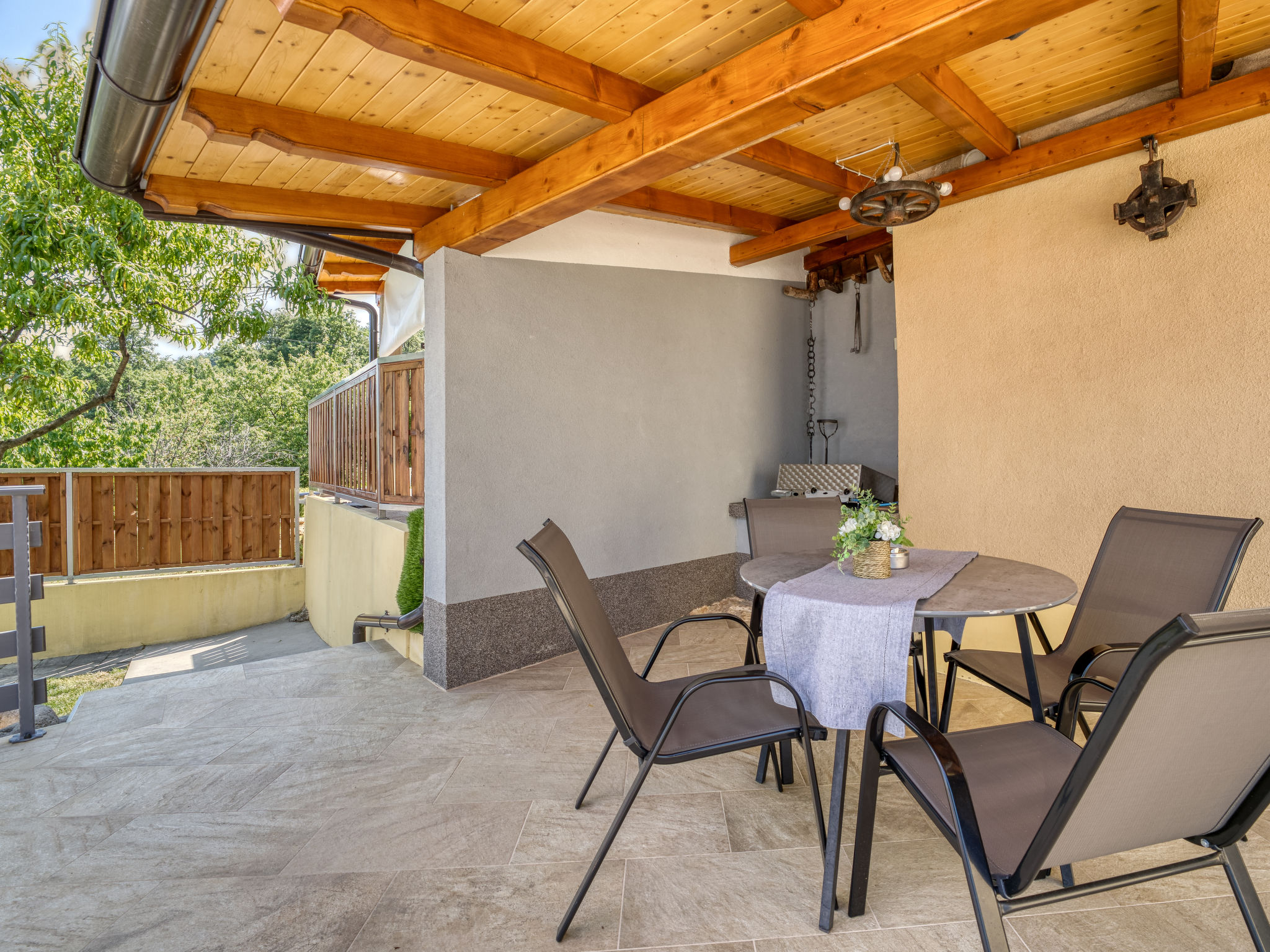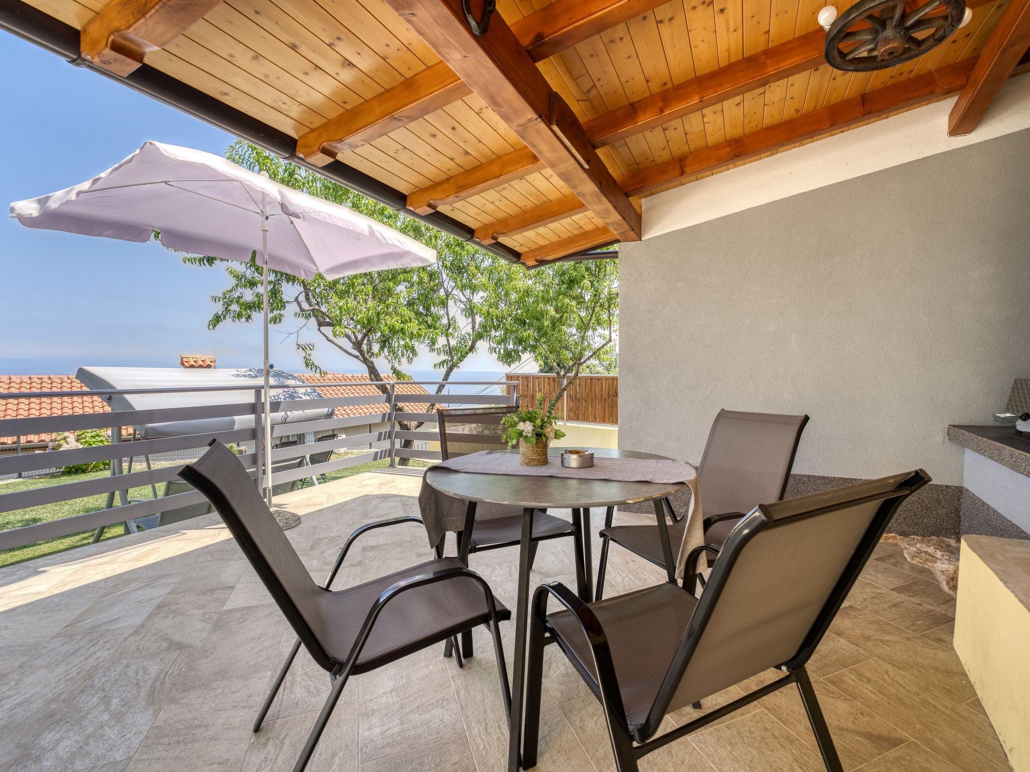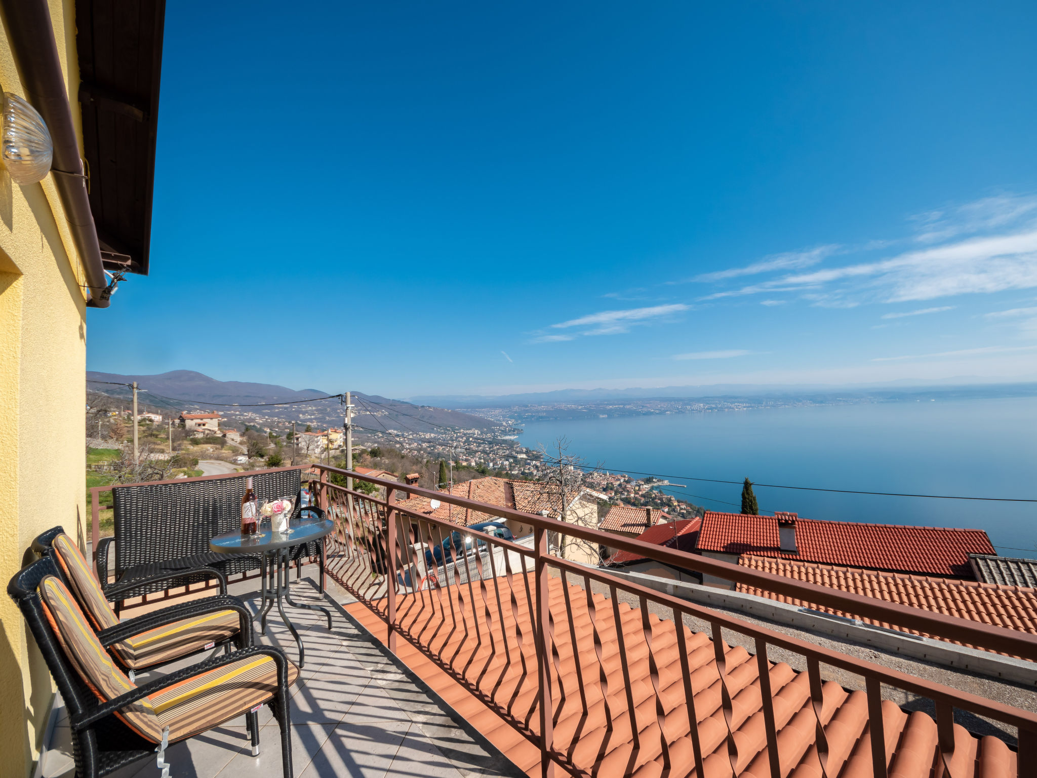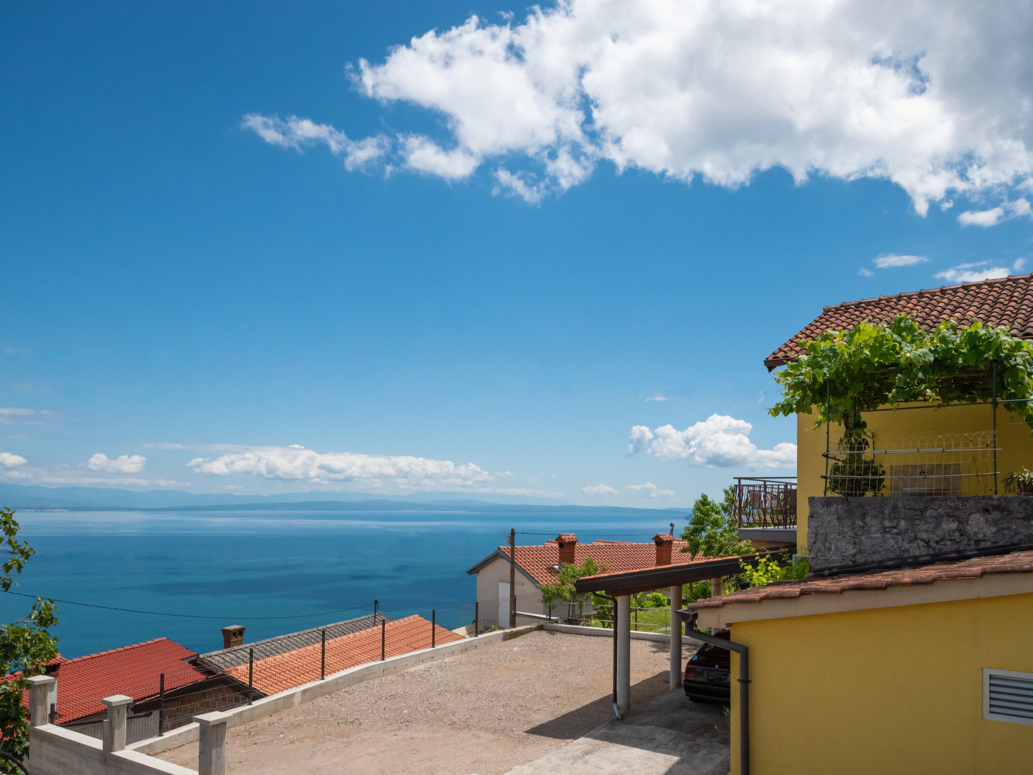 Tuliševica 5 km von Lovran: Dreifamilienhaus "Ema". Oberhalb von Lovran, im Weiler Tuliševica, 8 km vom Zentrum von Opatija, ruhige, sonnige, erhöhte Lage, 5 km vom Meer, in einer Sackgasse, im Grünen. Zur Mitbenutzung: Grundstück 400 m2. Im Hause: Internetzugang. Parkplatz beim Haus auf dem Grundstück. Einkaufsgeschäft 750 m, Restaurant 5 km, Kieselstrand 5 km, Strandbad 5 km, betonierter Strand 5 km.