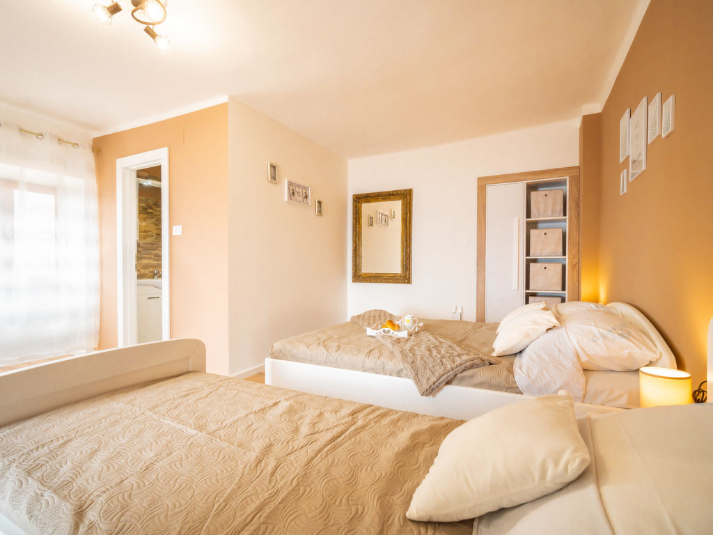 Tuliševica 5 km von Lovran: Dreifamilienhaus "Ema". Oberhalb von Lovran, im Weiler Tuliševica, 8 km vom Zentrum von Opatija, ruhige, sonnige, erhöhte Lage, 5 km vom Meer, in einer Sackgasse, im Grünen. Zur Mitbenutzung: Grundstück 400 m2. Im Hause: Internetzugang. Parkplatz beim Haus auf dem Grundstück. Einkaufsgeschäft 750 m, Restaurant 5 km, Kieselstrand 5 km, Strandbad 5 km, betonierter Strand 5 km.