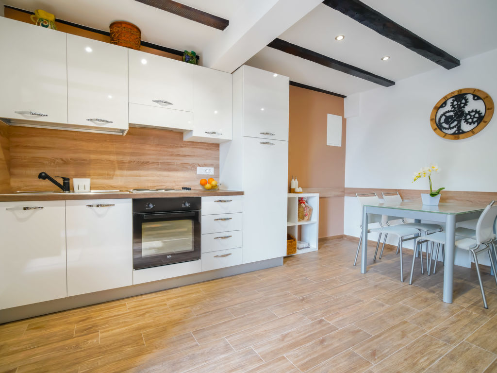 2-Zimmer-Wohnung 48 m2 auf 2 Stockwerken. Wohn-/Esszimmer 24 m2 mit 1 Diwanbett (100 cm, Länge 200 cm), Sat-TV (Flachbildschirm), Klimaanlage. Offene Küche (4 Kochplatten, Backofen, Tiefkühler, elektrische Kaffeemaschine). Obergeschoss: 1 offenes Zimmer mit 1 Bett (90 cm, Länge 200 cm), 1 franz. Bett (160 cm, Länge 200 cm), Dusche/WC und Klimaanlage. Ausgang zum Balkon. Klimaanlage (extra). Balkon 6 m2, Terrasse 25 m2 teilweise überdacht. Terrassenmöbel, Gartengrill. Herrliche Panoramasicht auf das Meer und die Landschaft. Zur Verfügung: Waschmaschine. Internet (Wireless LAN, gratis). Bitte beachten: Nichtraucher-Unterkunft. 1 Haustier/Hund erlaubt. Eigener Eingang.