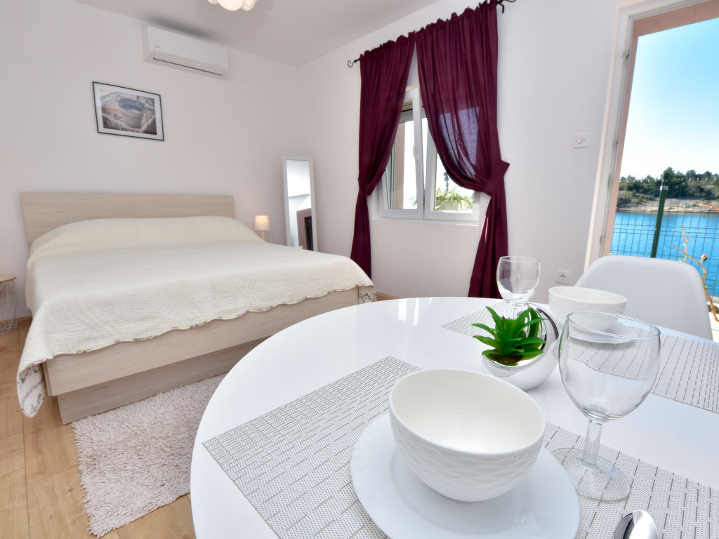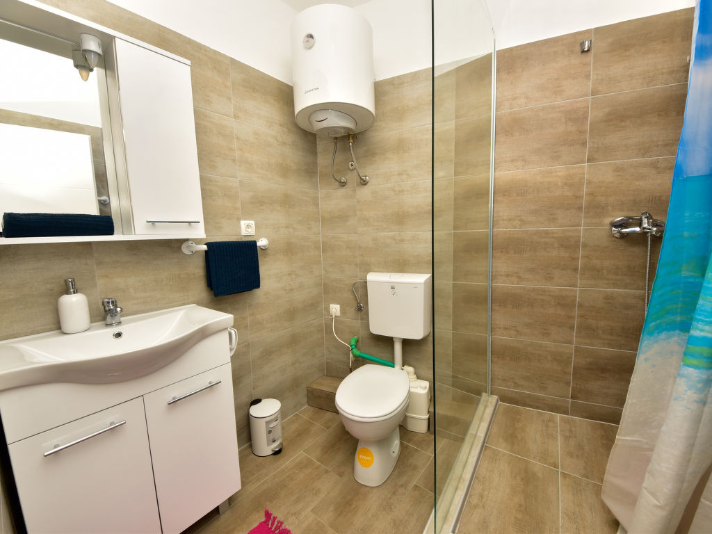 Ribnica 15 km von Novigrad: Bungalow "Ana". 7 km vom Zentrum von Obrovac, ruhige, sonnige Lage, direkt am Meer, 10 m vom Strand, direkter Zugang zum Strand. Zur Mitbenutzung: Grundstück 800 m2. Grillhaus. Im Hause: Internetzugang, Waschmaschine (zur Mitbenutzung). Parkplatz beim Haus auf dem Grundstück. Einkaufsgeschäft 200 m, Restaurant 50 m, betonierter Strand 10 m. Bitte beachten: private Bootsanlegestelle (extra) auf Anfrage. Ferienwohnung Ref. HR4013.112 befindet sich auf dem gleichen Grundstück.