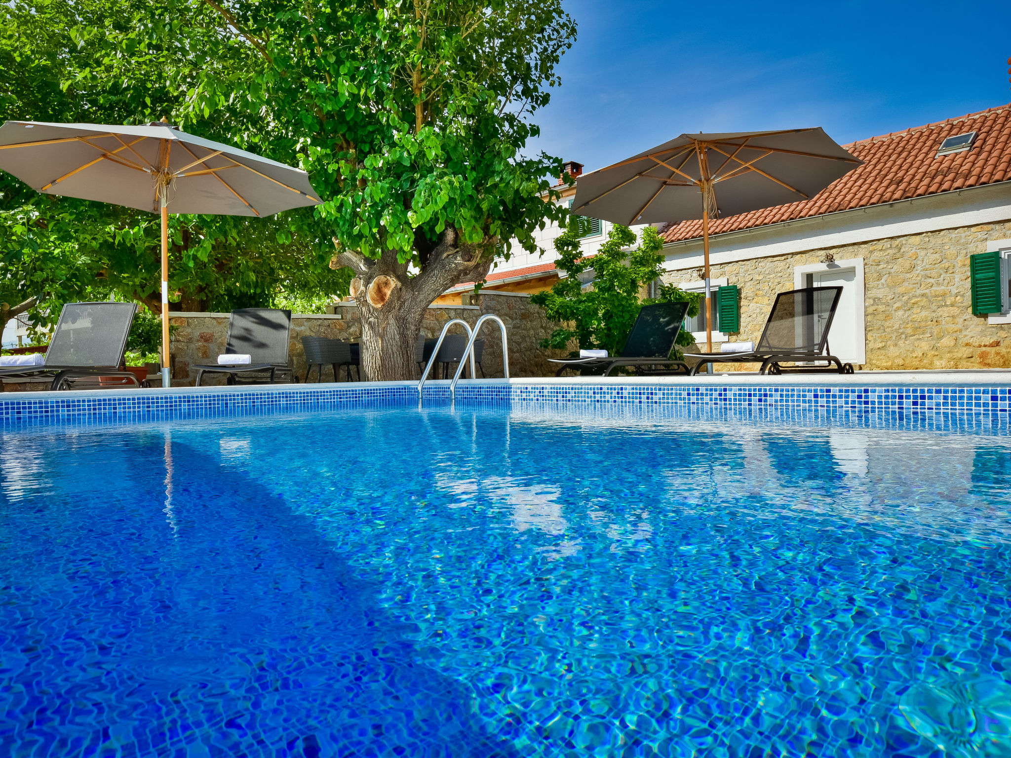 Ribnica 15 km von Novigrad: Reihenhaus "Ivan", renoviert im Jahre 2020. 9 km vom Zentrum von Obrovac, sonnige, erhöhte Lage, 1 km vom Meer, 1 km vom Strand. Zur Alleinbenutzung: Grundstück 100 m2 (eingezäunt), Schwimmbad eckig (6 x 3 m, 21 m2, 140 cm tief, 01.05.-01.10.) mit Innentreppe. Terrasse (100 m2), Gartenmöbel. Im Hause: Internetzugang, Waschmaschine. Parkplatz beim Haus. Einkaufsgeschäft 1.5 km, Restaurant 2 km, Kieselstrand 1 km.