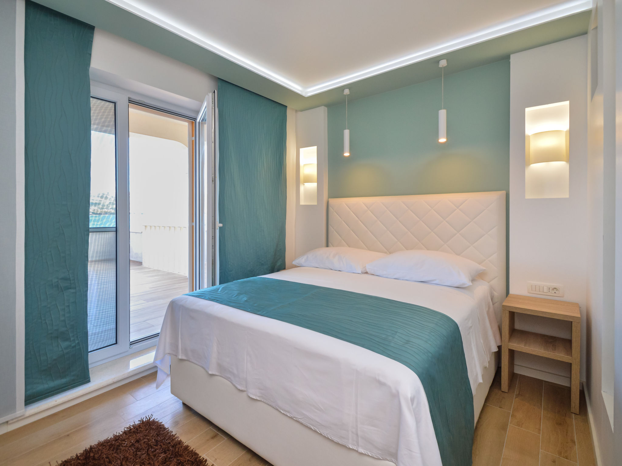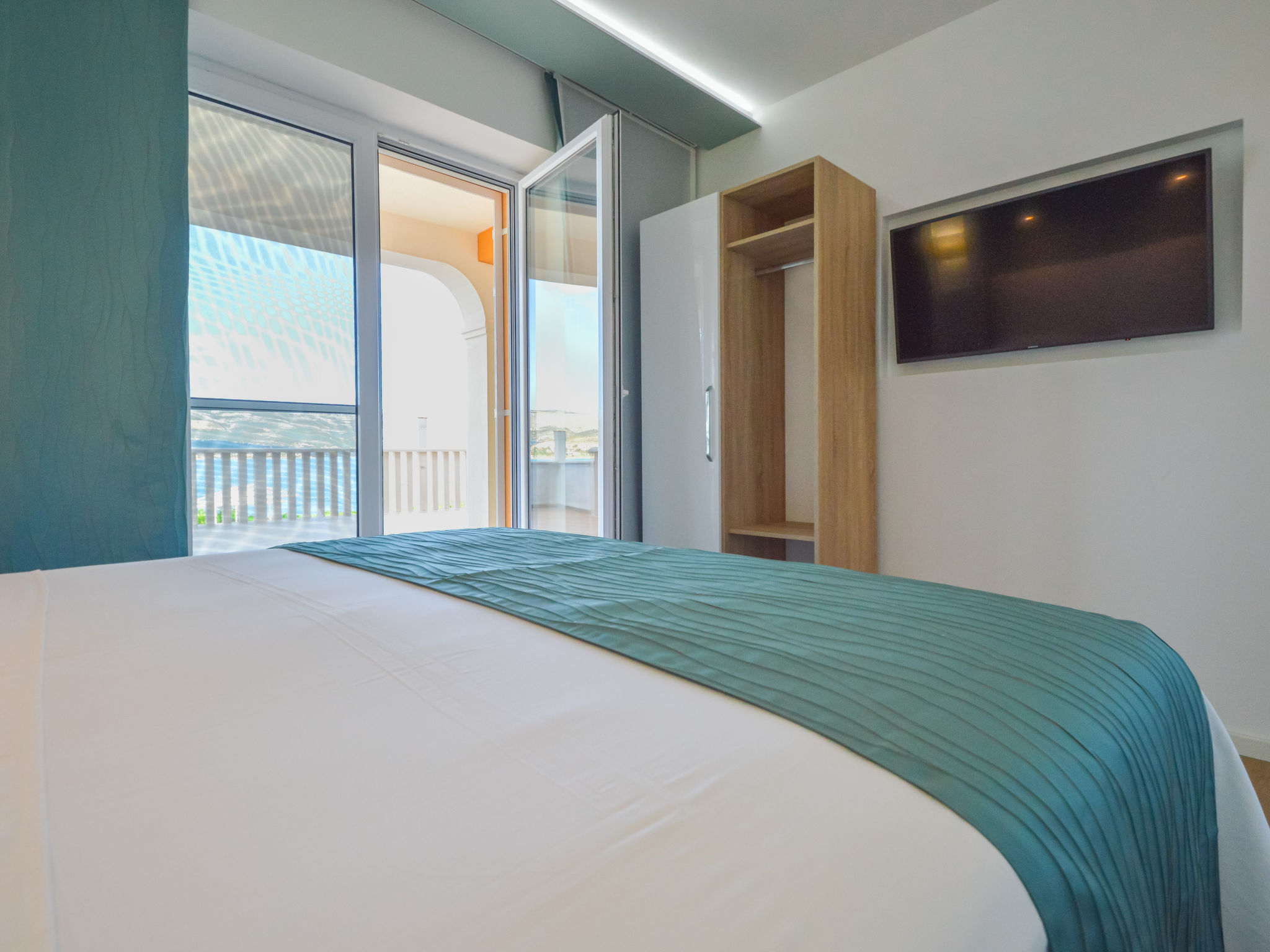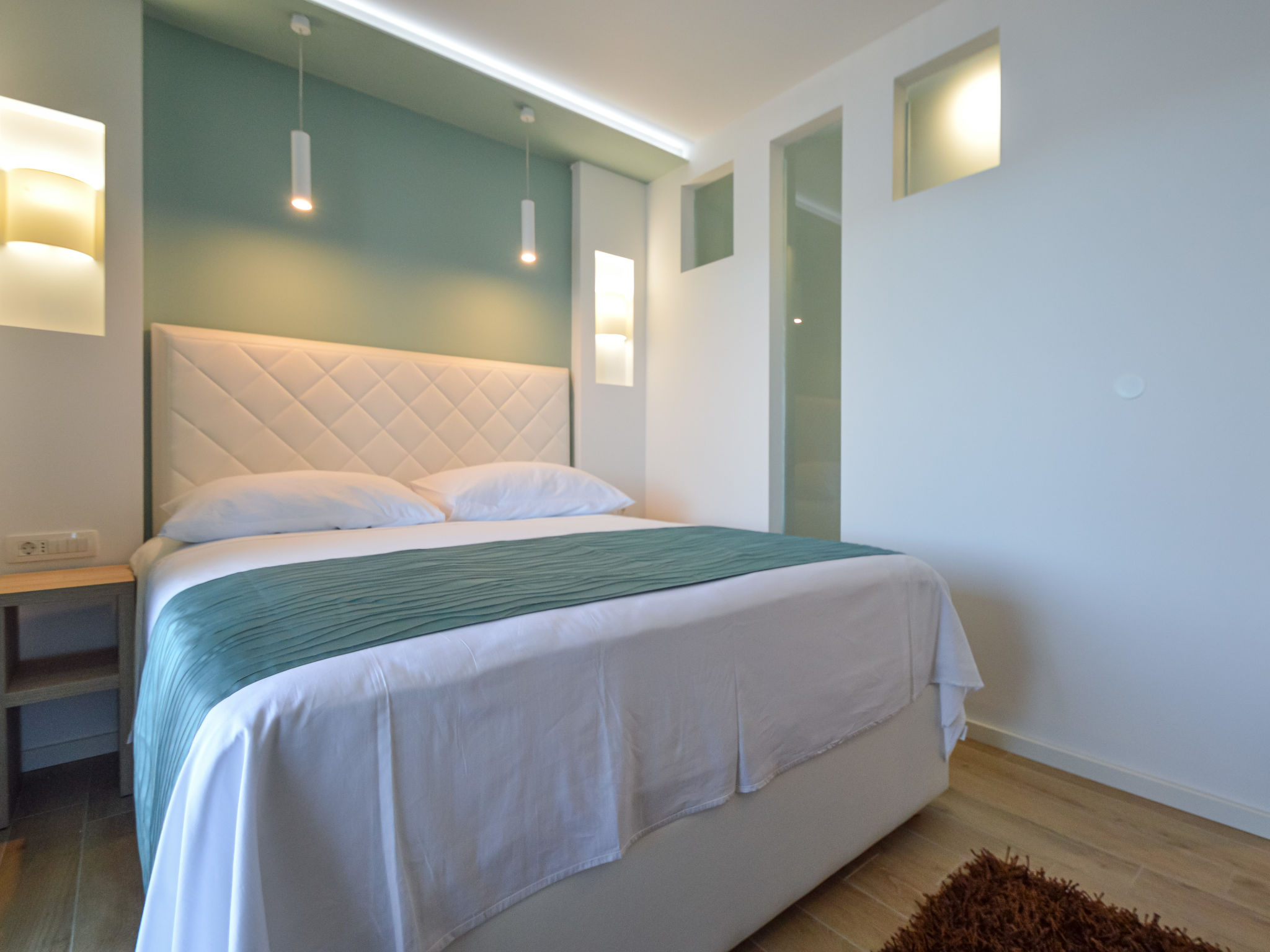 4-Zimmer-Wohnung 90 m2, im erhöhten Erdgeschoss, Nordwestlage. Wohn-/Esszimmer 24 m2 mit Sat-TV (Flachbildschirm), Klimaanlage. 3 Zimmer, jedes Zimmer mit 1 franz. Bett (160 cm, Länge 200 cm), Dusche/WC und Sat-TV (Flachbildschirm), Klimaanlage. Ausgang zur Terrasse. Offene Küche (Backofen, Geschirrspüler, 4 Glaskeramikherd Platten, Mikrowelle, Tiefkühler, elektrische Kaffeemaschine). Whirlbadewanne. Klimaanlage (extra). Terrasse 90 m2. Terrassenmöbel. Sicht auf das Meer. Zur Verfügung: Waschmaschine. Internet (Wireless LAN, gratis). Privat: Sprudelbad auf der Terrasse 90 m2.