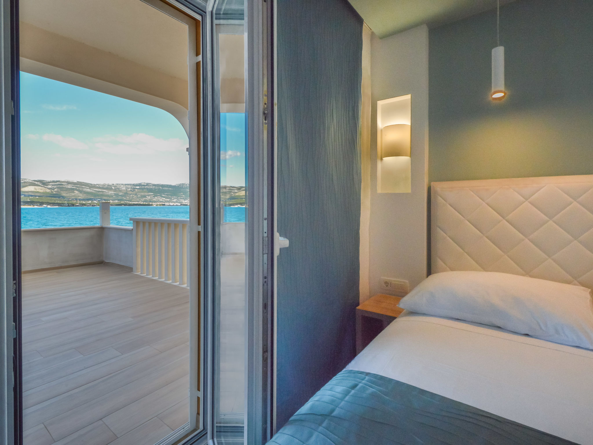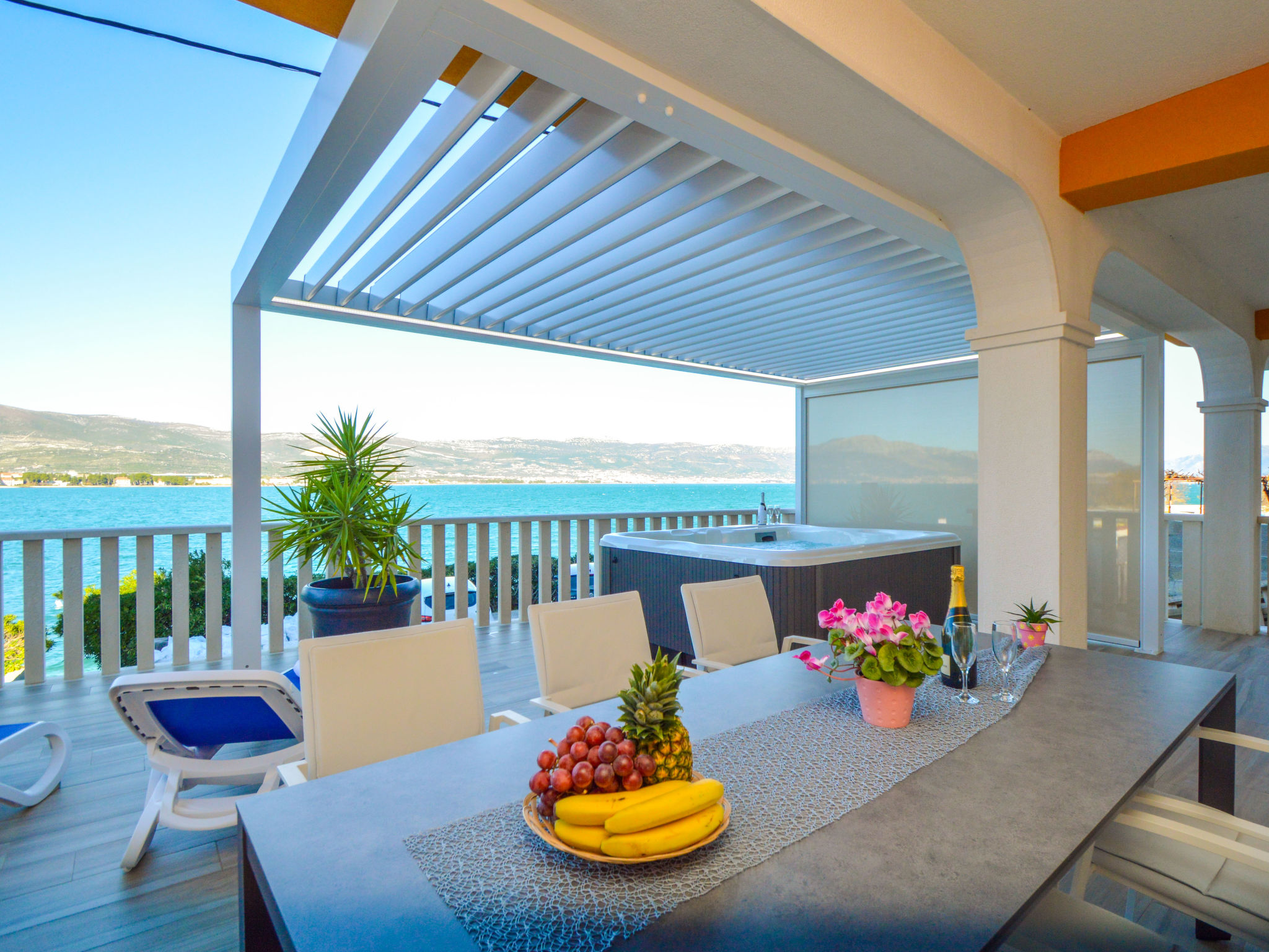 Arbanija (Čiovo) 4 km von Trogir: Mehrfamilienhaus "Mornar". 550 m vom Zentrum von Arbanija, sonnige Lage, 20 m vom Meer, 20 m vom Strand, Strasse zu überqueren, an einer Strasse. Zur Mitbenutzung: Grundstück 466 m2, Schwimmbad eckig beheizt (7 x 3 m, 24 m2, 126 - 176 cm tief, saisonale Verfügbarkeit: 01.Apr.-15.Okt.) mit Innentreppe. Terrasse (30 m2), Grill. Im Hause: Internetzugang. Zur Verfügung: Boot (extra). Parkplatz beim Haus auf dem Grundstück. Einkaufsgeschäft, Restaurant 550 m, Kieselstrand, Felsstrand, betonierter Strand 20 m. Bitte beachten: private Bootsanlegestelle (extra) auf Anfrage. Motorboot des Hausbesitzers kann gemietet werden (auf Anfrage, extra). Bitte beachten: Lizenz erforderlich.