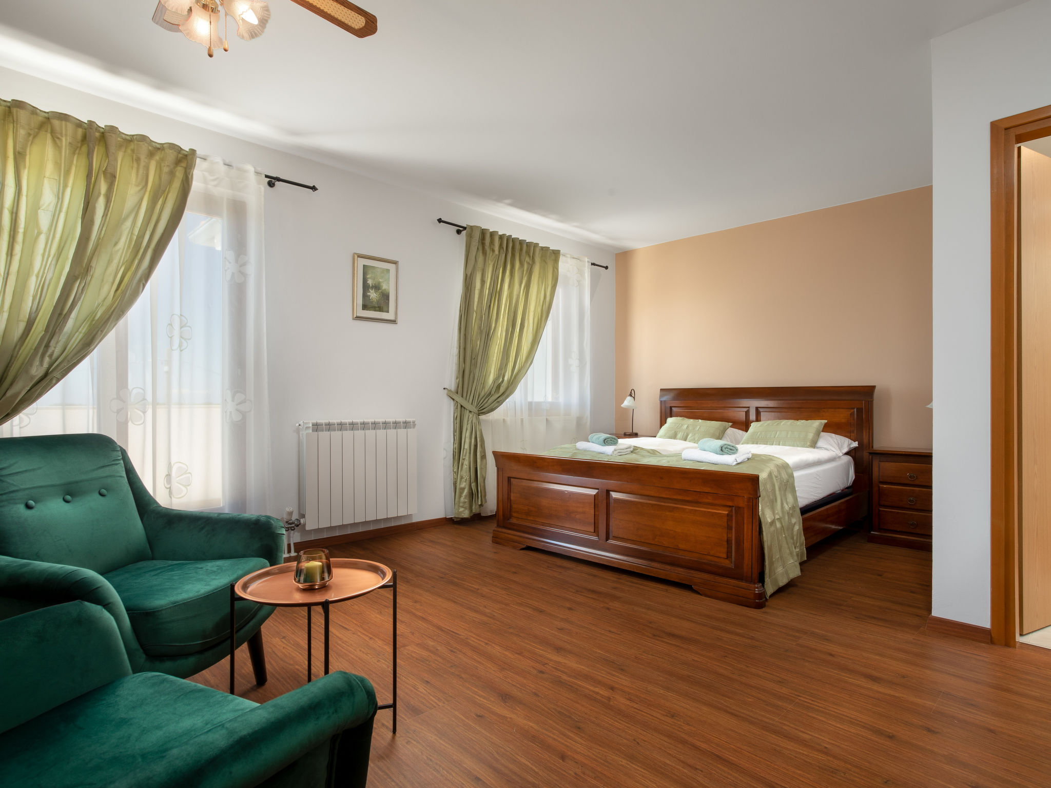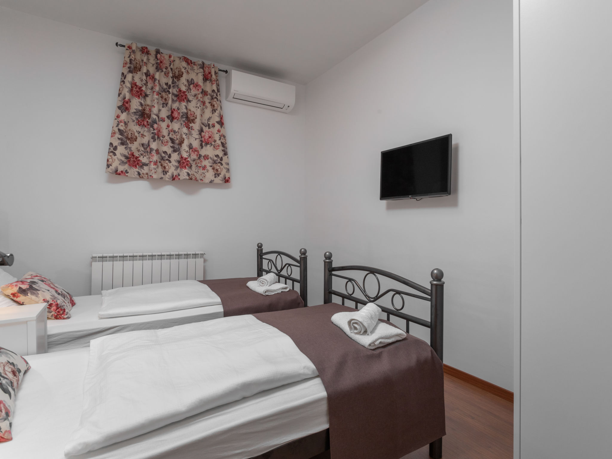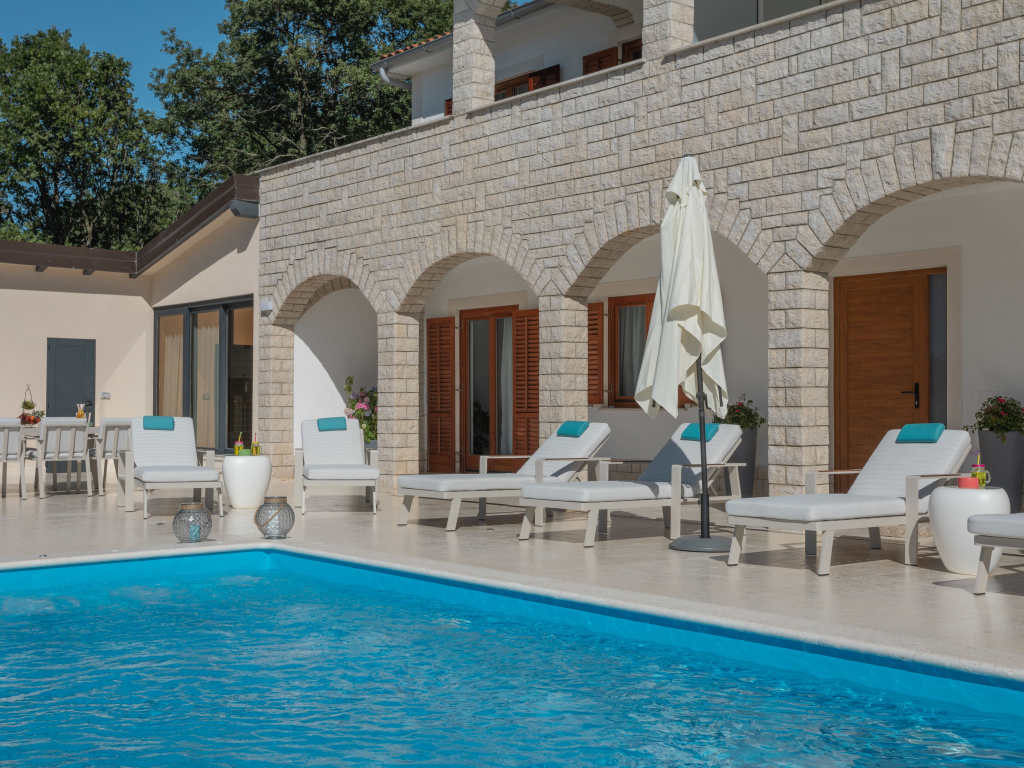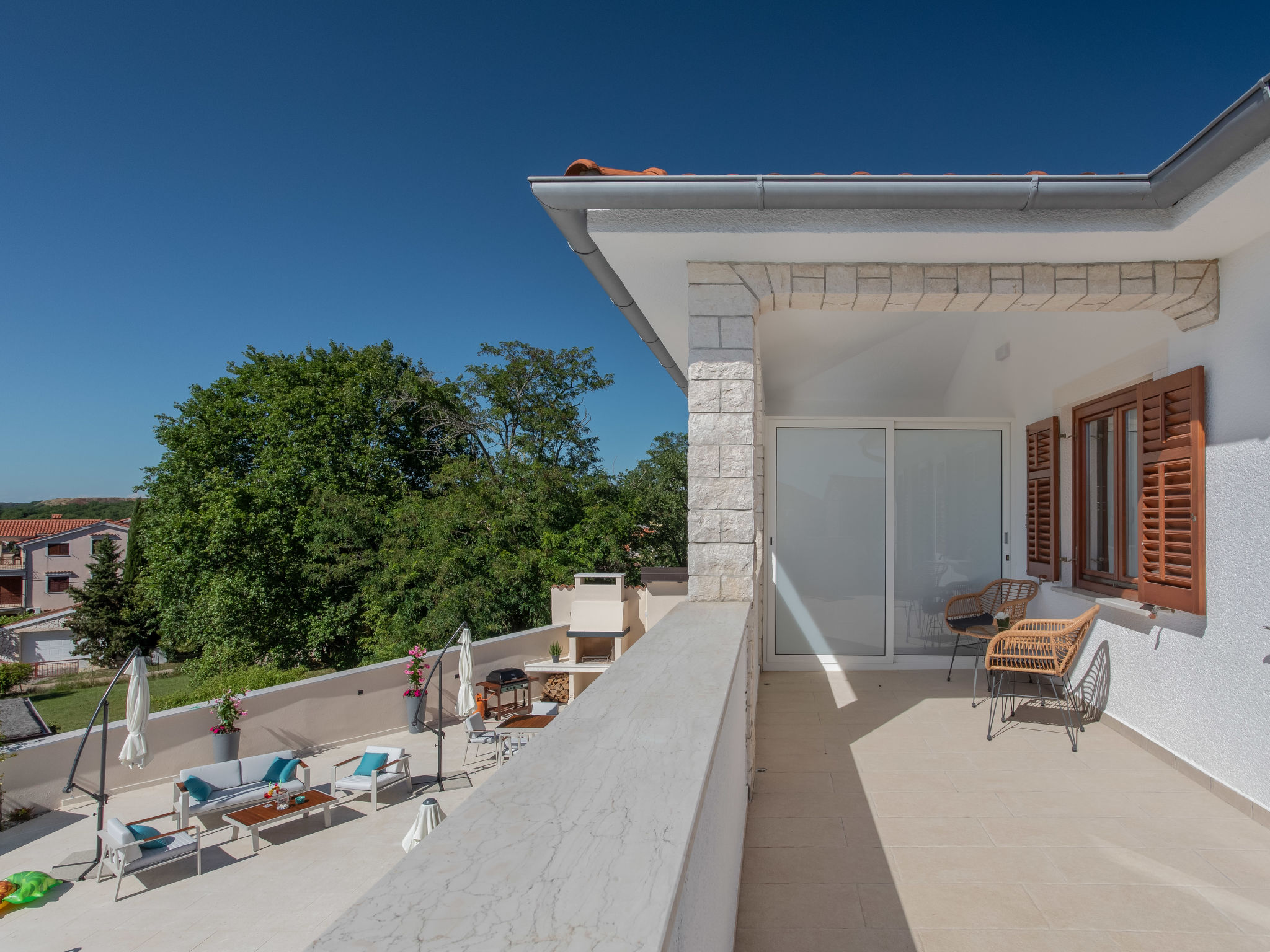 10-Zimmer-Haus 320 m2 auf 2 Stockwerken. Schön und geschmackvoll eingerichtet: Wohn-/Esszimmer 30 m2 mit Küchenblock und Sat-TV (Flachbildschirm), Klimaanlage. Ausgang zur Terrasse. 1 Zimmer mit 1 franz. Bett (160 cm, Länge 200 cm), Sat-TV (Flachbildschirm), Klimaanlage. Wohn-/Esszimmer 30 m2 mit Sat-TV (Flachbildschirm), Klimaanlage. Ausgang zum Schwimmbad. 1 Zimmer mit 2 Betten (90 cm, Länge 200 cm), Sat-TV (Flachbildschirm), Klimaanlage. Offene Küche (Backofen, Geschirrspüler, 4 Glaskeramikherd Platten, Mikrowelle, Tiefkühler, elektrische Kaffeemaschine). Dusche/WC, Dusche/Bidet/WC. Obergeschoss: 3 Zimmer, jedes Zimmer mit 1 franz. Bett (160 cm, Länge 200 cm), Sat-TV (Flachbildschirm), Klimaanlage. 2 Zimmer, jedes Zimmer mit 1 franz. Bett (160 cm, Länge 200 cm), Dusche/WC und Sat-TV (Flachbildschirm), Klimaanlage. Ausgang zur Terrasse. 1 Zimmer mit 1 Bett (90 cm, Länge 200 cm), Sat-TV (Flachbildschirm), Klimaanlage. Ausgang zur Terrasse. 2 Duschen/WC. Terrasse 9 m2, überdacht, 2 Terrassen 14 m2. Terrassenmöbel, Liegestühle. Fernsicht auf das Meer. Zur Verfügung: Safe, Bügeleisen, Kinderhochstuhl, Babybett, Haartrockner. Internet (Wireless LAN, gratis).