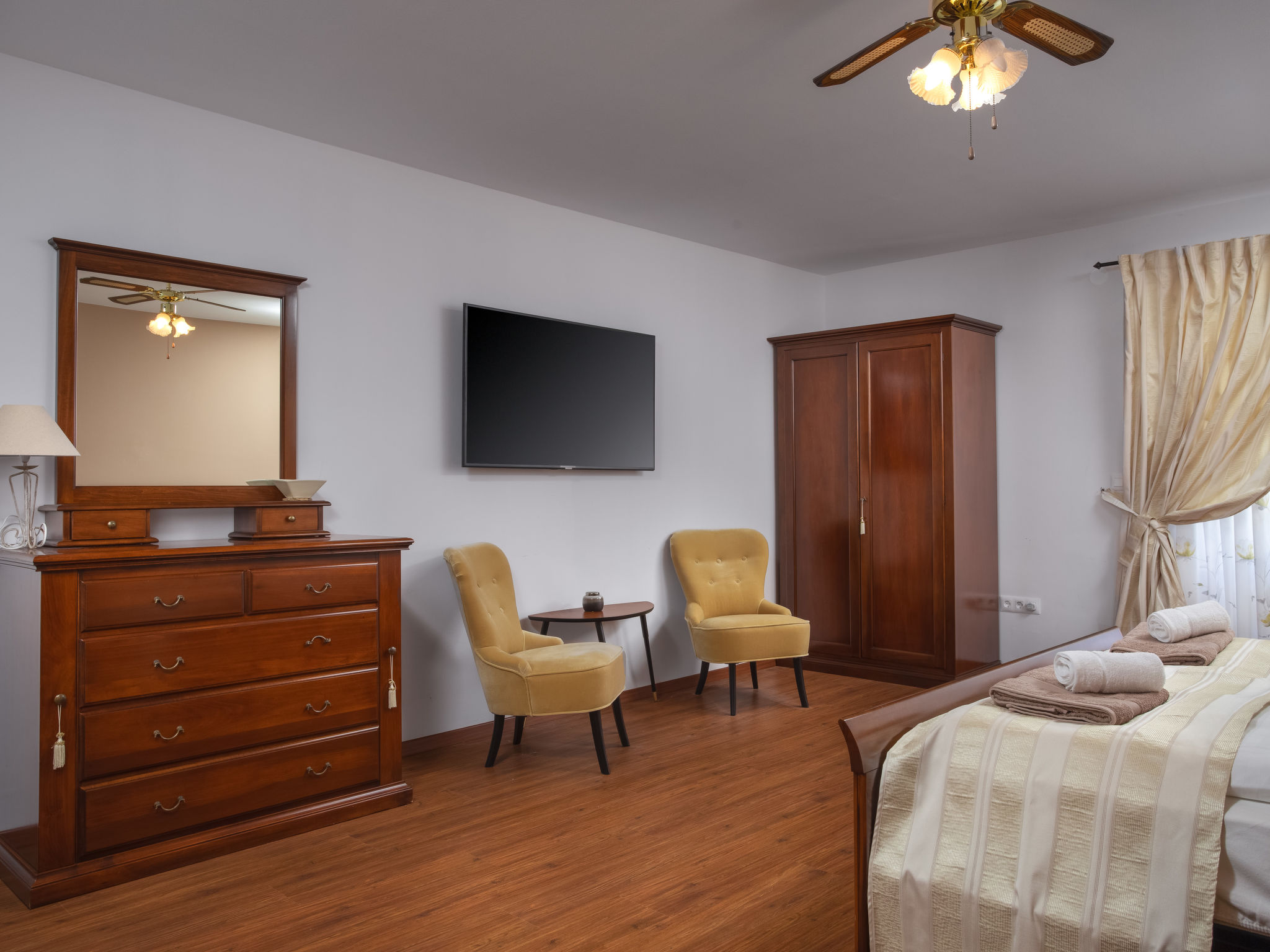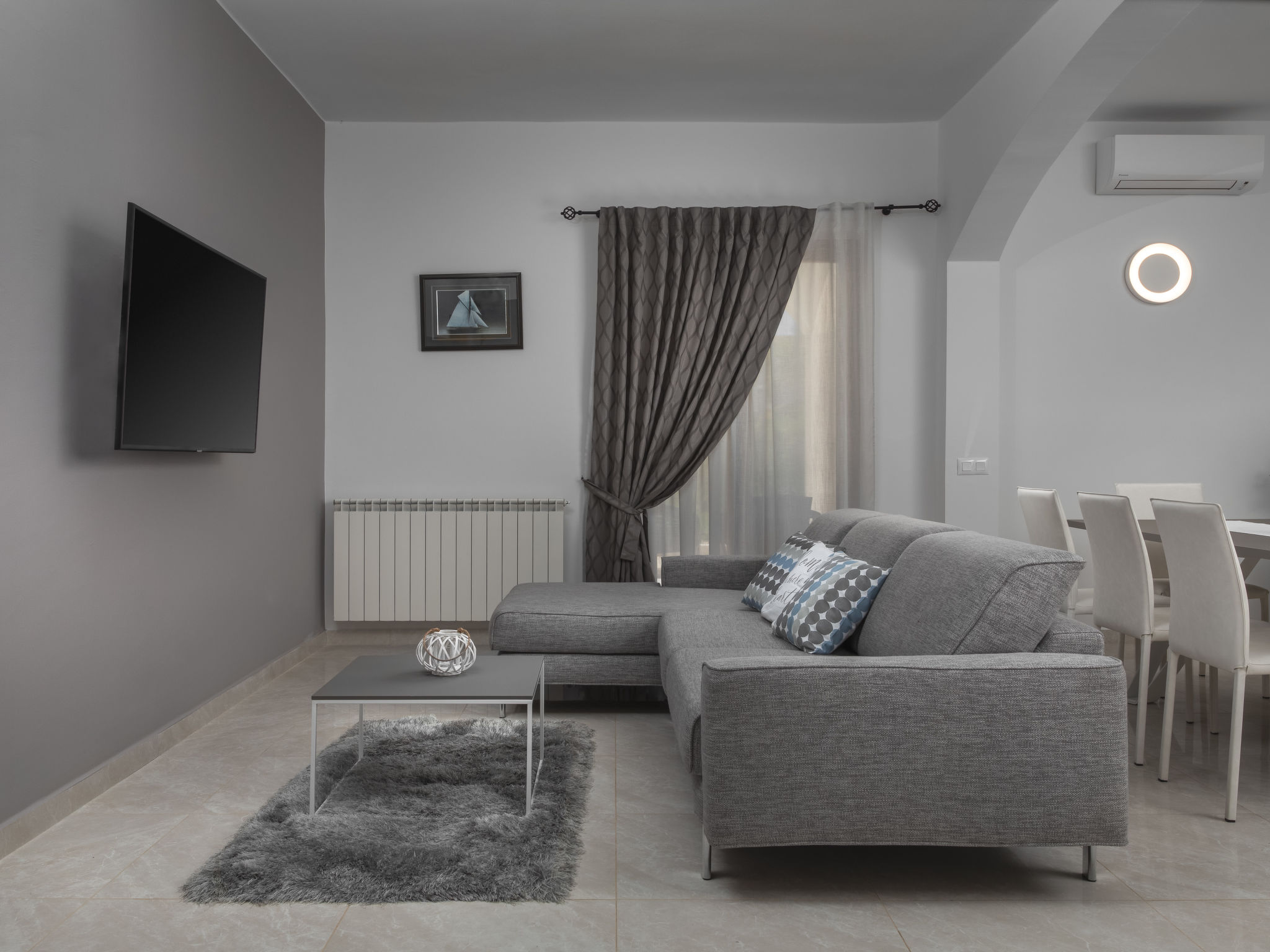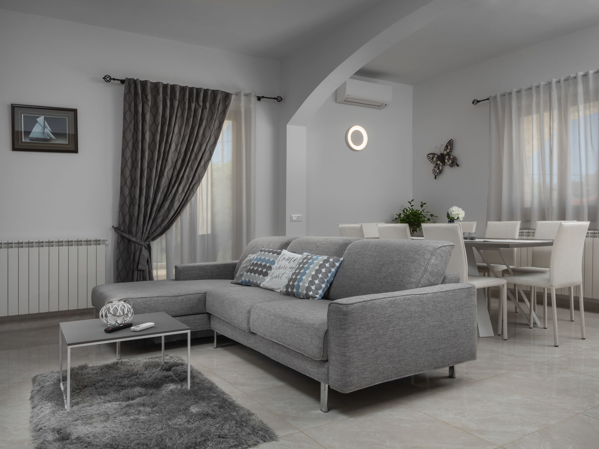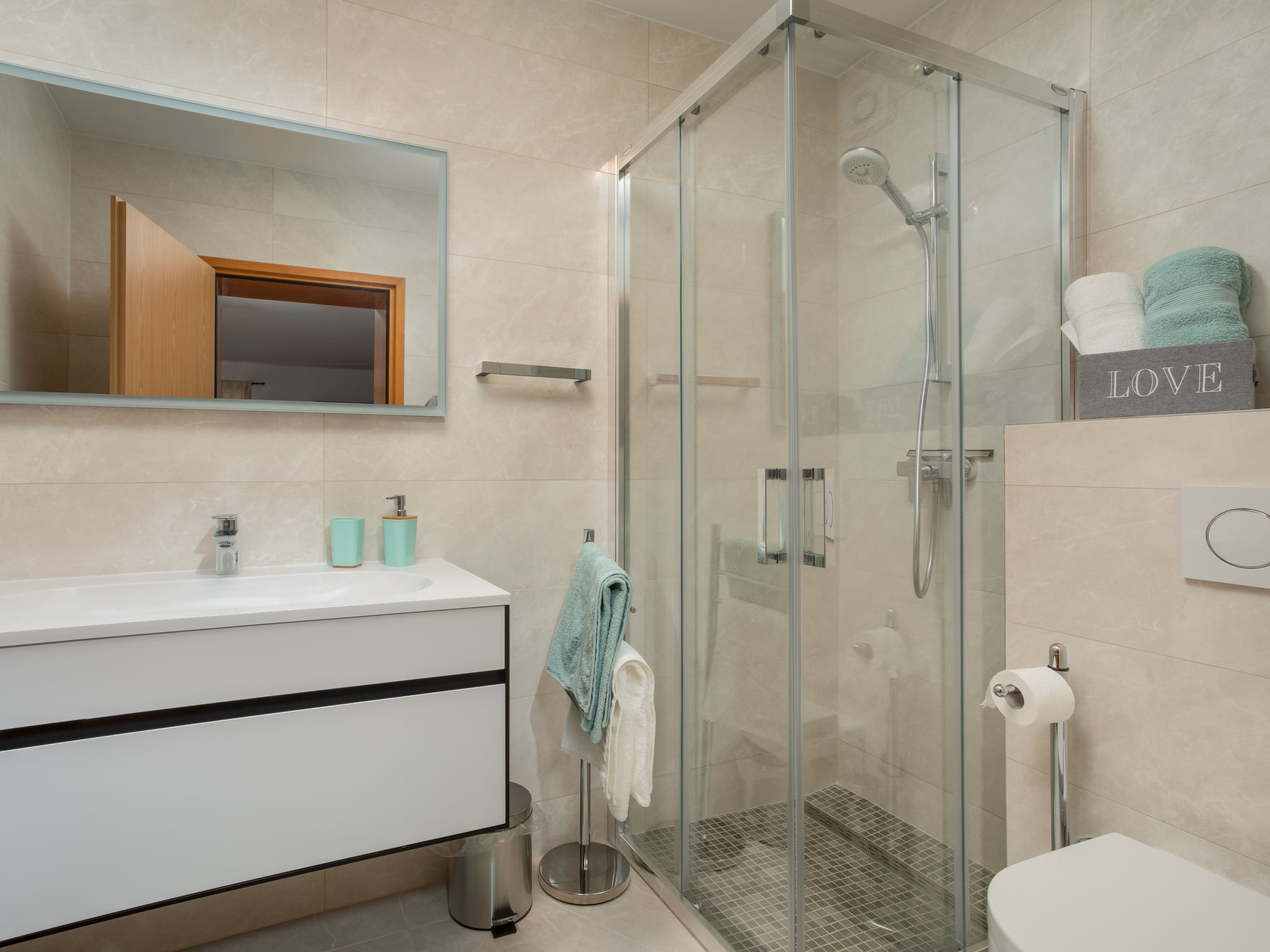 10-Zimmer-Haus 320 m2 auf 2 Stockwerken. Schön und geschmackvoll eingerichtet: Wohn-/Esszimmer 30 m2 mit Küchenblock und Sat-TV (Flachbildschirm), Klimaanlage. Ausgang zur Terrasse. 1 Zimmer mit 1 franz. Bett (160 cm, Länge 200 cm), Sat-TV (Flachbildschirm), Klimaanlage. Wohn-/Esszimmer 30 m2 mit Sat-TV (Flachbildschirm), Klimaanlage. Ausgang zum Schwimmbad. 1 Zimmer mit 2 Betten (90 cm, Länge 200 cm), Sat-TV (Flachbildschirm), Klimaanlage. Offene Küche (Backofen, Geschirrspüler, 4 Glaskeramikherd Platten, Mikrowelle, Tiefkühler, elektrische Kaffeemaschine). Dusche/WC, Dusche/Bidet/WC. Obergeschoss: 3 Zimmer, jedes Zimmer mit 1 franz. Bett (160 cm, Länge 200 cm), Sat-TV (Flachbildschirm), Klimaanlage. 2 Zimmer, jedes Zimmer mit 1 franz. Bett (160 cm, Länge 200 cm), Dusche/WC und Sat-TV (Flachbildschirm), Klimaanlage. Ausgang zur Terrasse. 1 Zimmer mit 1 Bett (90 cm, Länge 200 cm), Sat-TV (Flachbildschirm), Klimaanlage. Ausgang zur Terrasse. 2 Duschen/WC. Terrasse 9 m2, überdacht, 2 Terrassen 14 m2. Terrassenmöbel, Liegestühle. Fernsicht auf das Meer. Zur Verfügung: Safe, Bügeleisen, Kinderhochstuhl, Babybett, Haartrockner. Internet (Wireless LAN, gratis).