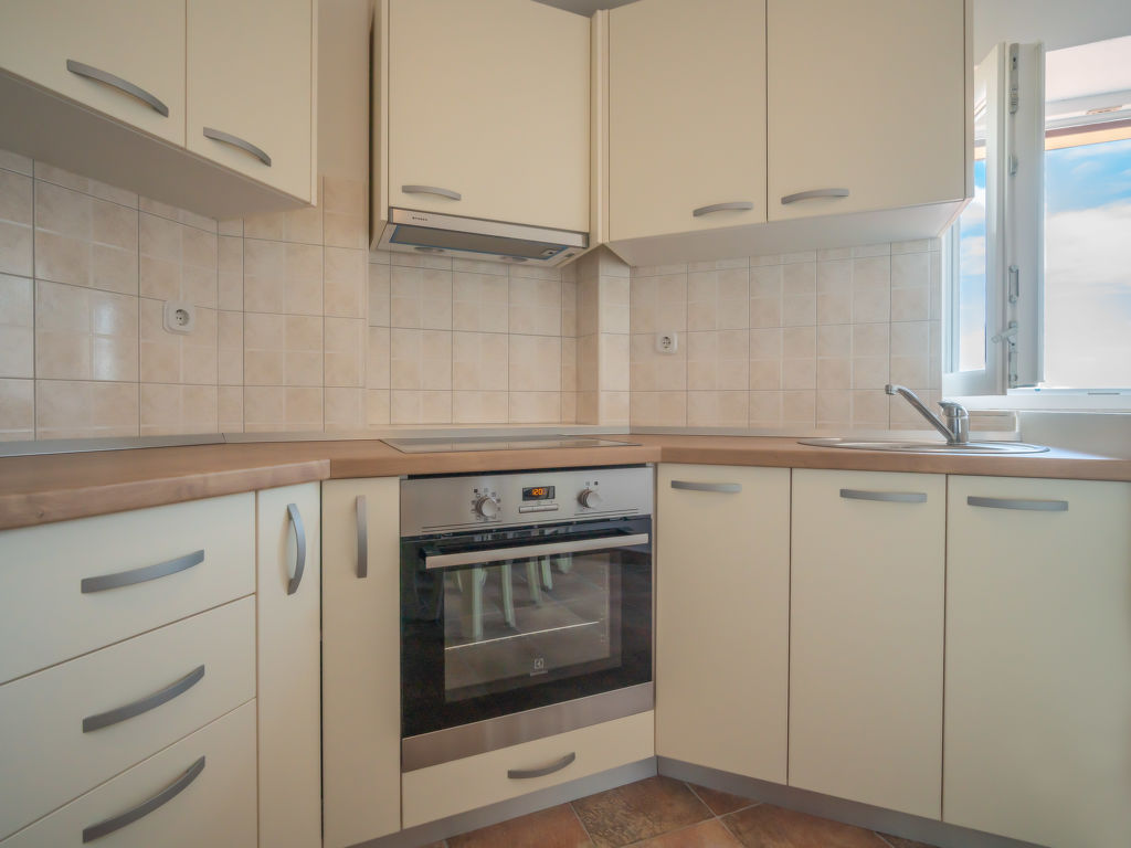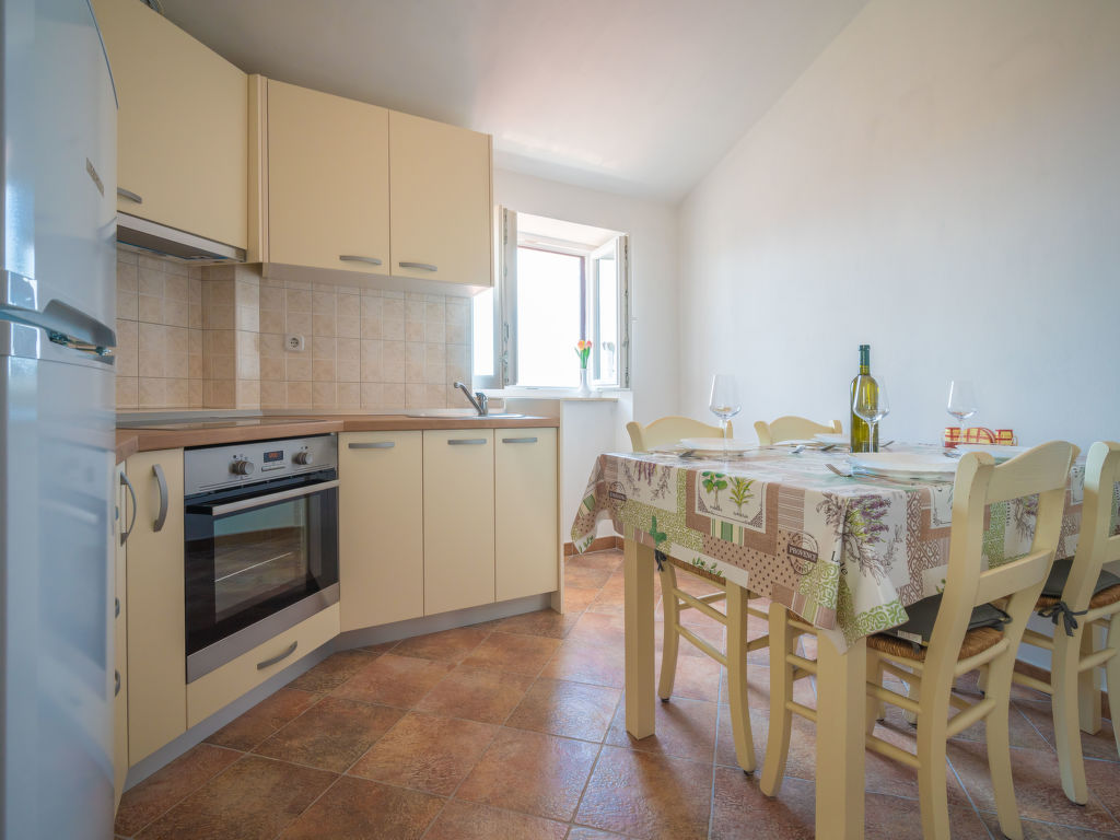 3-Zimmer-Reihenhaus 52 m2 auf 2 Stockwerken. Wohn-/Esszimmer 25 m2 mit Sat-TV (Flachbildschirm), Klimaanlage. 1 Zimmer 15 m2 mit 1 franz. Bett (180 cm, Länge 200 cm). Offene Küche (Backofen, 4 Glaskeramikherd Platten, Tiefkühler, elektrische Kaffeemaschine). Dusche/WC. Klimaanlage (extra). Unteres Geschoss: 1 Zimmer 12 m2, niedrige Türrahmen, Höhe 167 cm mit 2 Betten (90 cm, Länge 200 cm). Herrliche Sicht auf das Meer. Niedrige Höhe der Hauseingangstür (180 cm).