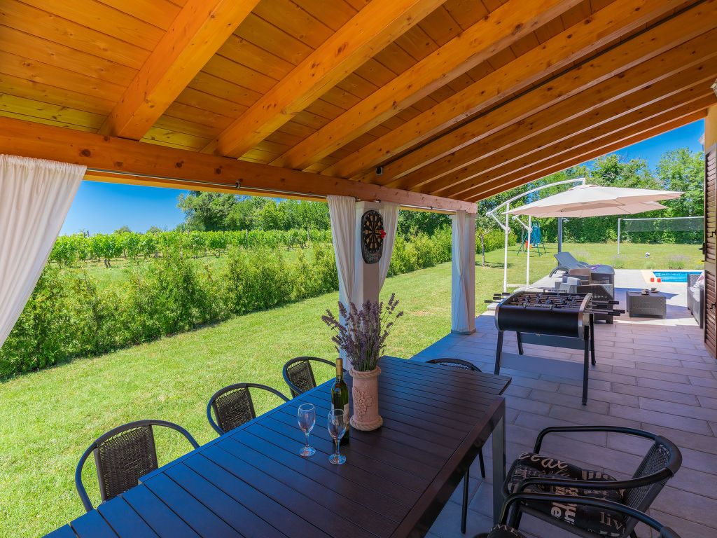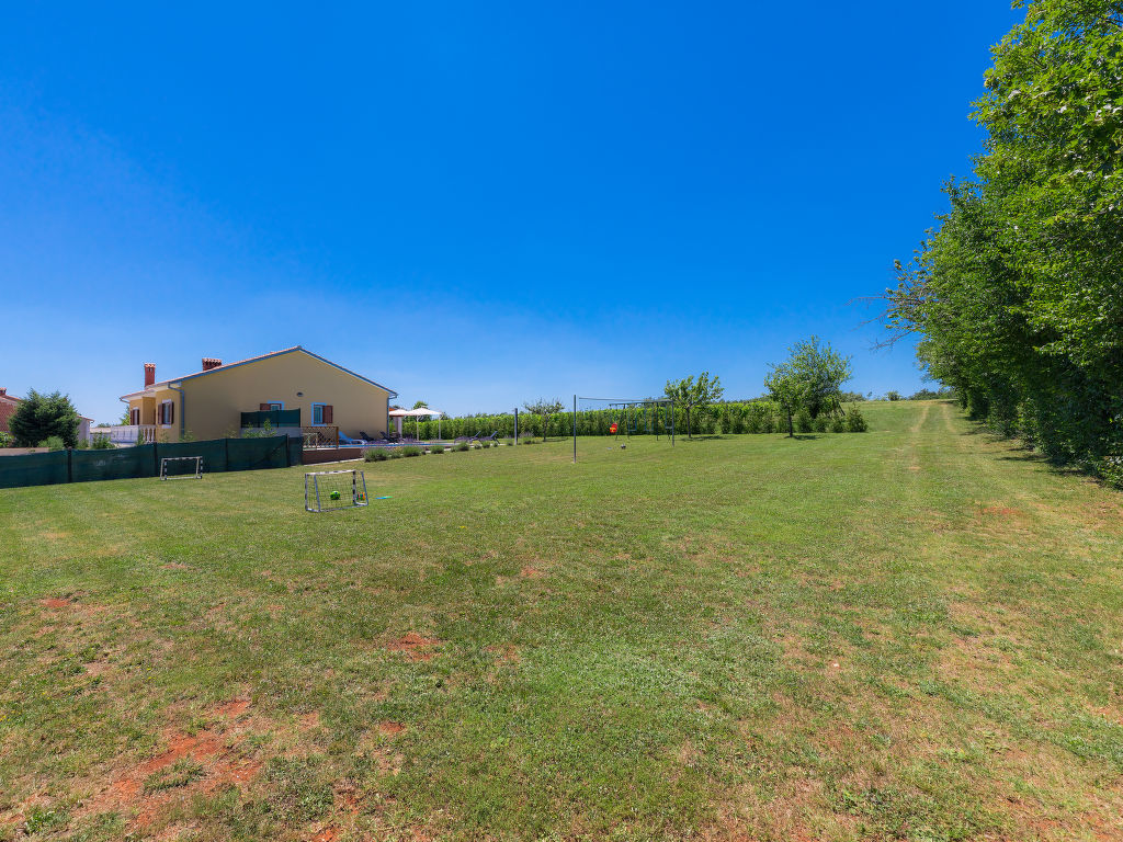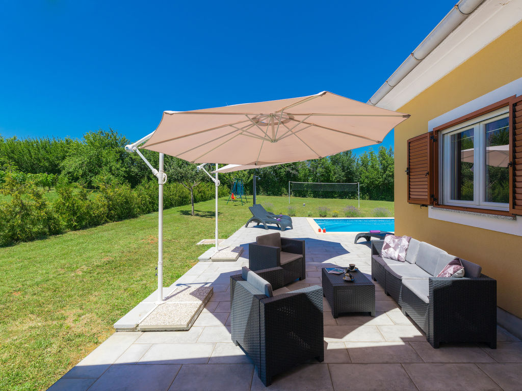 Einfamilienhaus "Melian", auf 2 Stockwerken. Im Weiler Jurićev Kal, 5 km vom Zentrum von Barban, sonnige Lage, 14 km vom Meer, im Grünen. Zur Alleinbenutzung: Grundstück 2'500 m2, schöner Garten mit Rasen und Pflanzen, Schwimmbad eckig (8 x 4 m, 140 cm tief, 15.05.-01.10.) mit Innentreppe. Aussendusche, Volleyball, Badminton, Grillhaus, Kinderspielplatz (Schaukel). Im Hause: Internetzugang, Billard, Tischfussball, Einstellraum für Fahrräder, Waschmaschine. Parkplatz (für 2 Autos, überdacht) beim Haus auf dem Grundstück. Einkaufsgeschäft 5 km, Supermarkt 14 km, Restaurant 5 km, Café 5 km, Kieselstrand 14 km. Tennis 25 km, Reitstall 13 km, Wanderwege ab Haus 100 m, Radweg 150 m. Das Haus besteht aus 2 Wohnungen vermietet als eine Einheit. .