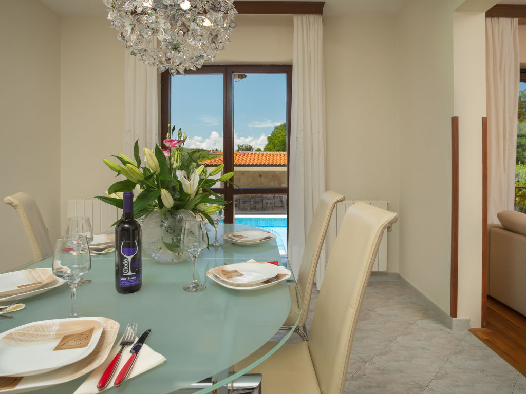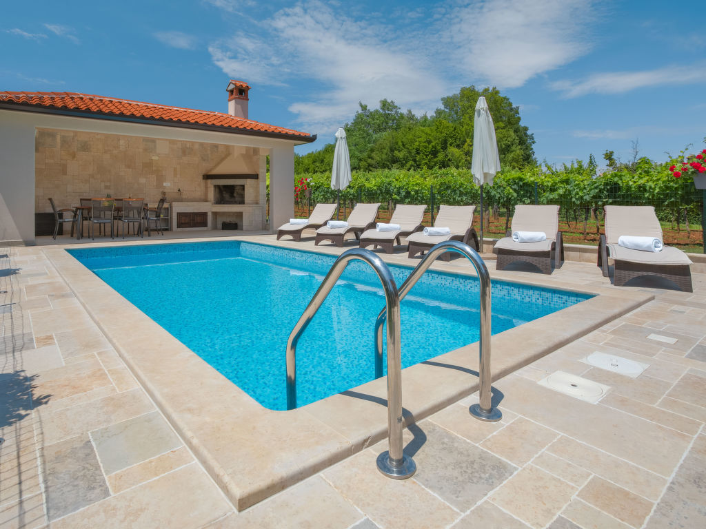 Einfamilienhaus "Ana", auf 2 Stockwerken. Im Weiler Ružići, 9 km vom Zentrum von Labin, ruhige, sonnige Lage, 14 km vom Meer, im Grünen. Zur Alleinbenutzung: Grundstück 3'000 m2, Garten Pflanzen und Bäumen, Schwimmbad eckig (7 x 3 m, 24 m2, 130 cm tief, 22.05.-11.09.). Aussendusche, Terrasse, Gartenmöbel, Grill, Kinderspielplatz (Rutschbahn, Schaukel). Im Hause: Internetzugang, Waschmaschine. Parkplatz (für 2 Autos) beim Haus auf dem Grundstück. Einkaufsgeschäft 2 km, Supermarkt 9 km, Restaurant 2 km, Café 9 km, Kieselstrand 14 km. Bitte beachten: geeignet für Familien. Ein Teil des Hauses ist abgeschlossen und unbewohnt. Tiere in der Umgebung. Keine Vermietung an Jugendgruppen.
