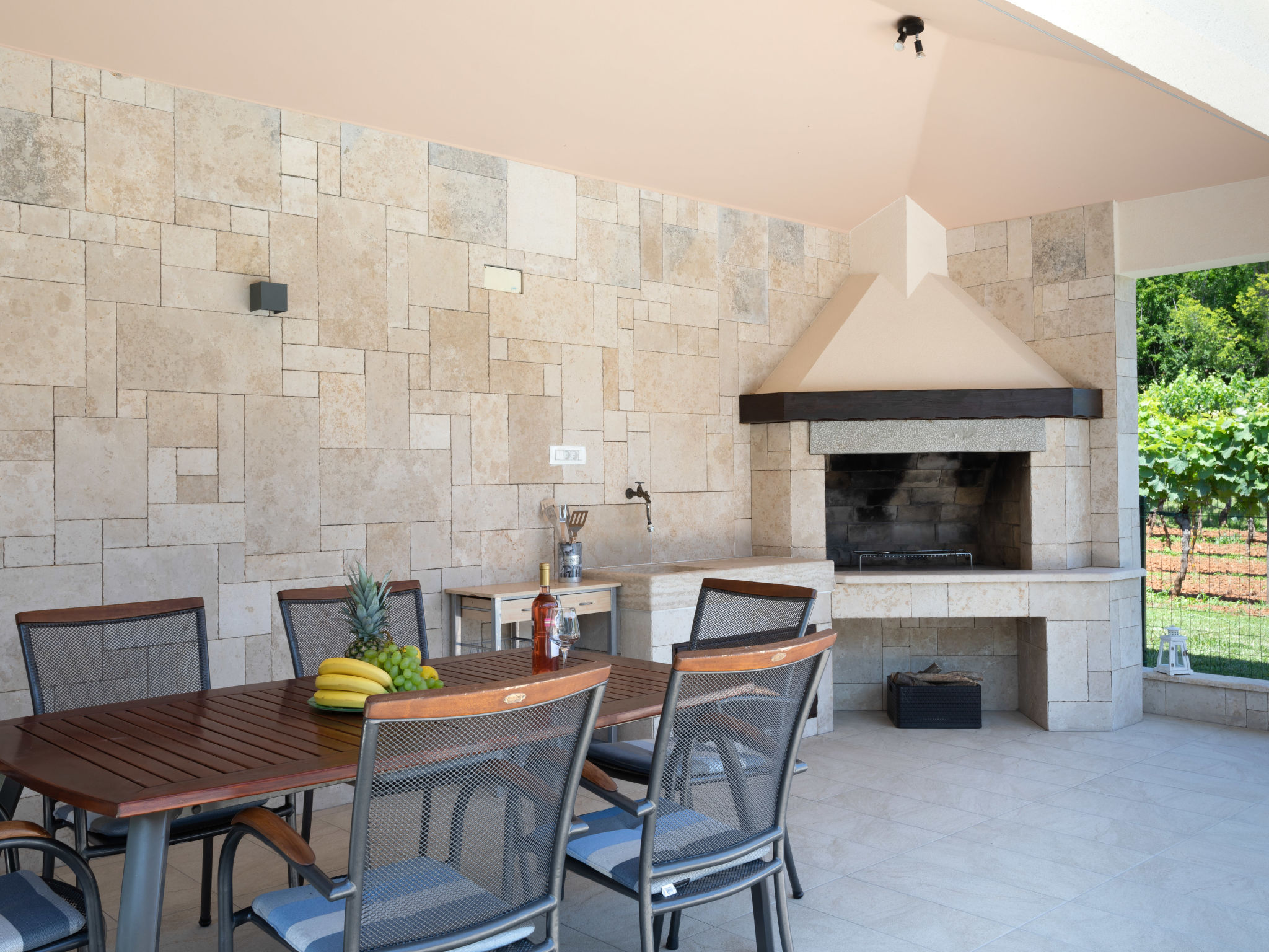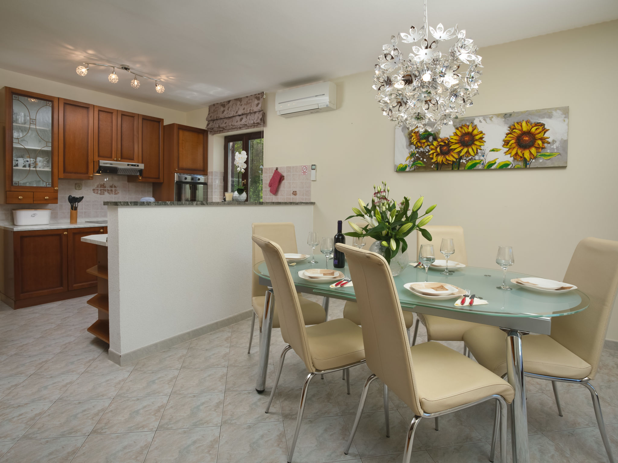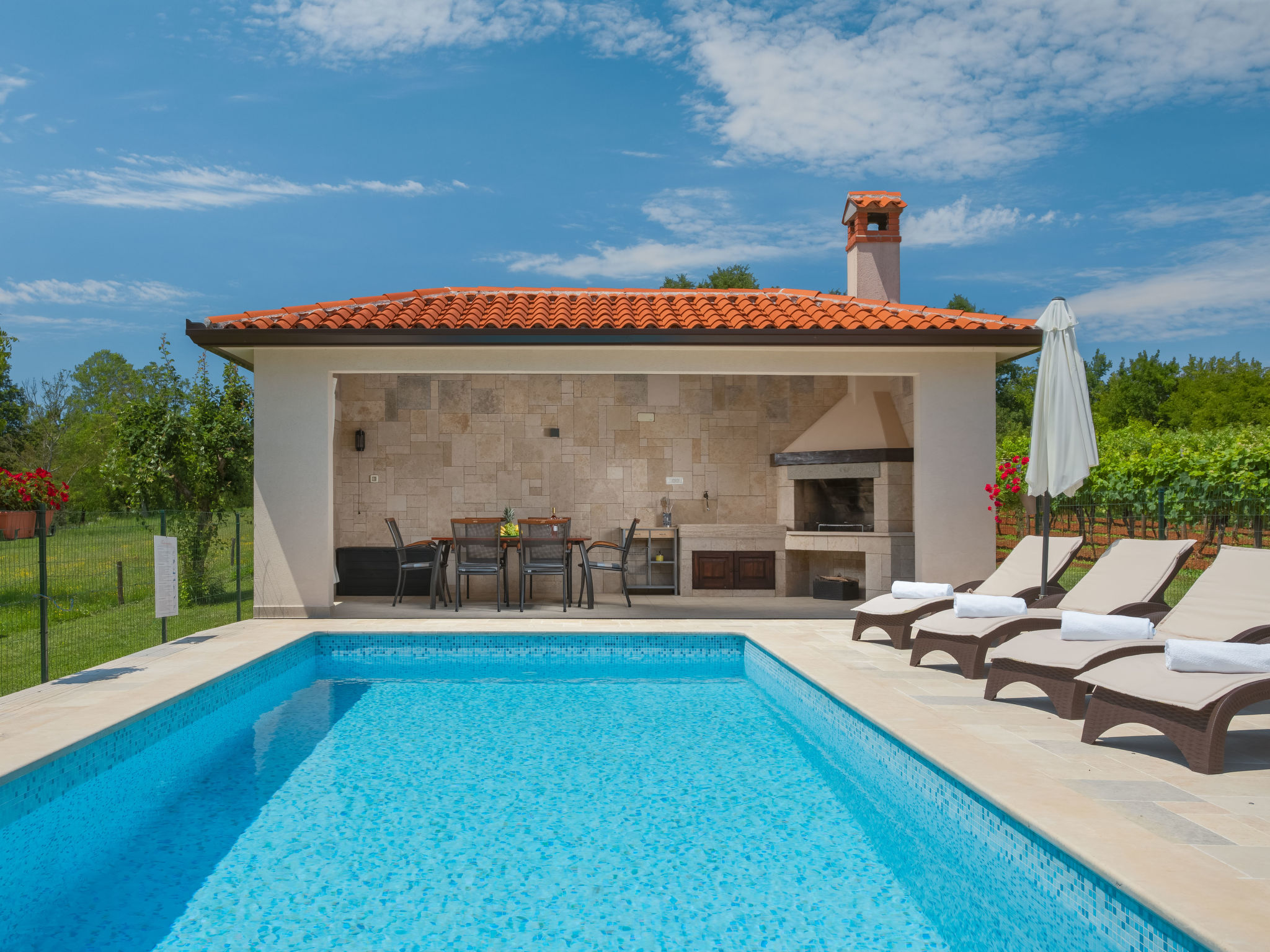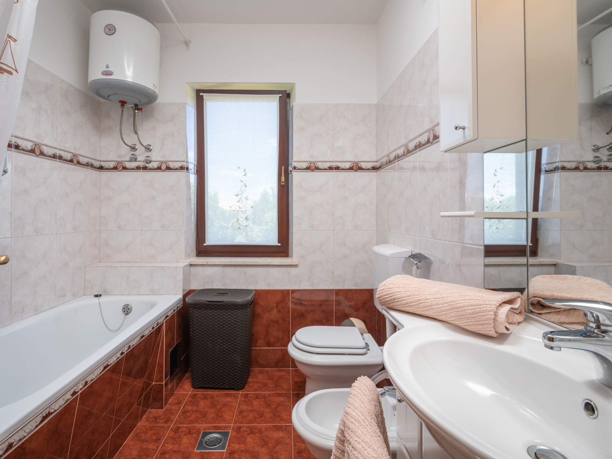 Einfamilienhaus "Ana", auf 2 Stockwerken. Im Weiler Ružići, 9 km vom Zentrum von Labin, ruhige, sonnige Lage, 14 km vom Meer, im Grünen. Zur Alleinbenutzung: Grundstück 3'000 m2, Garten Pflanzen und Bäumen, Schwimmbad eckig (7 x 3 m, 24 m2, 130 cm tief, 22.05.-11.09.). Aussendusche, Terrasse, Gartenmöbel, Grill, Kinderspielplatz (Rutschbahn, Schaukel). Im Hause: Internetzugang, Waschmaschine. Parkplatz (für 2 Autos) beim Haus auf dem Grundstück. Einkaufsgeschäft 2 km, Supermarkt 9 km, Restaurant 2 km, Café 9 km, Kieselstrand 14 km. Bitte beachten: geeignet für Familien. Ein Teil des Hauses ist abgeschlossen und unbewohnt. Tiere in der Umgebung. Keine Vermietung an Jugendgruppen.