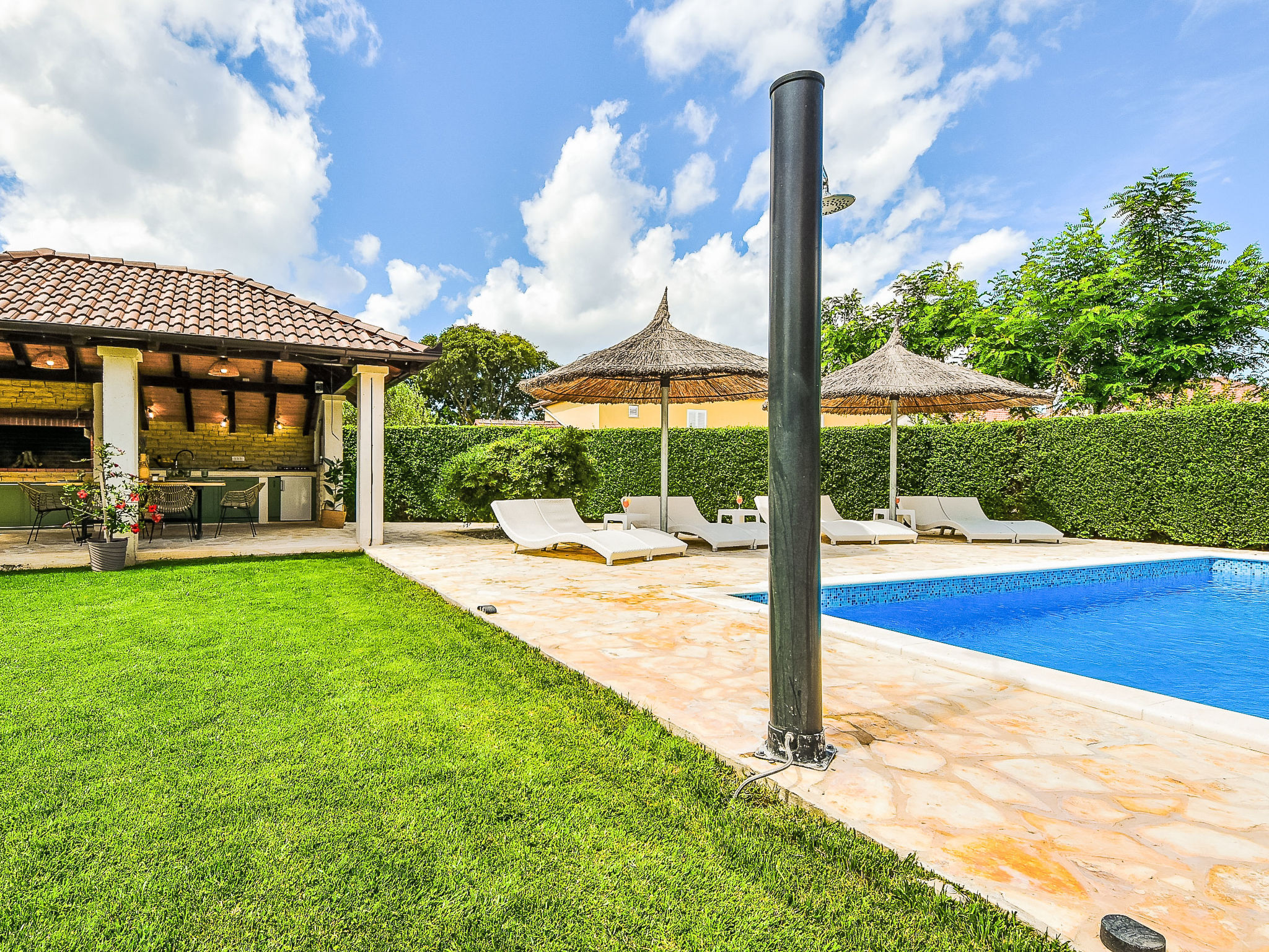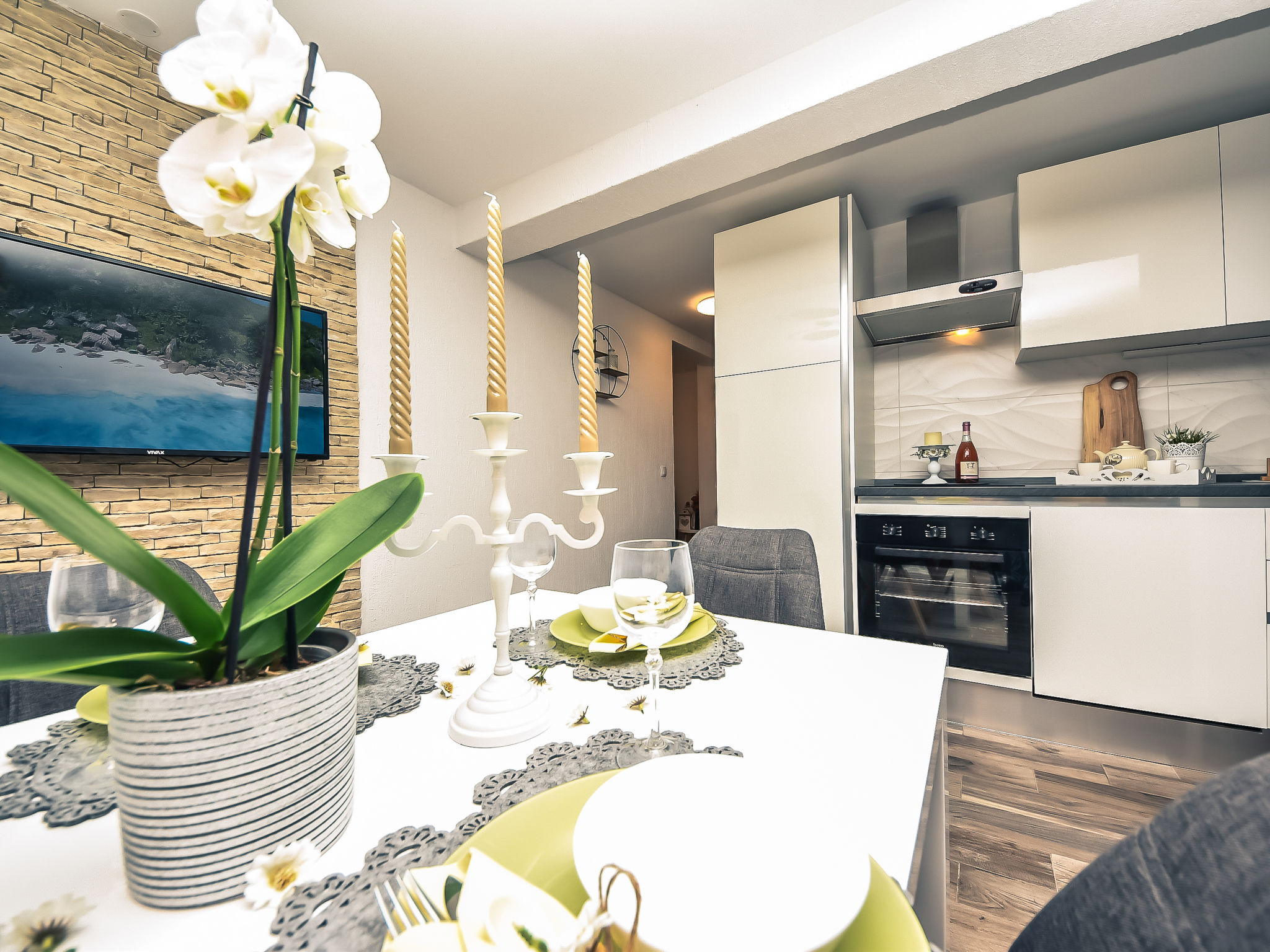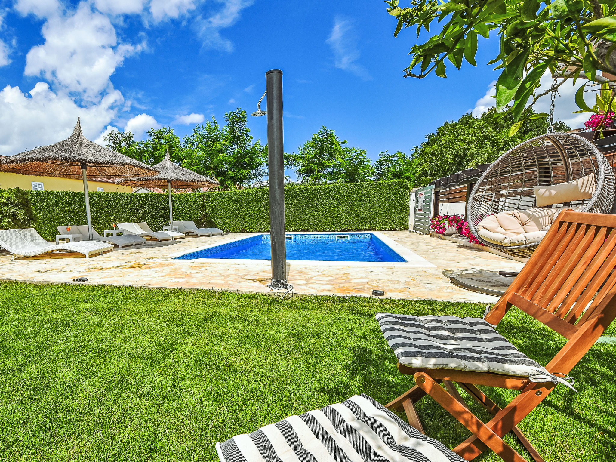 Dreifamilienhaus "Petra". 2 km vom Zentrum von Biograd na Moru, ruhige, sonnige Lage, 2.5 km vom Meer, 2.5 km vom Strand. Zur Mitbenutzung: Grundstück 1'000 m2 (eingezäunt) mit Rasen und Pflanzen, Schwimmbad eckig (8 x 4 m, 140 cm tief, saisonale Verfügbarkeit: 01.Mai.-01.Okt.) mit Innentreppe. Aussendusche, Gartenmöbel, Grill. Im Hause: Internetzugang. Parkplatz beim Haus auf dem Grundstück. Einkaufsgeschäft 500 m, Restaurant 1 km, Kieselstrand 2.5 km. Tennis 2.5 km. Nahe gelegene Sehenswürdigkeiten: amusement park 2.5 km.