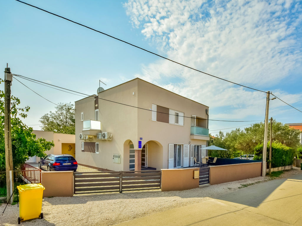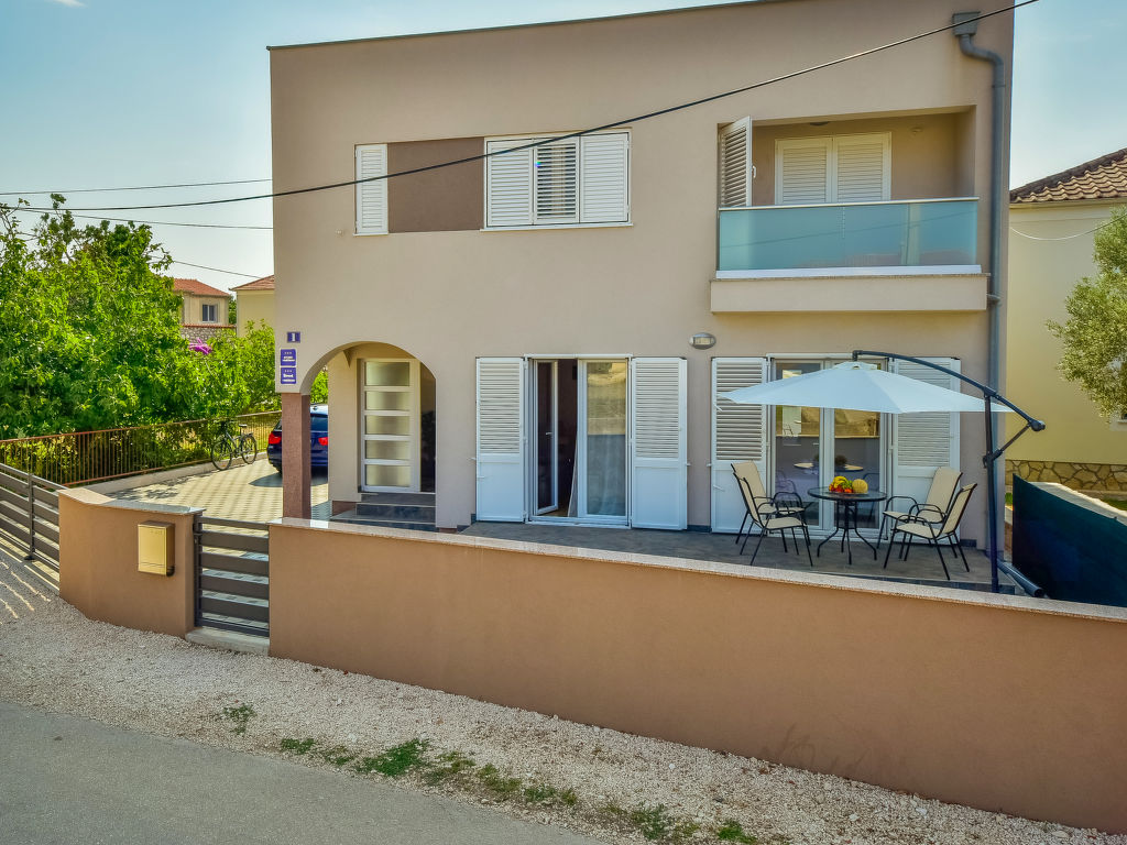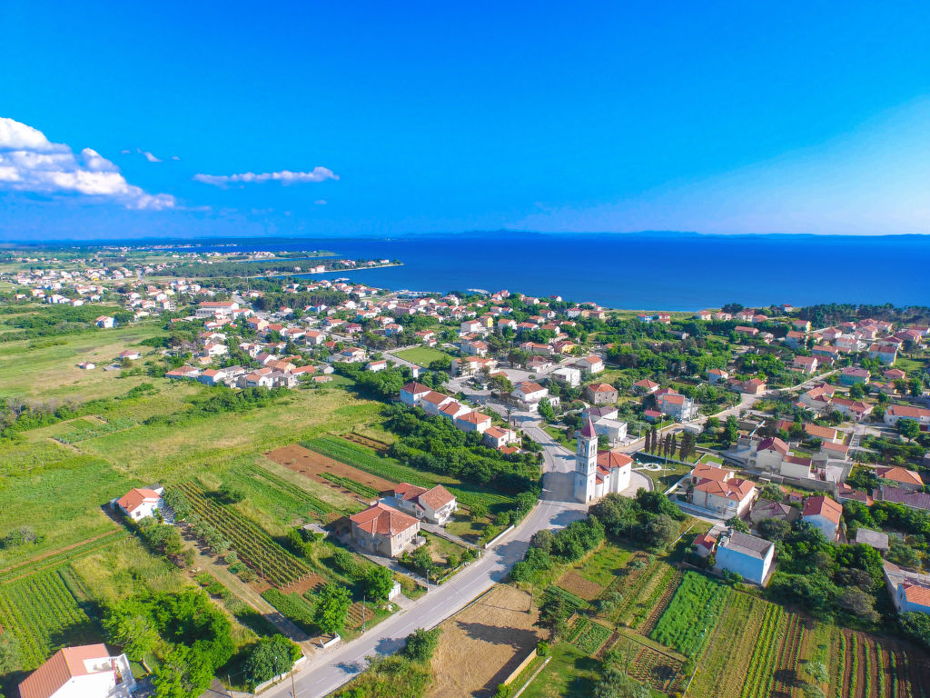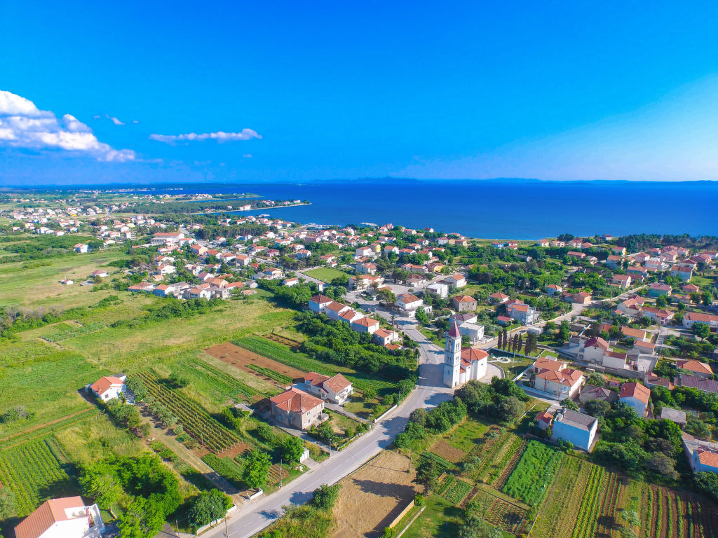 Dreifamilienhaus "Kampanel". Im Ortszentrum von Privlaka, sonnige Lage, 400 m vom Meer, 400 m vom Strand. Zur Mitbenutzung: Grundstück 550 m2 (eingezäunt). Grill. Im Hause: Internetzugang. Parkplatz beim Haus auf dem Grundstück. Einkaufsgeschäft 30 m, Restaurant 200 m, Sandstrand, Kieselstrand 400 m. Tennis 8 km. Nahe gelegene Sehenswürdigkeiten: Aquapark 8 km.