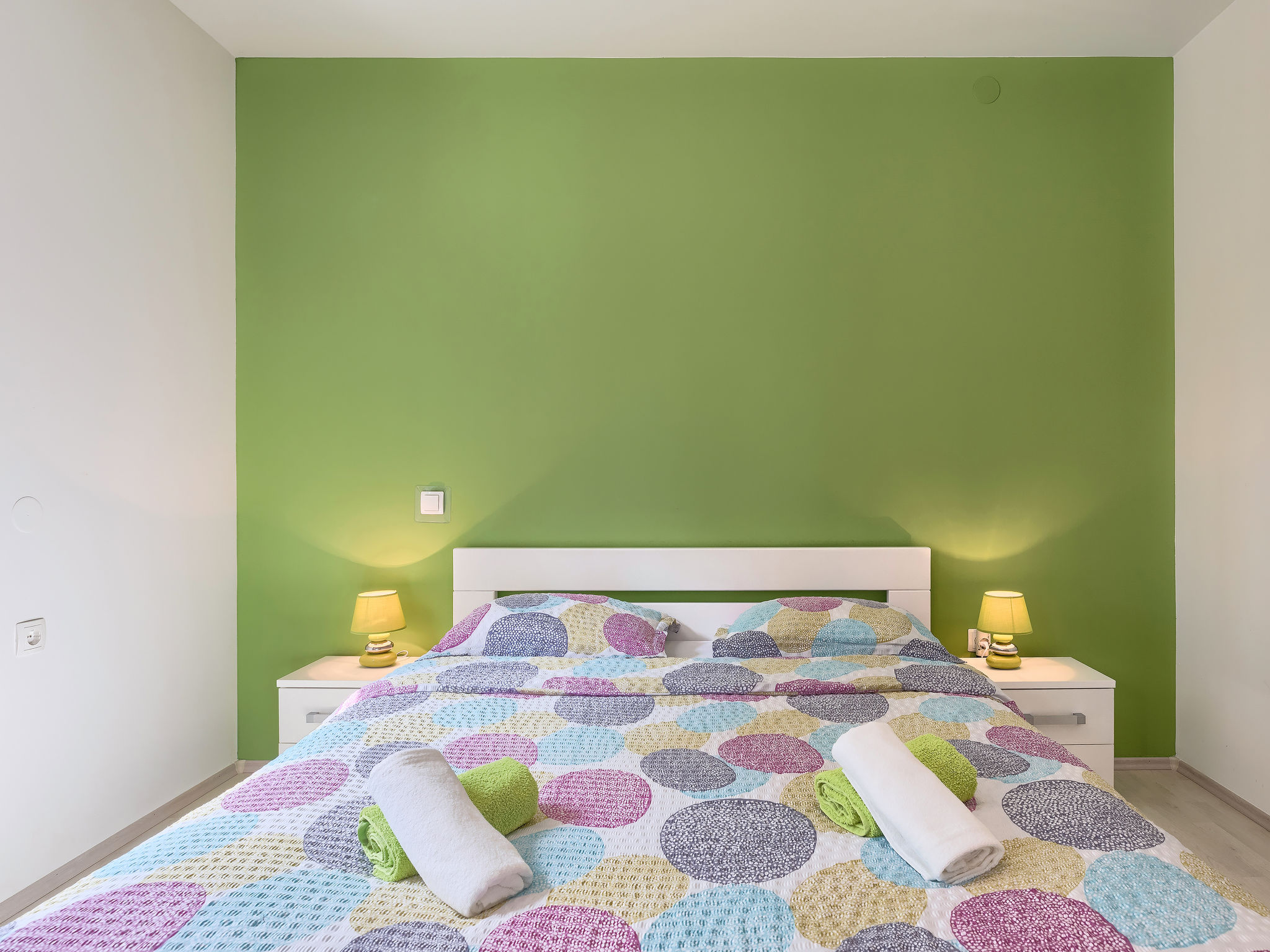 4-Zimmer-Haus 102 m2. Schön und gemütlich eingerichtet: Wohn-/Esszimmer 36 m2 mit Sat-TV (Flachbildschirm), Klimaanlage. Ausgang zur Terrasse. Eingang mit Klimaanlage. 1 Zimmer mit 1 franz. Bett (160 cm, Länge 200 cm). 1 Zimmer mit 1 franz. Bett (180 cm, Länge 200 cm). 1 Zimmer mit 1 Bett (90 cm, Länge 200 cm). Offene Küche (Backofen, Geschirrspüler, 2 Induktionskochplatten, 2 Flammen, Toaster, Wasserkocher, Tiefkühler, elektrische Kaffeemaschine). Dusche/WC. Terrasse 15 m2, überdacht. Terrassenmöbel, Liegestühle. Sicht auf das Schwimmbad und den Garten. Zur Verfügung: Bügeleisen, Haartrockner. Internet (Wireless LAN, gratis).