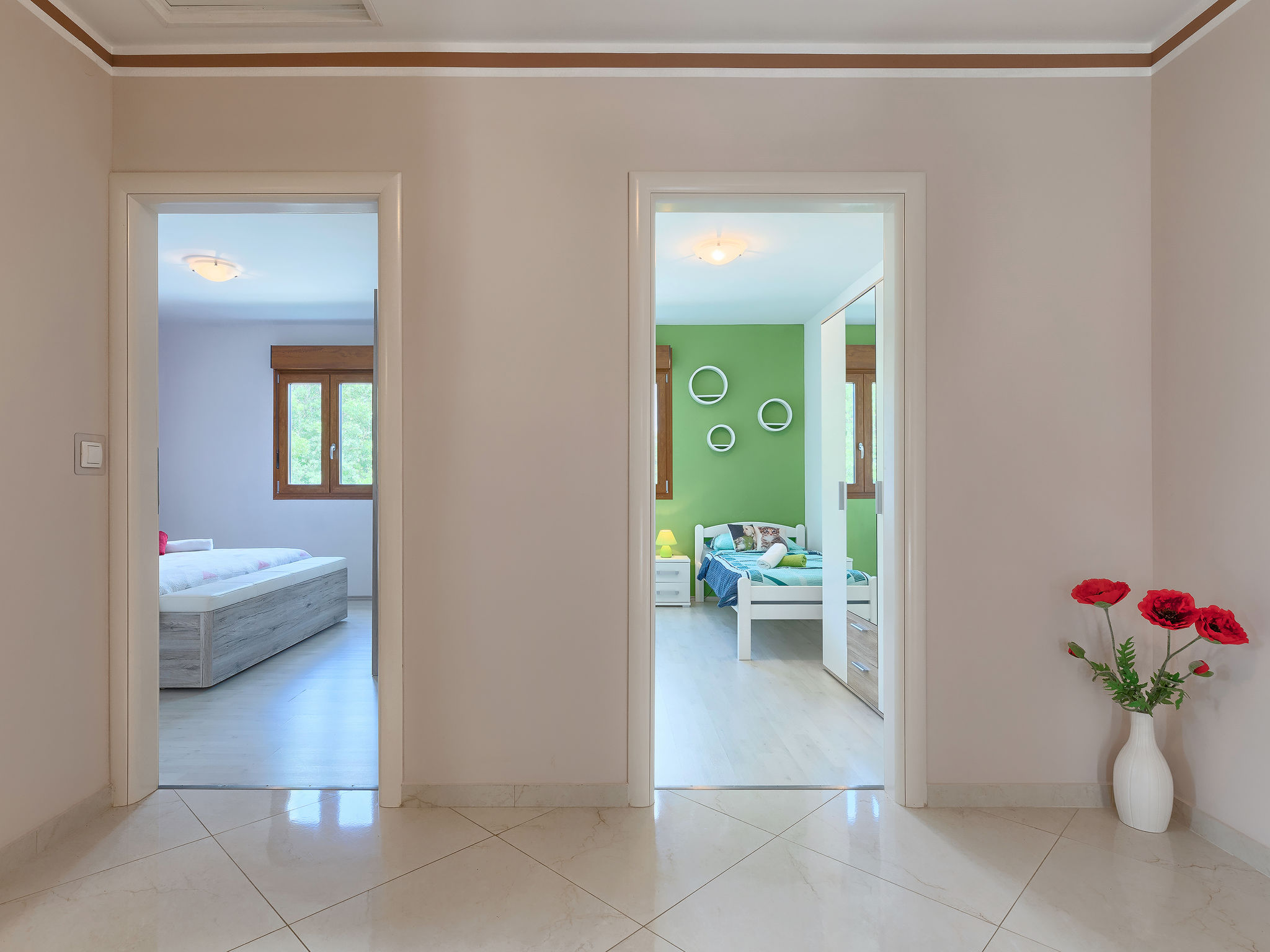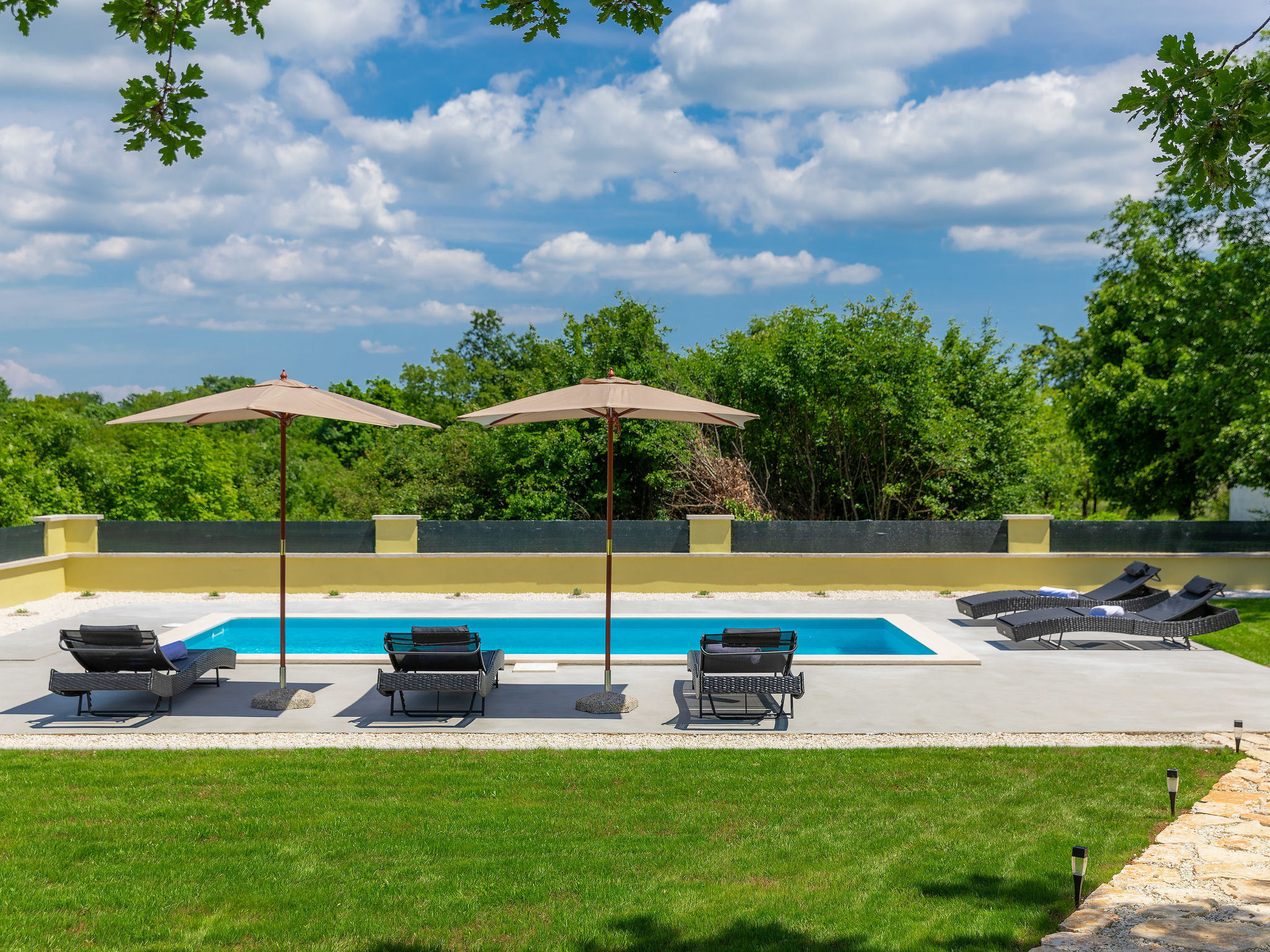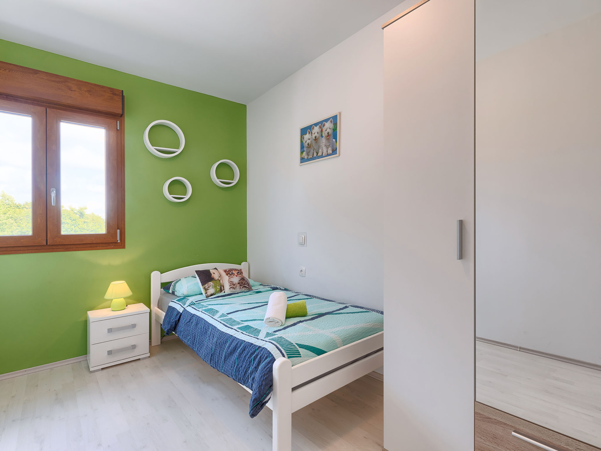 Schönes Einfamilienhaus "Villa Aniva". Im Weiler Matiki, 2 km vom Zentrum von Žminj, sonnige Lage, 26 km vom Meer. Zur Alleinbenutzung: Grundstück 1'500 m2, Garten mit Rasen und Pflanzen, Schwimmbad eckig (7 x 3 m, 150 cm tief, 22.05.-30.09.) mit Innentreppe. Aussendusche, Grill, Kinderspielplatz (Schaukel). Im Hause: Internetzugang, Trampolin, Waschmaschine. Zufahrt bis zum Haus (100 m Naturweg). Parkplatz (für 3 Autos) beim Haus auf dem Grundstück. Einkaufsgeschäft 2 km, Supermarkt 2 km, Restaurant 3.5 km, Kieselstrand 26 km. Reitstall 10 km, Wanderwege ab Haus 100 m, Radweg 150 m. Nahe gelegene Sehenswürdigkeiten: adventure park 20 km, zip line 15 km.