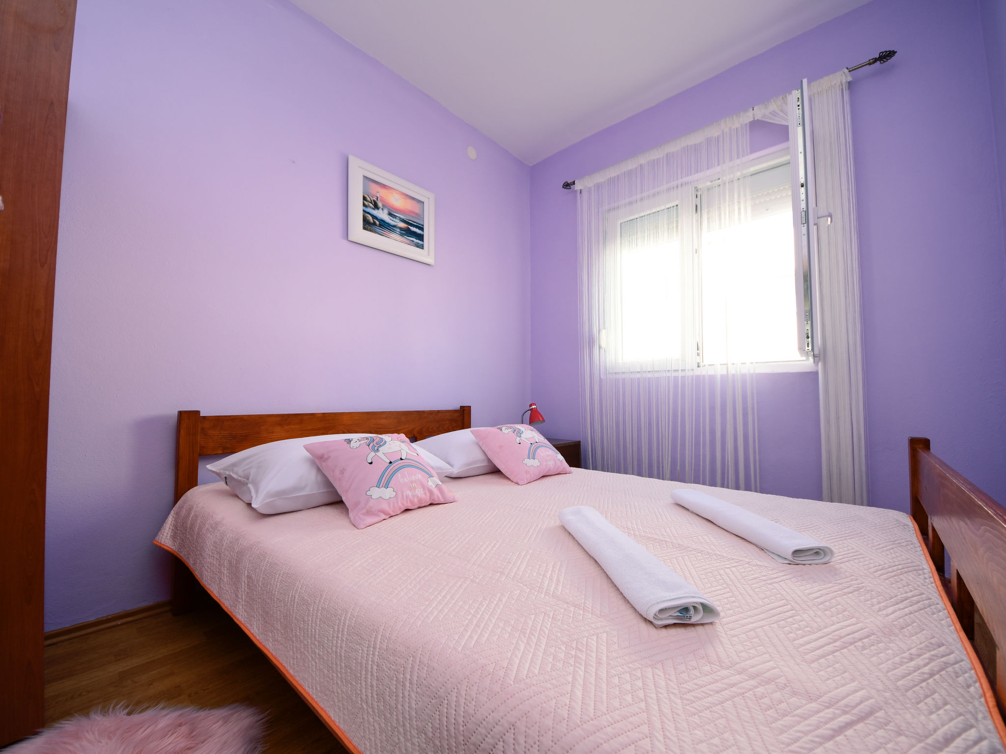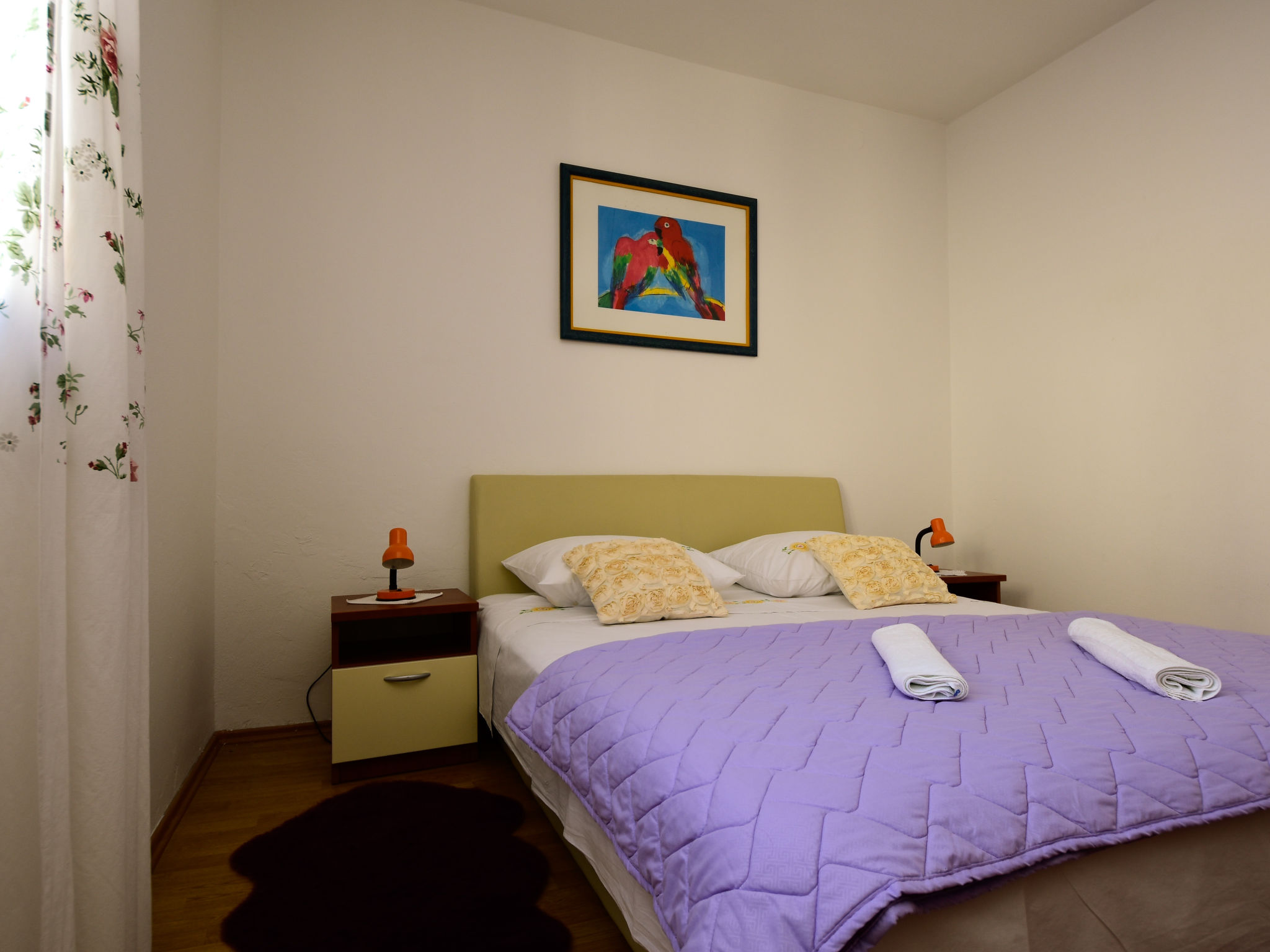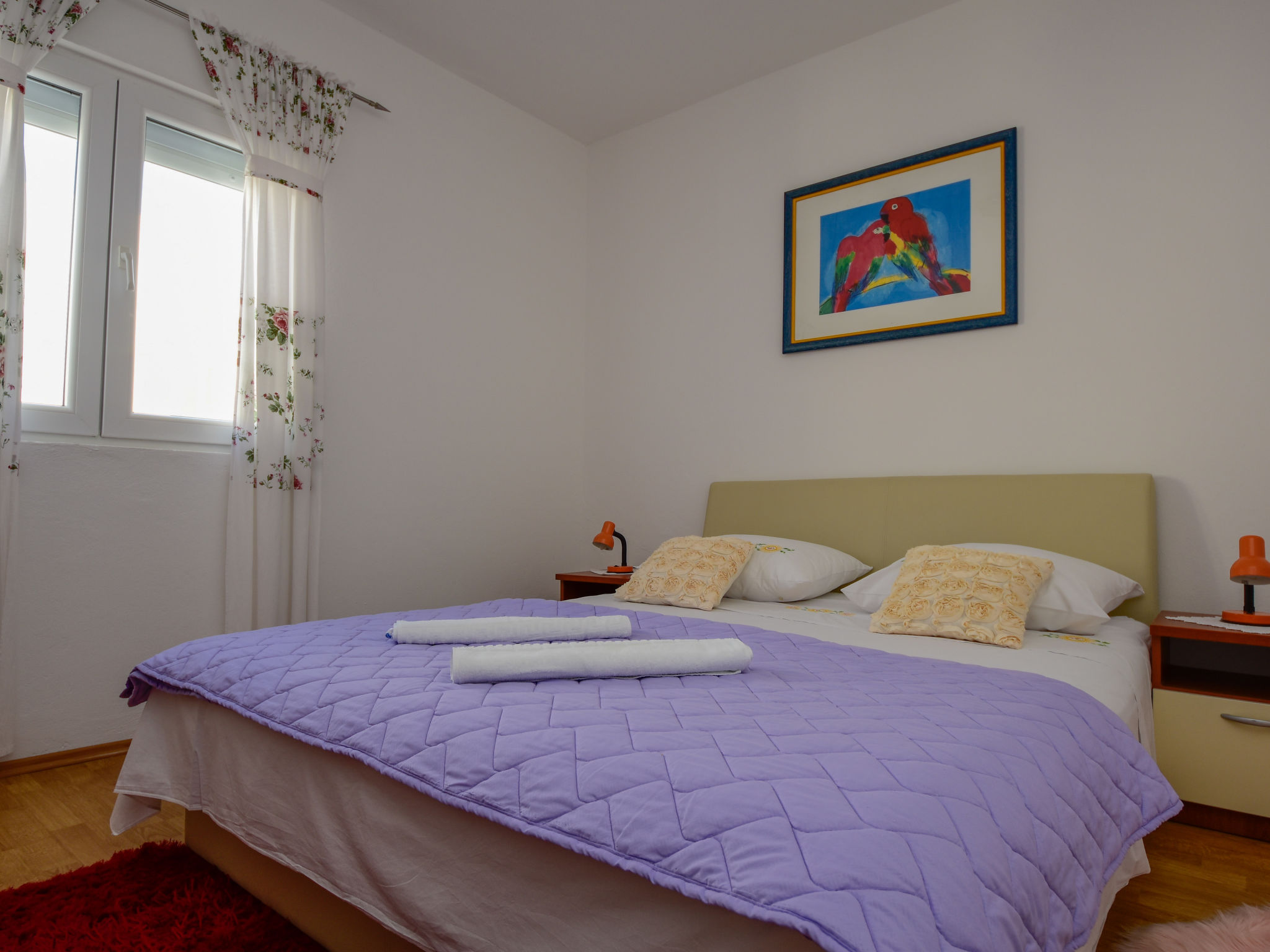 Einfamilienhaus "Ana". Ruhige, sonnige, erhöhte Lage, 130 m vom Meer, 130 m vom Strand. Zur Mitbenutzung: Grundstück 1'000 m2, Garten mit Pflanzen und Bäumen. Zur Alleinbenutzung: Gartenmöbel, Grill. Im Hause: Internetzugang, Waschmaschine. Parkplatz beim Haus auf dem Grundstück. Einkaufsgeschäft 200 m, Restaurant 400 m, Felsstrand 130 m. Bitte beachten: Das 1. Stockwerk ist geschlossen und nicht bewohnt. Der Besitzer wohnt auf dem gleichen Grundstück.