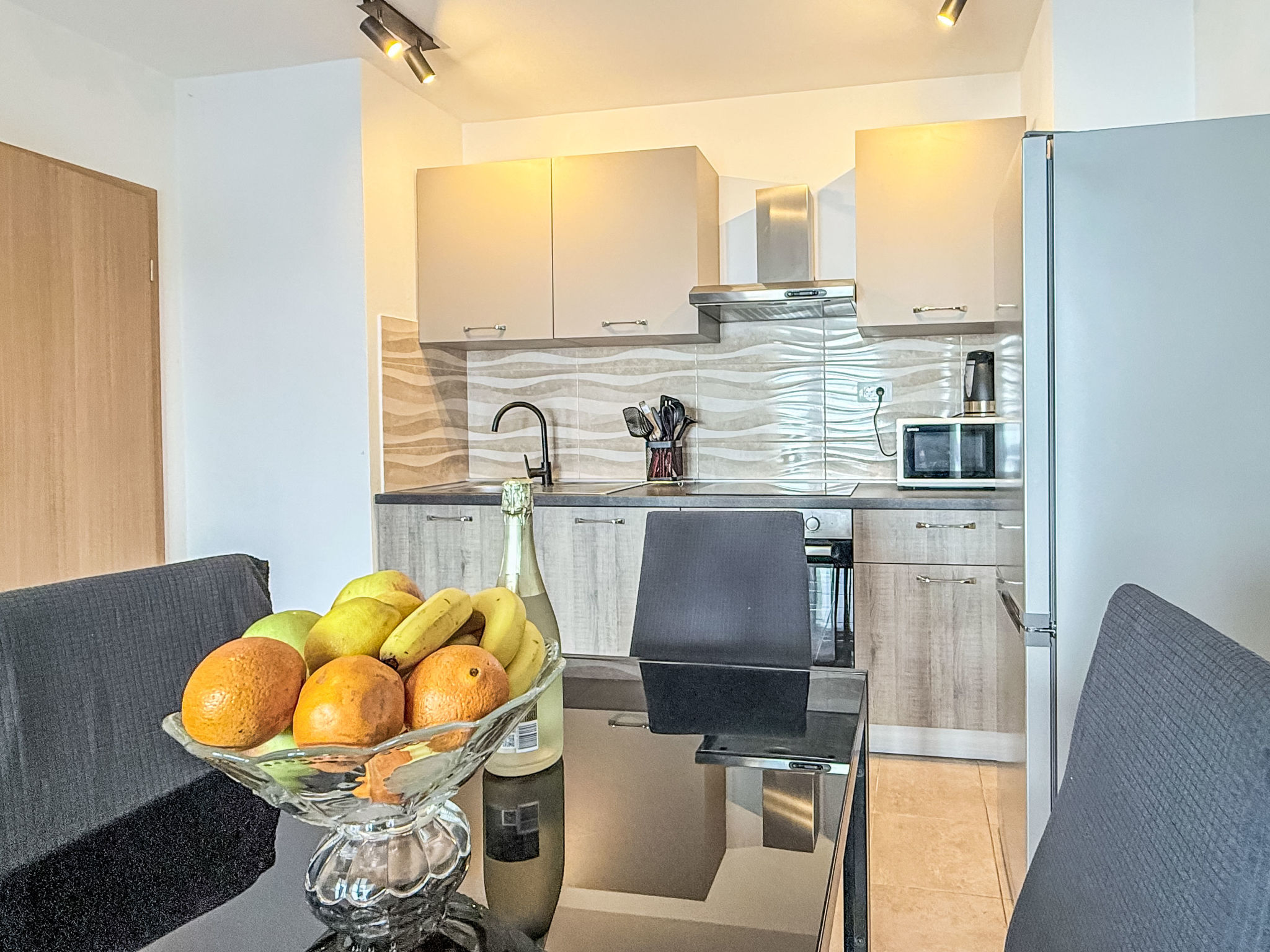 8-Zimmer-Haus 140 m2 auf 2 Stockwerken, Südwestlage. Wohn-/Esszimmer mit Sat-TV (Flachbildschirm), Klimaanlage. Ausgang zur Terrasse. 3 Zimmer, jedes Zimmer mit 1 franz. Bett (160 cm, Länge 200 cm). Offene Küche (4 Glaskeramikherd Platten, Mikrowelle, Tiefkühler, elektrische Kaffeemaschine). 2 Duschen/WC. Obergeschoss: (Aussentreppe) Wohn-/Esszimmer mit Sat-TV (Flachbildschirm), Klimaanlage. Ausgang zur Terrasse. 1 Zimmer mit 1 franz. Bett (160 cm, Länge 200 cm). 2 Zimmer, jedes Zimmer mit 2 Betten (90 cm, Länge 200 cm). Offene Küche (2 Glaskeramikherd Platten, Mikrowelle, Tiefkühler, elektrische Kaffeemaschine). Dusche/Bidet/WC. 2 Terrassen 38 m2, überdacht. Terrassenmöbel, Liegestühle. Sicht auf das Meer und das Schwimmbad. Zur Verfügung: Haartrockner. Internet (Wireless LAN, gratis).