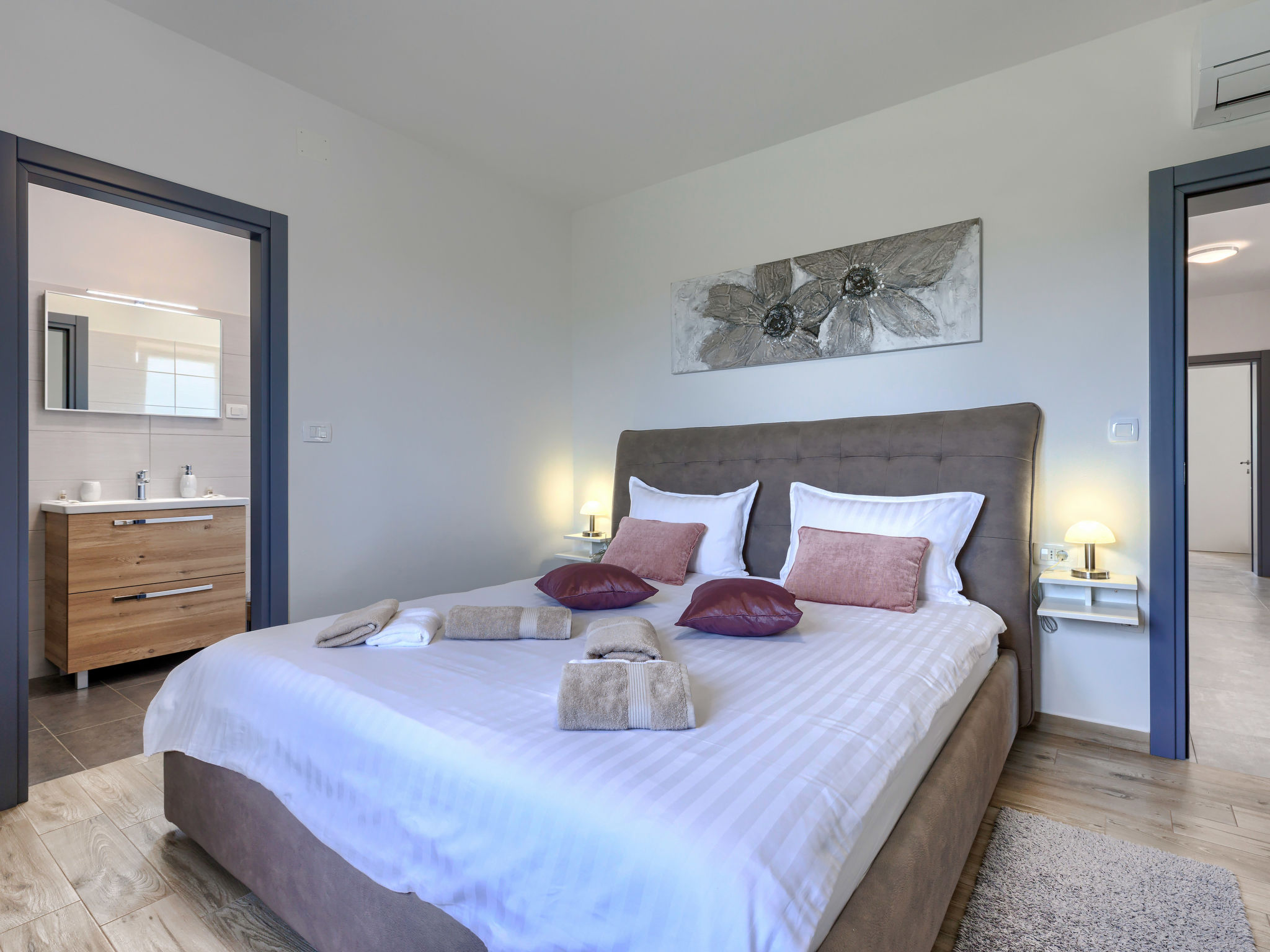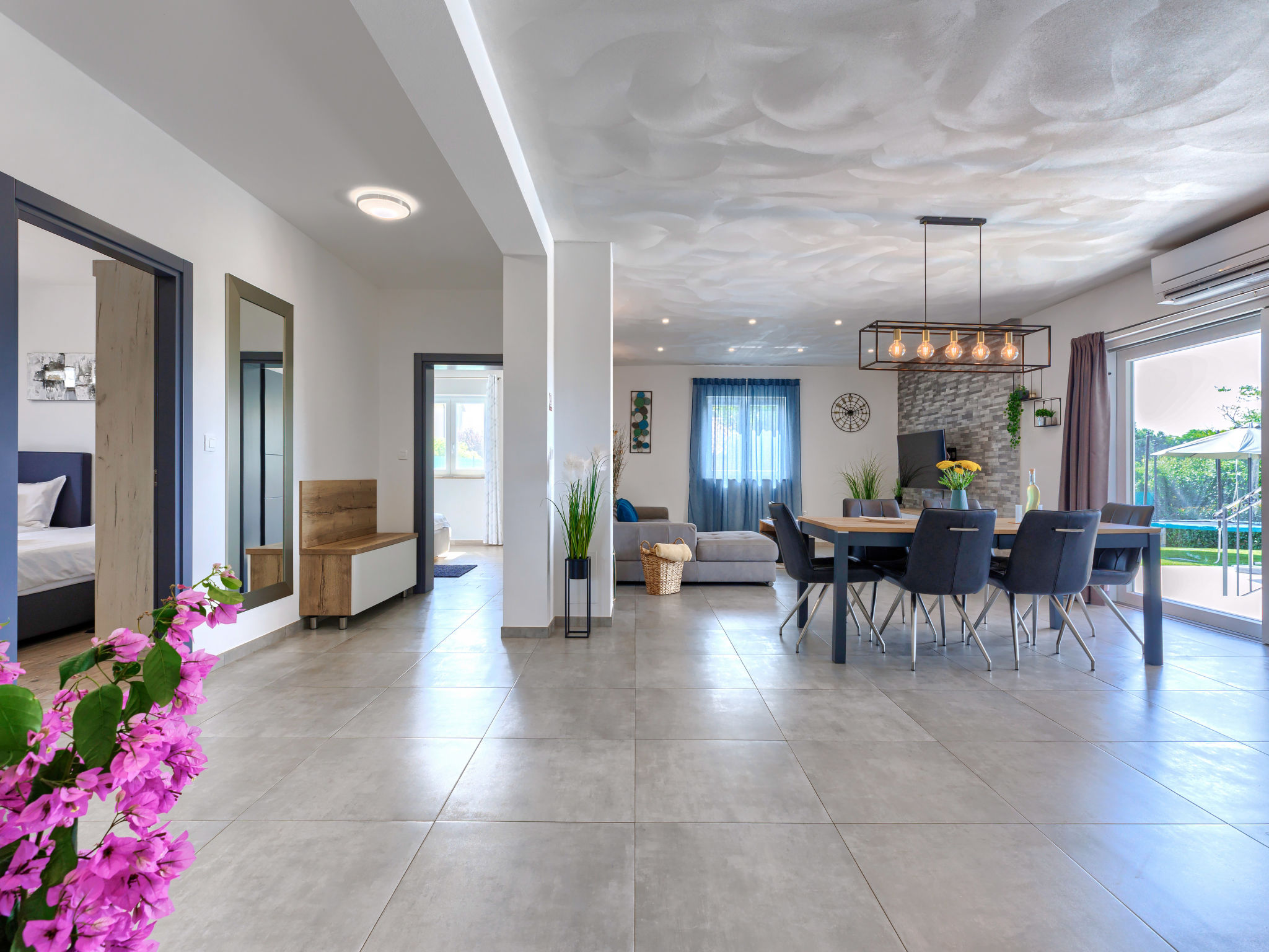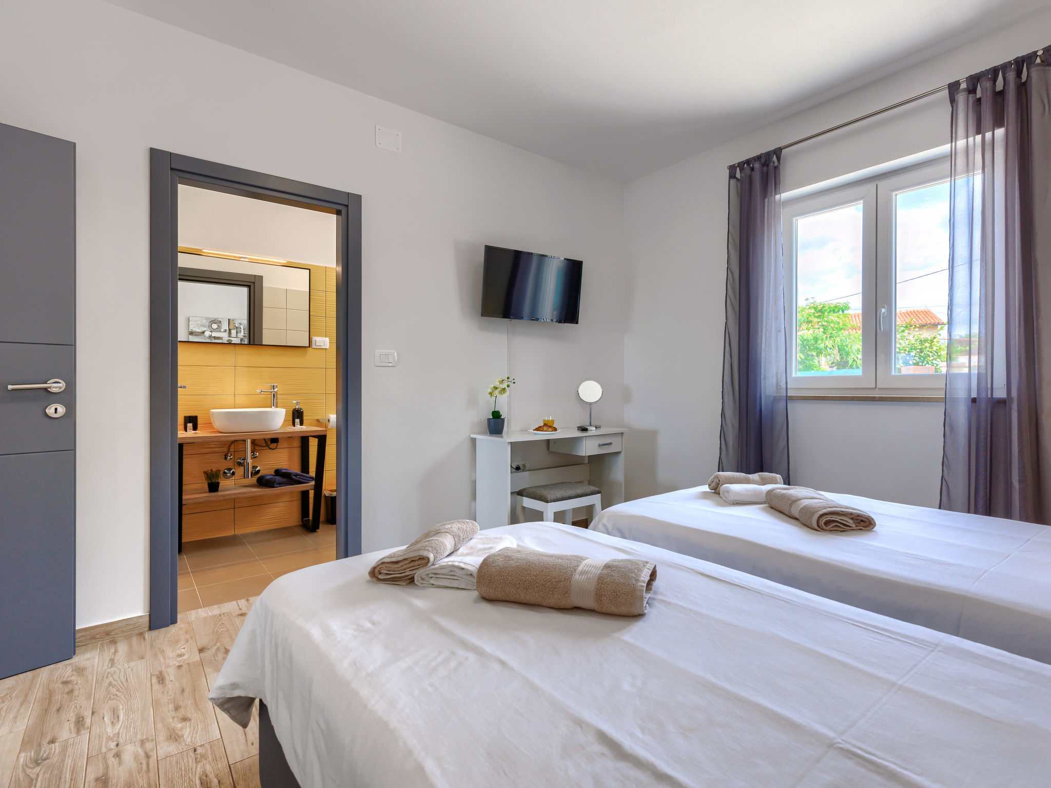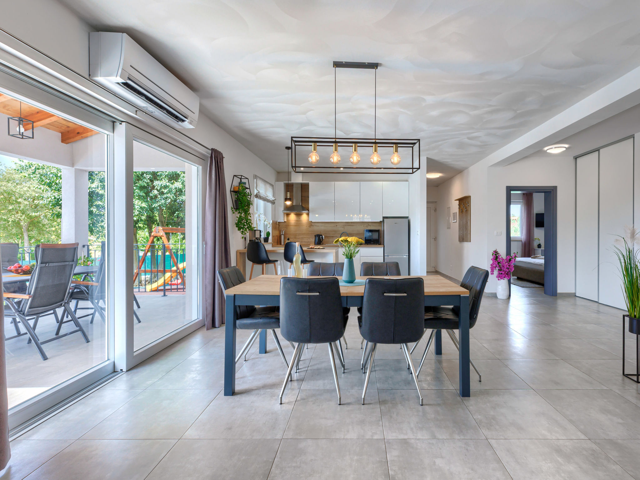 Schönes Einfamilienhaus "Veli vrt", Baujahr 2020. Im Weiler Kuhari, 2 km vom Zentrum von Žminj, 26 km vom Zentrum von Rovinj, ruhige, sonnige Lage, 26 km vom Meer. Zur Alleinbenutzung: Grundstück 1'000 m2 (eingezäunt), Garten mit Rasen und Pflanzen, Schwimmbad eckig (8 x 4 m, 150 cm tief, 01.04.-31.10.) mit Innentreppe. Aussendusche, Grill, Kinderspielplatz (Schaukel). Im Hause: Internetzugang, Trampolin, Waschmaschine. Parkplatz (für 2 Autos) beim Haus auf dem Grundstück. Supermarkt 1.5 km, Restaurant 2 km, Kieselstrand 26 km. Reitstall 10 km, Wanderwege ab Haus 100 m, Radweg 150 m. Nahe gelegene Sehenswürdigkeiten: adventure park 20 km, zip line 15 km. Bitte beachten: geeignet für Familien. Der Besitzer akzeptiert keine Jugendgruppen.