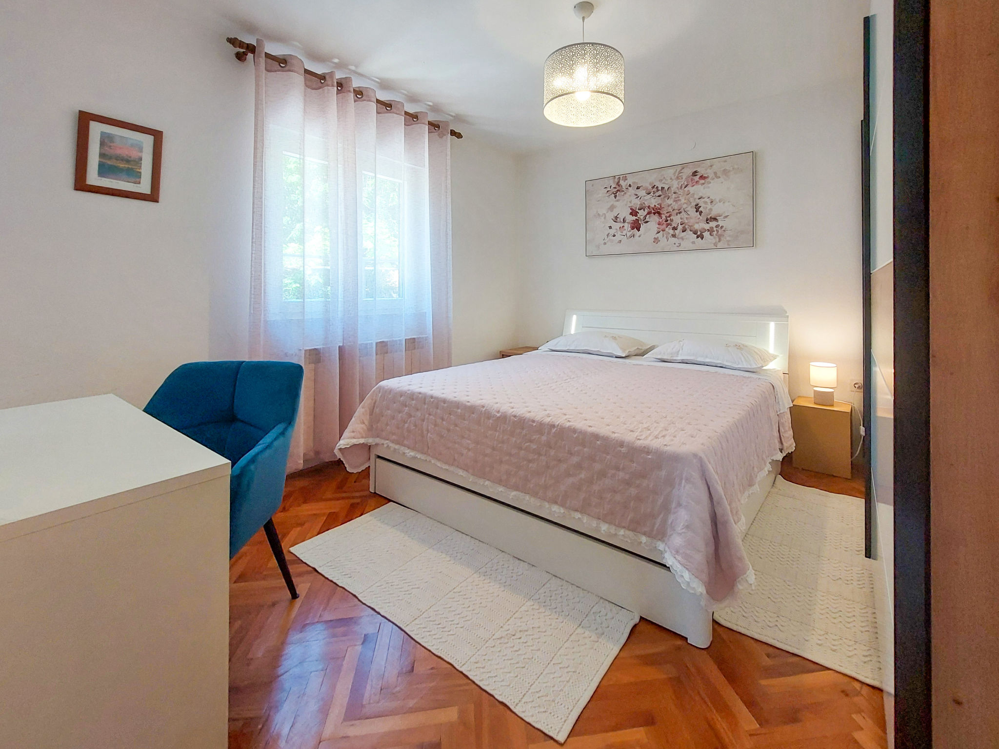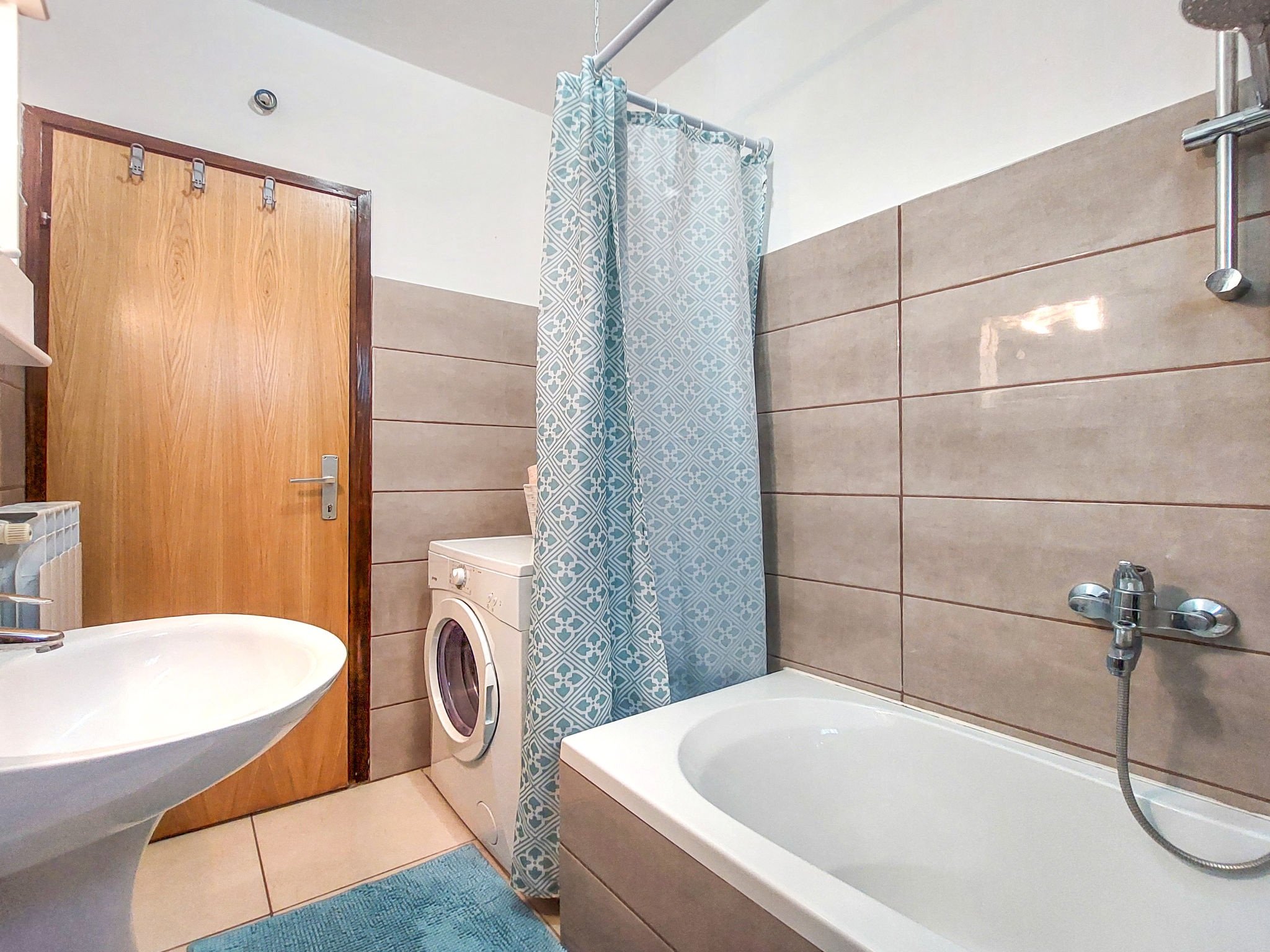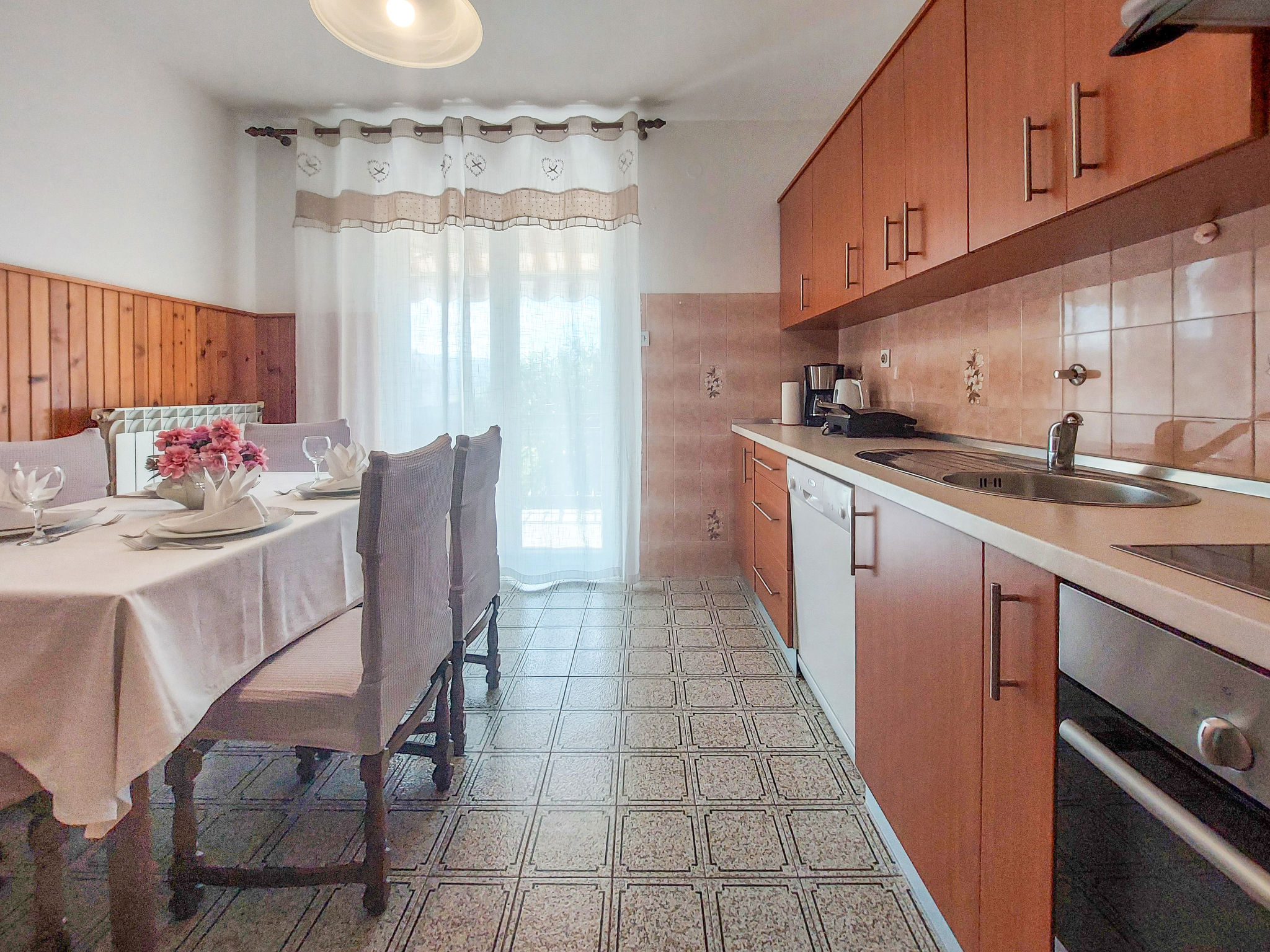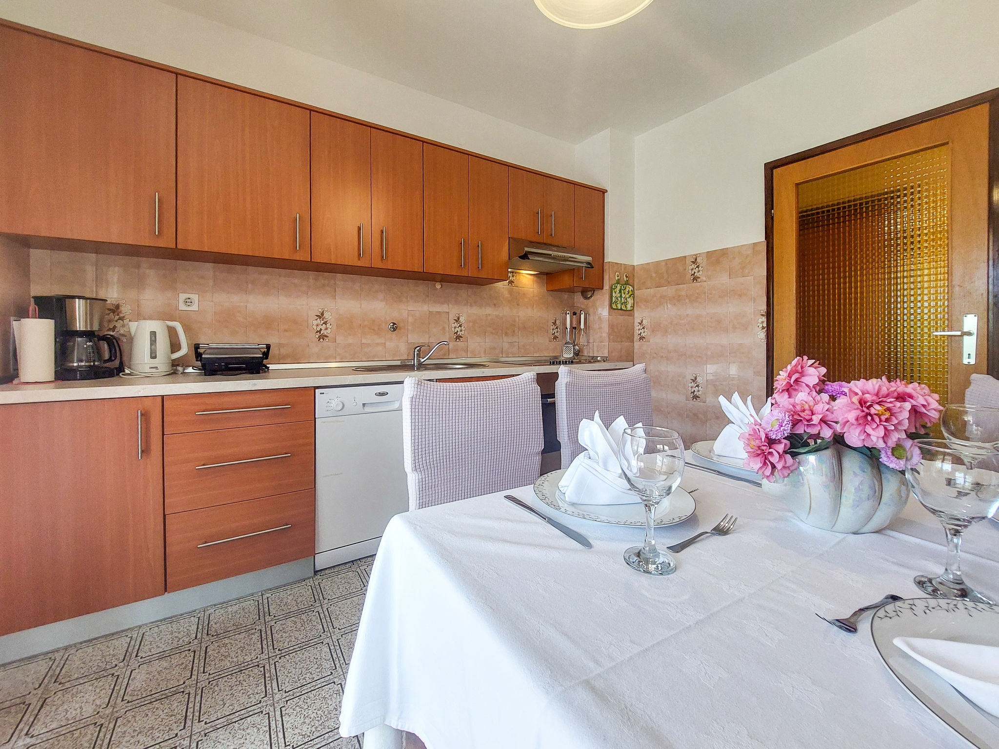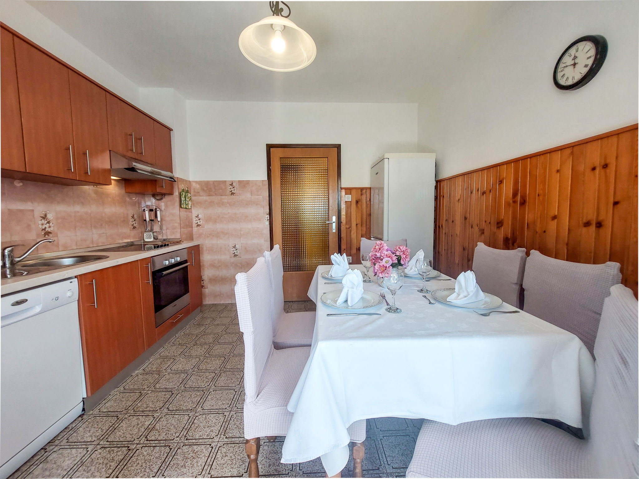 3-Zimmer-Wohnung 70 m2 im 1. Stock. Wohnzimmer mit 1 Diwanbett und Sat-TV. Ausgang zum Balkon. 2 Zimmer, jedes Zimmer mit 1 Doppelbett. Esszimmer. Ausgang zum Balkon. Offene Küche (Backofen, Geschirrspüler, 4 Glaskeramikherd Platten, Toaster, Wasserkocher, Tiefkühler, elektrische Kaffeemaschine). Bad/WC, sep. WC. Klimaanlage (extra). Balkon, Terrasse. Terrassenmöbel, Gartengrill (mobil). Zur Verfügung: Waschmaschine. Internet (Wireless LAN, gratis). Bitte beachten: Nichtraucher-Unterkunft. Eigener Eingang.