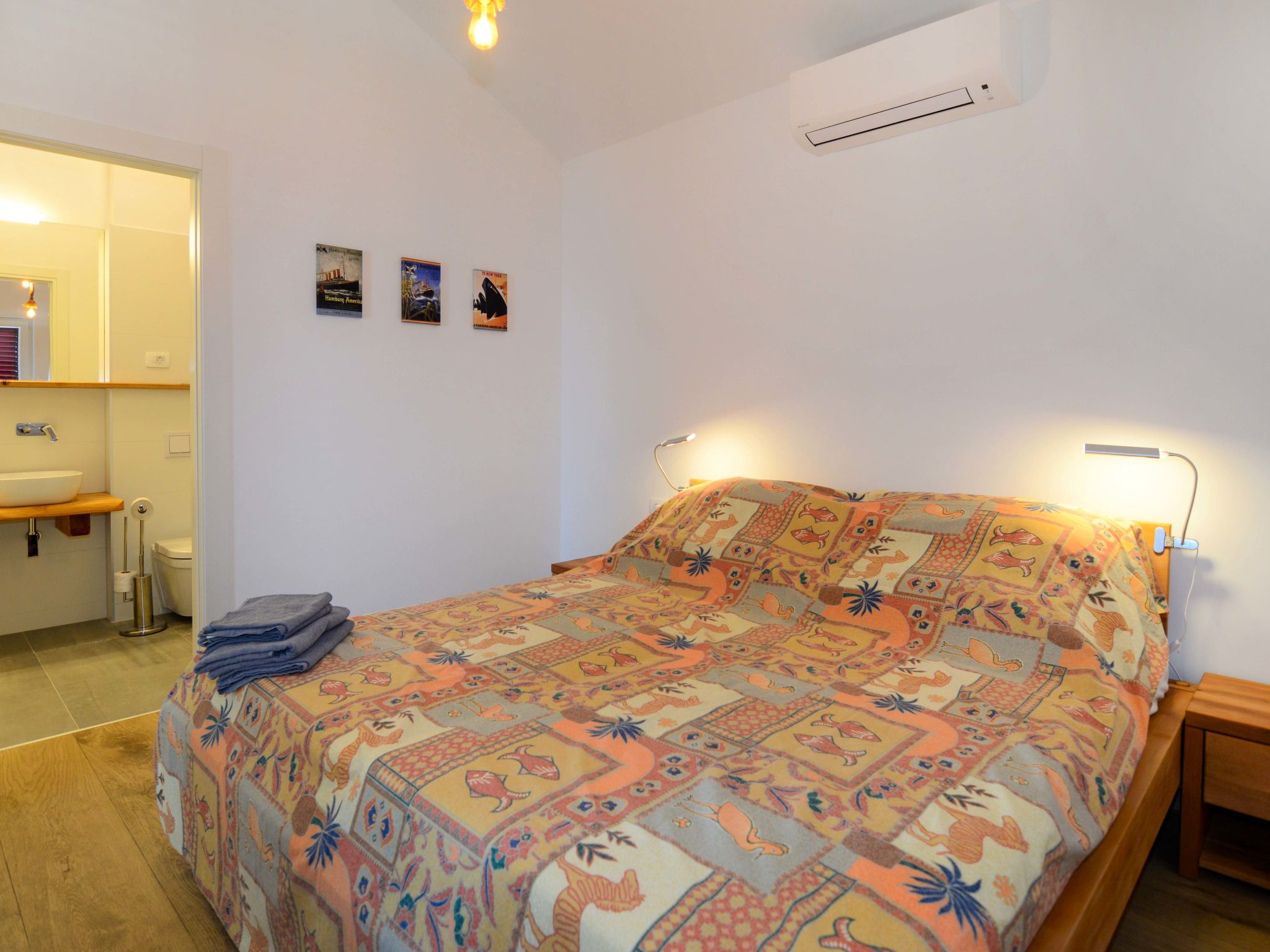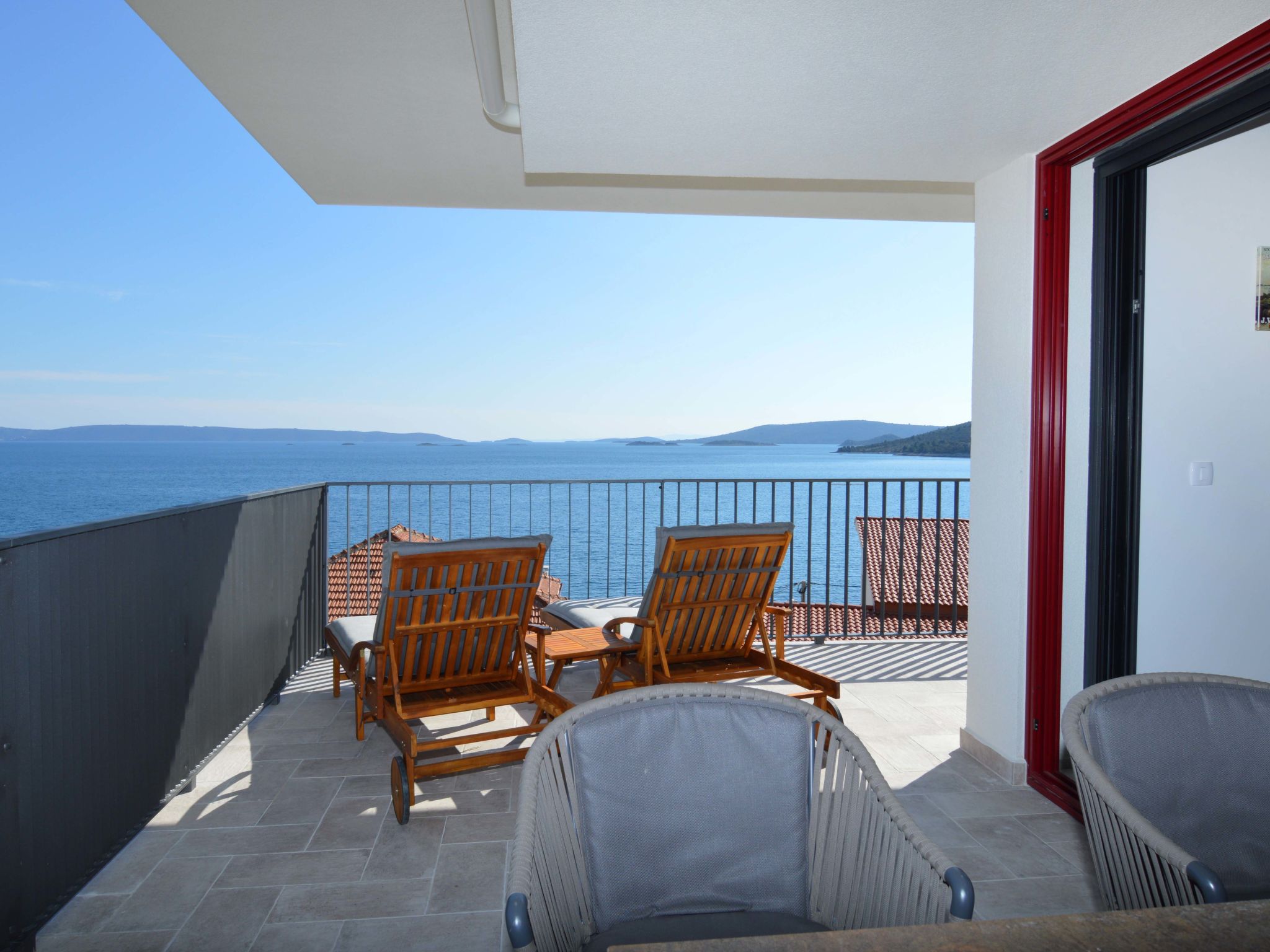 "Viva-by the Sea-Penthouse", 3-Zimmer-Wohnung 78 m2 im 2. Stock. Modern eingerichtet: Wohn-/Esszimmer mit Sat-TV (Flachbildschirm), Klimaanlage. Ausgang zum Balkon. 1 Zimmer mit 1 franz. Bett (180 cm, Länge 200 cm), Dusche/WC, Doppelwaschbecken und Klimaanlage. Ausgang zum Balkon. 1 Zimmer mit 2 Betten (90 cm, Länge 200 cm), Dusche/WC, Doppelwaschbecken und Klimaanlage. Ausgang zum Balkon. Offene Küche (Backofen, Geschirrspüler, 4 Glaskeramikherd Platten, Toaster, Wasserkocher, Tiefkühler, elektrische Kaffeemaschine). Klimaanlage, Warmluftheizung. Balkon 30 m2. Balkonmöbel. Herrliche Panoramasicht auf das Meer. Zur Verfügung: Fliegengitter. Internet (Wireless LAN, gratis). Bitte beachten: Nichtraucher-Haus. Eigener Eingang.