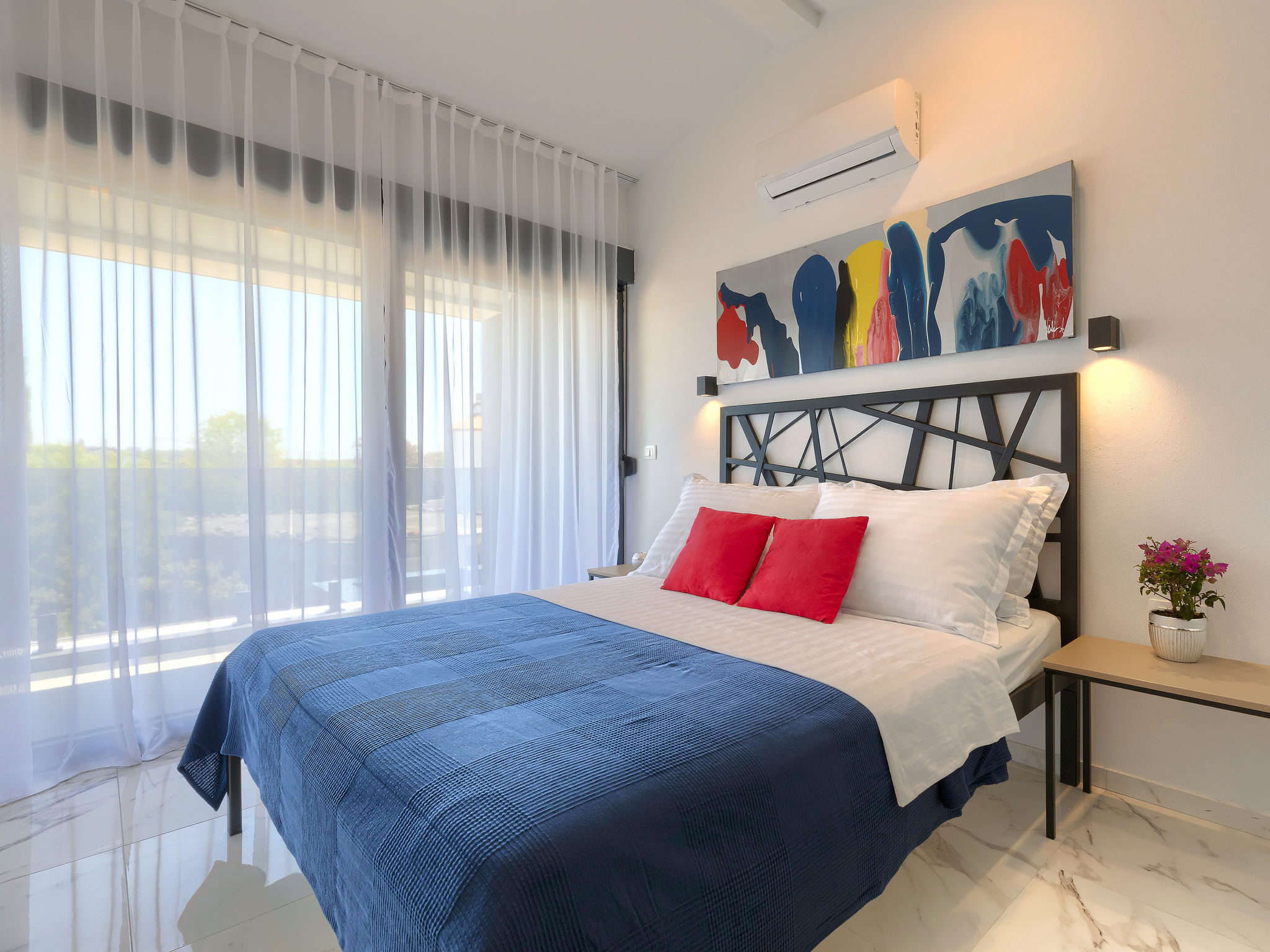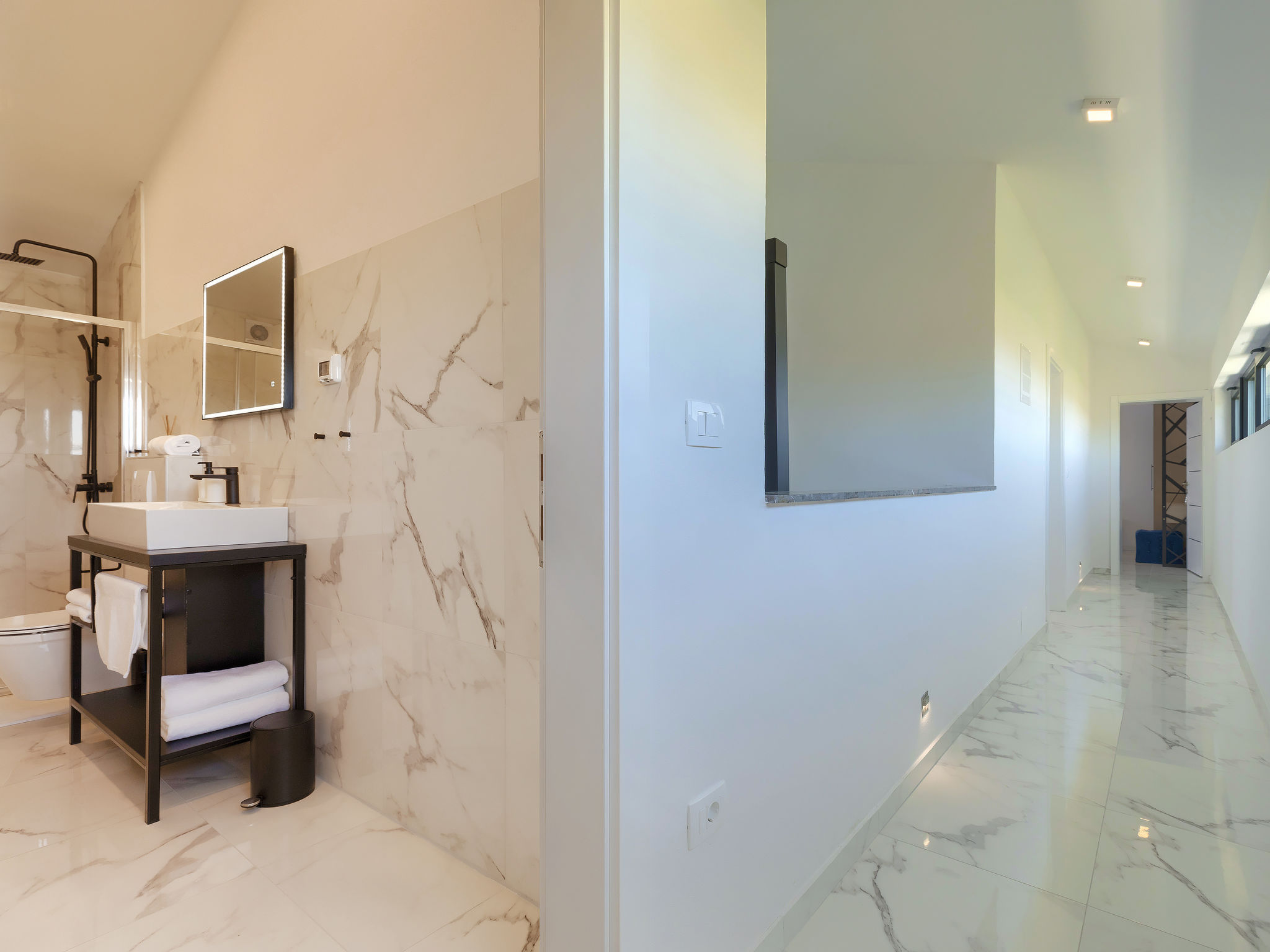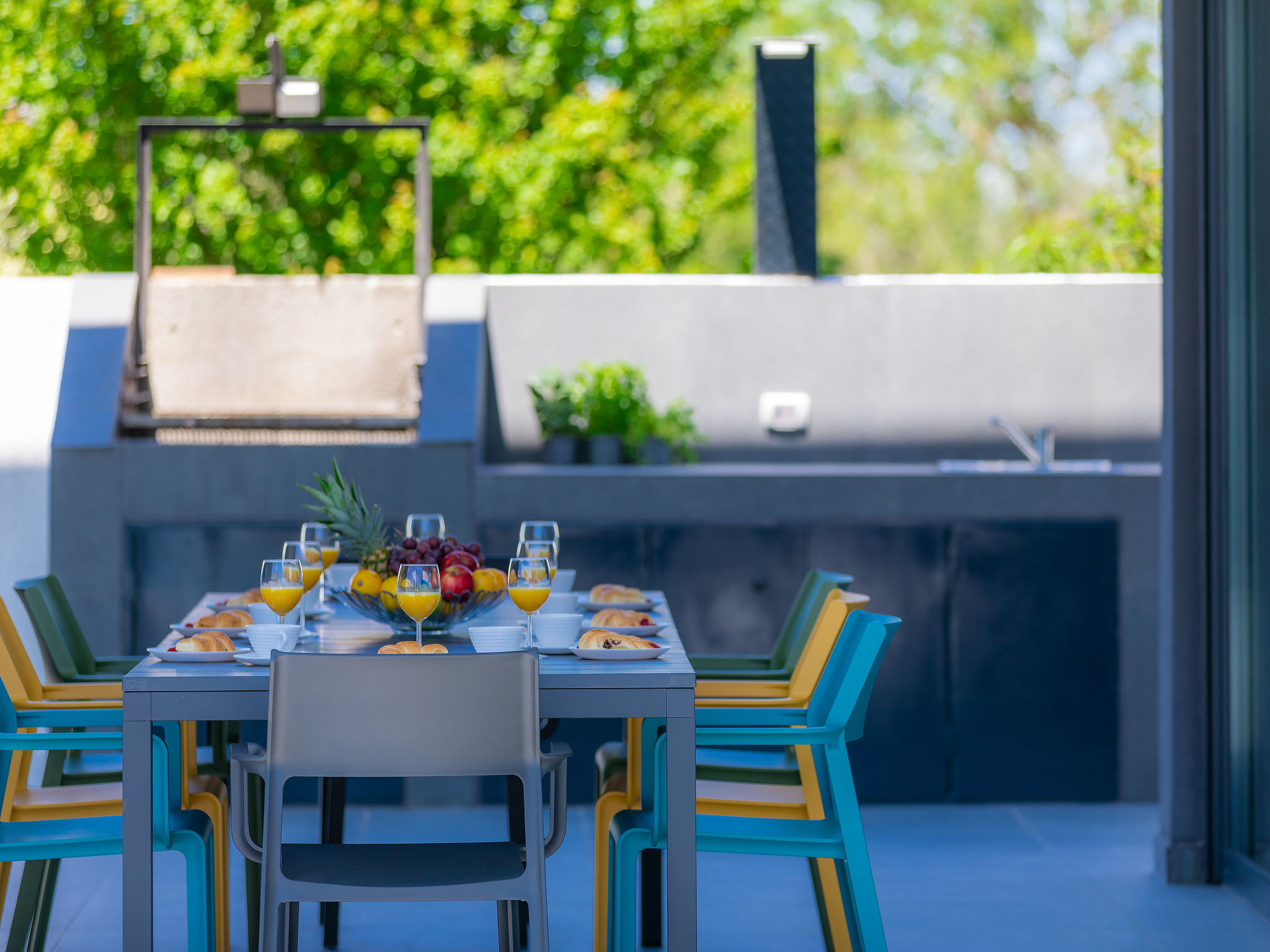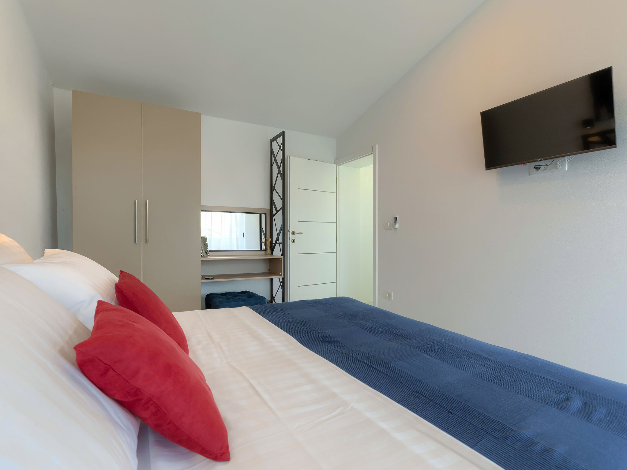 4-Zimmer-Villa 150 m2 auf 2 Stockwerken. Schön und gemütlich eingerichtet: Wohn-/Esszimmer 50 m2 mit Sat-TV und Klimaanlage. Ausgang zur Terrasse, zum Schwimmbad. Offene Küche (Backofen, Geschirrspüler, 2 Glaskeramikherd Platten, 2 Flammen, Wasserkocher, Mikrowelle, Tiefkühler, elektrische Kaffeemaschine). Dusche/WC. Obergeschoss: 1 Zimmer mit 1 franz. Bett (160 cm, Länge 200 cm), Sat-TV und Klimaanlage. Ausgang zur Terrasse. 1 Zimmer mit begehbarer Kleiderschrank mit 1 franz. Bett (160 cm, Länge 200 cm), Dusche/WC, Sat-TV und Klimaanlage. Ausgang zur Terrasse. 1 Zimmer mit 2 Betten (90 cm, Länge 200 cm), Sat-TV und Klimaanlage. Ausgang zur Terrasse. Dusche/WC. Warmluftheizung. Terrasse 4 m2, Terrasse 9 m2. Terrassenmöbel, Liegestühle. Sicht auf das Schwimmbad. Zur Verfügung: Safe, Kinderhochstuhl, Babybett, Haartrockner. Internet (Wireless LAN, gratis). 1 kleines Haustier/Hund erlaubt.