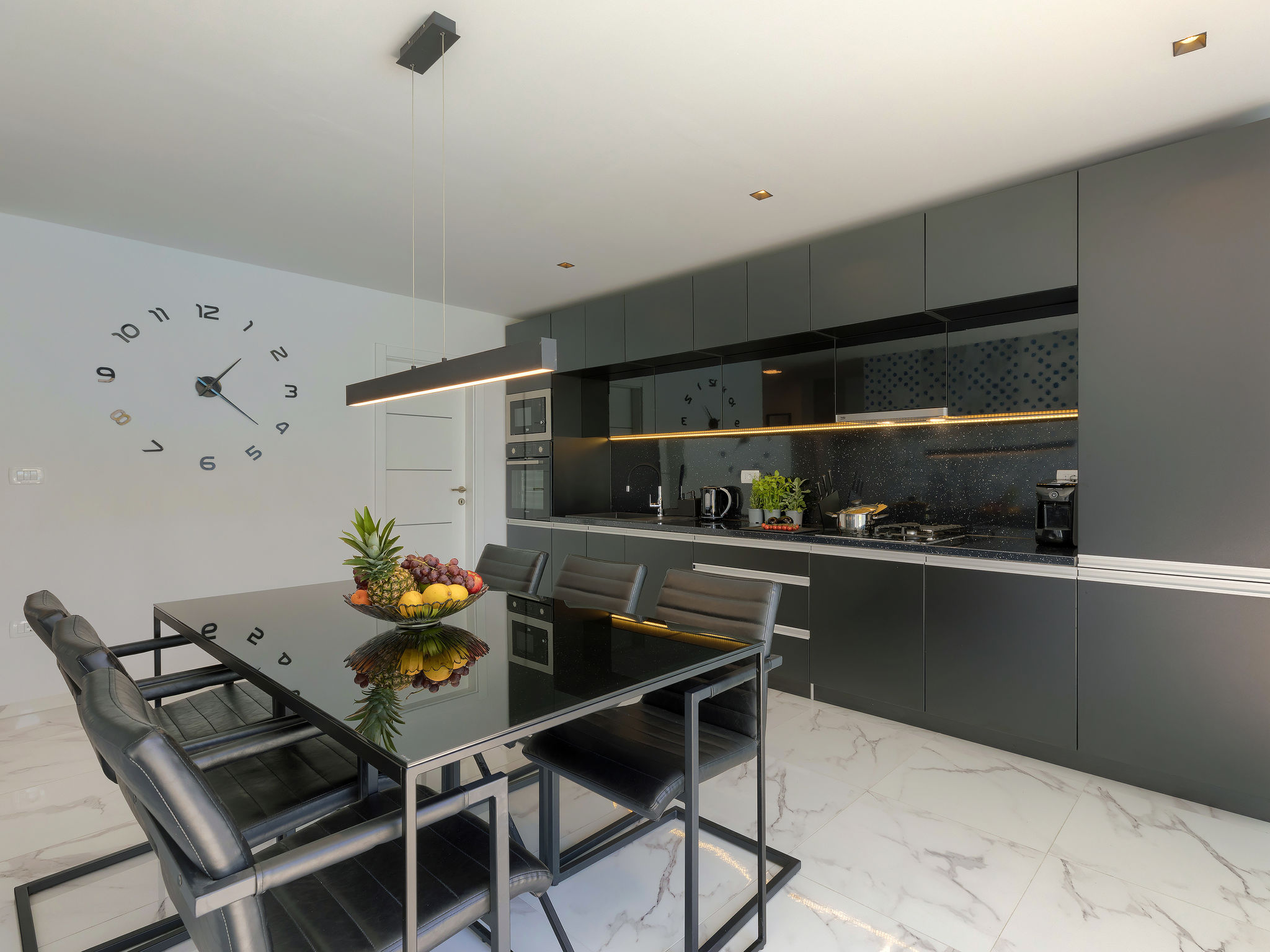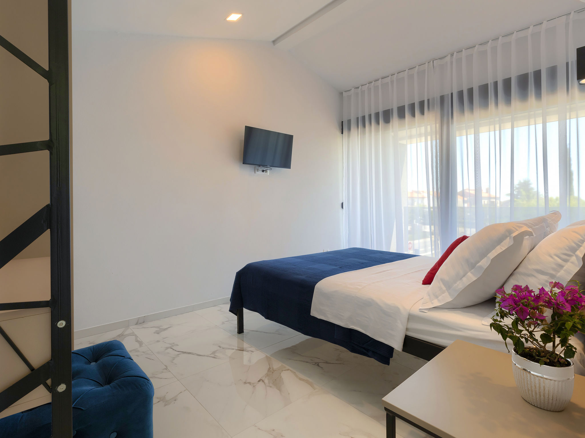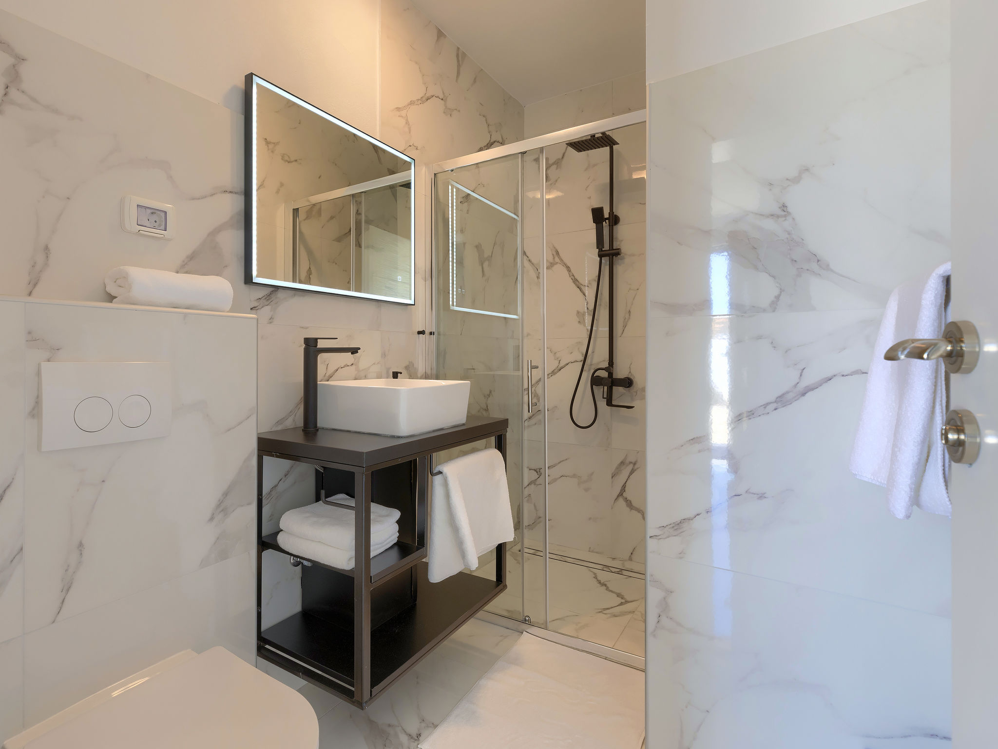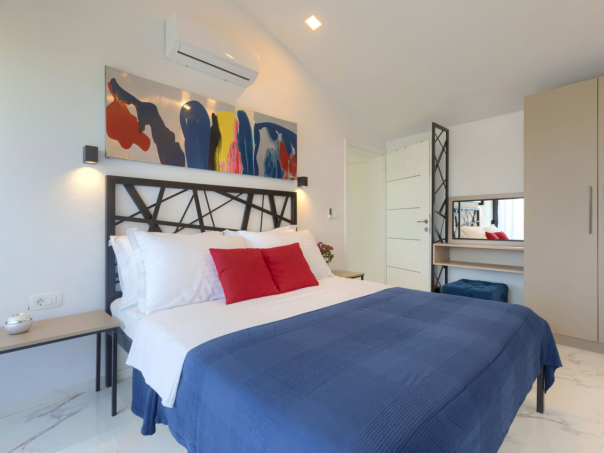 4-Zimmer-Villa 150 m2 auf 2 Stockwerken. Schön und gemütlich eingerichtet: Wohn-/Esszimmer 50 m2 mit Sat-TV und Klimaanlage. Ausgang zur Terrasse, zum Schwimmbad. Offene Küche (Backofen, Geschirrspüler, 2 Glaskeramikherd Platten, 2 Flammen, Wasserkocher, Mikrowelle, Tiefkühler, elektrische Kaffeemaschine). Dusche/WC. Obergeschoss: 1 Zimmer mit 1 franz. Bett (160 cm, Länge 200 cm), Sat-TV und Klimaanlage. Ausgang zur Terrasse. 1 Zimmer mit begehbarer Kleiderschrank mit 1 franz. Bett (160 cm, Länge 200 cm), Dusche/WC, Sat-TV und Klimaanlage. Ausgang zur Terrasse. 1 Zimmer mit 2 Betten (90 cm, Länge 200 cm), Sat-TV und Klimaanlage. Ausgang zur Terrasse. Dusche/WC. Warmluftheizung. Terrasse 4 m2, Terrasse 9 m2. Terrassenmöbel, Liegestühle. Sicht auf das Schwimmbad. Zur Verfügung: Safe, Kinderhochstuhl, Babybett, Haartrockner. Internet (Wireless LAN, gratis). 1 kleines Haustier/Hund erlaubt.