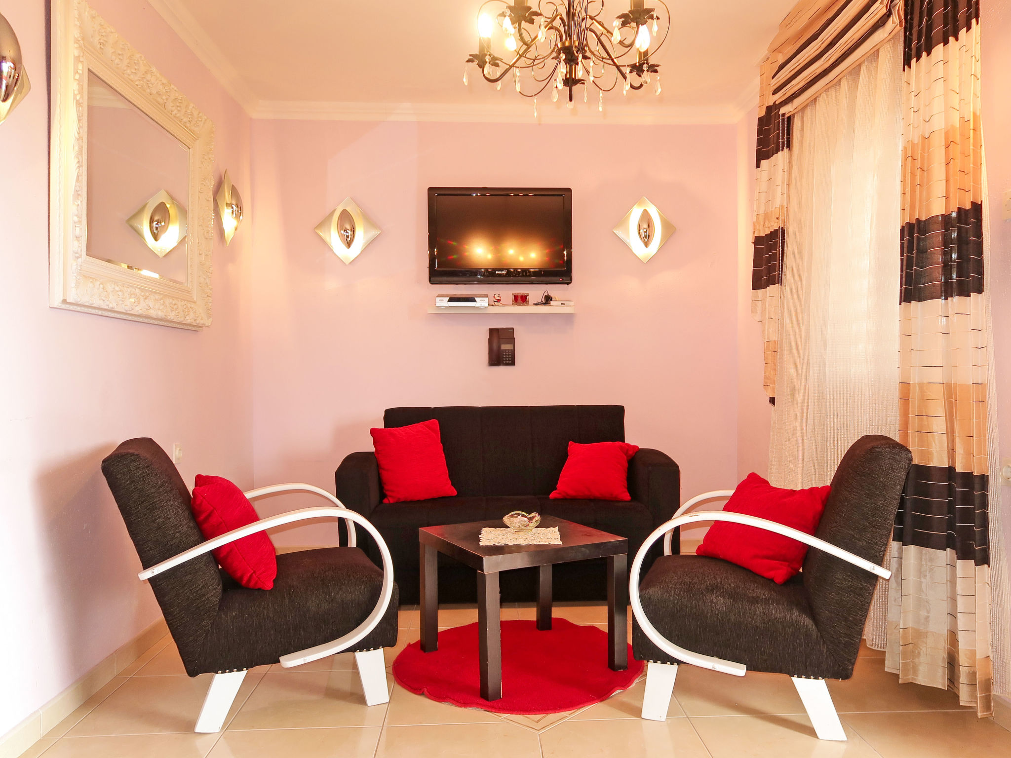 "Dilly (KRK116)", 3-Zimmer-Wohnung 40 m2 im 1. Stock. Wohn-/Esszimmer mit 1 Diwanbett und Sat-TV. Ausgang zum Balkon. Eingang mit Klimaanlage. 1 Zimmer mit 1 Doppelbett. 1 Zimmer mit 2 Betten. Offene Küche (Backofen, Geschirrspüler, Gasherd, 4 Flammen, Toaster, Wasserkocher, Mikrowelle, Tiefkühler, elektrische Kaffeemaschine). Dusche/WC. Balkon 15 m2. Balkonmöbel. Sicht auf das Meer. Zur Verfügung: Waschmaschine. Internet (Wireless LAN, gratis). Bitte beachten: Nichtraucher-Haus. Max. Belegung: 4 Erwachsene, 1 Kind bis 12 Jahre.