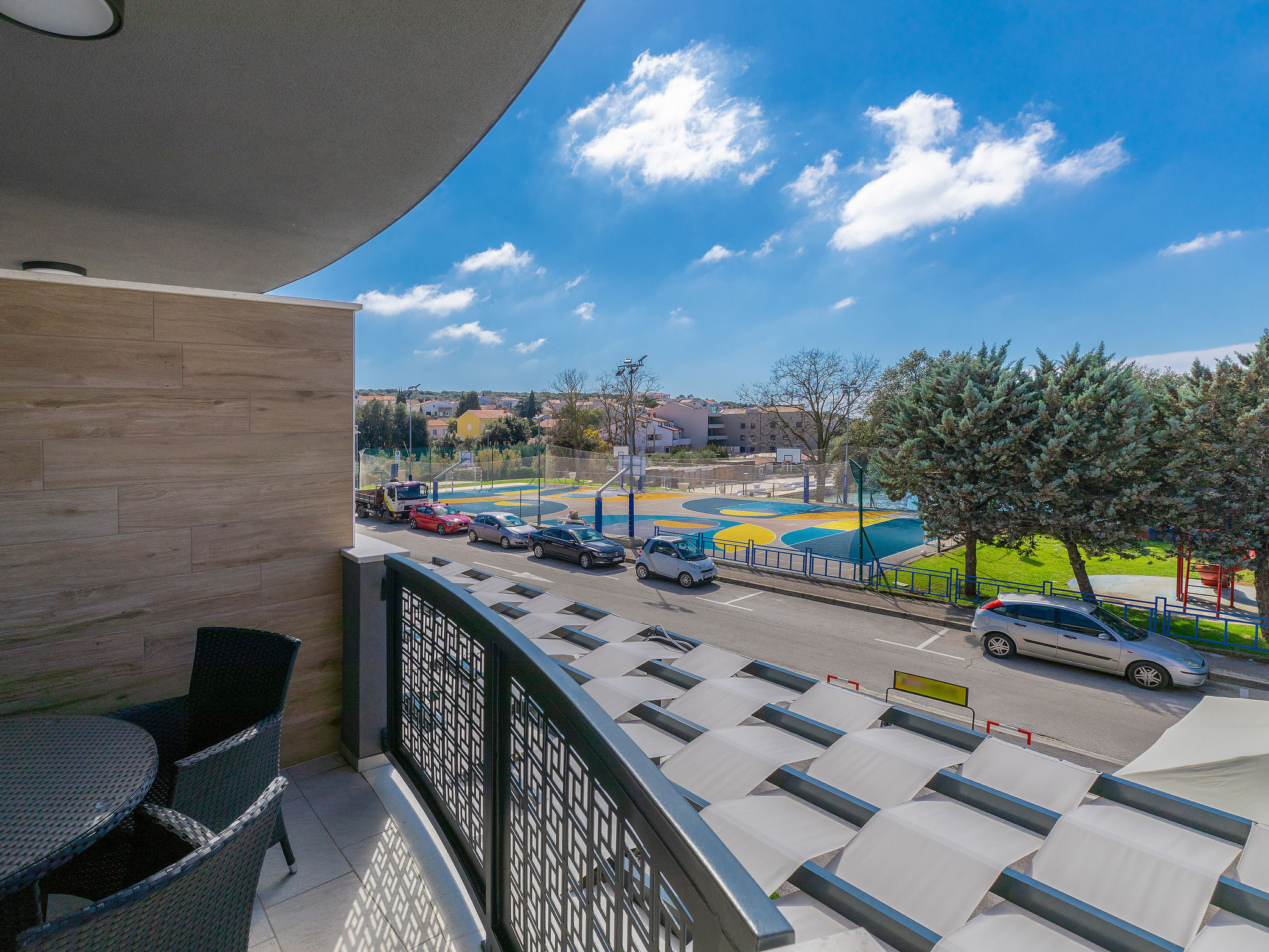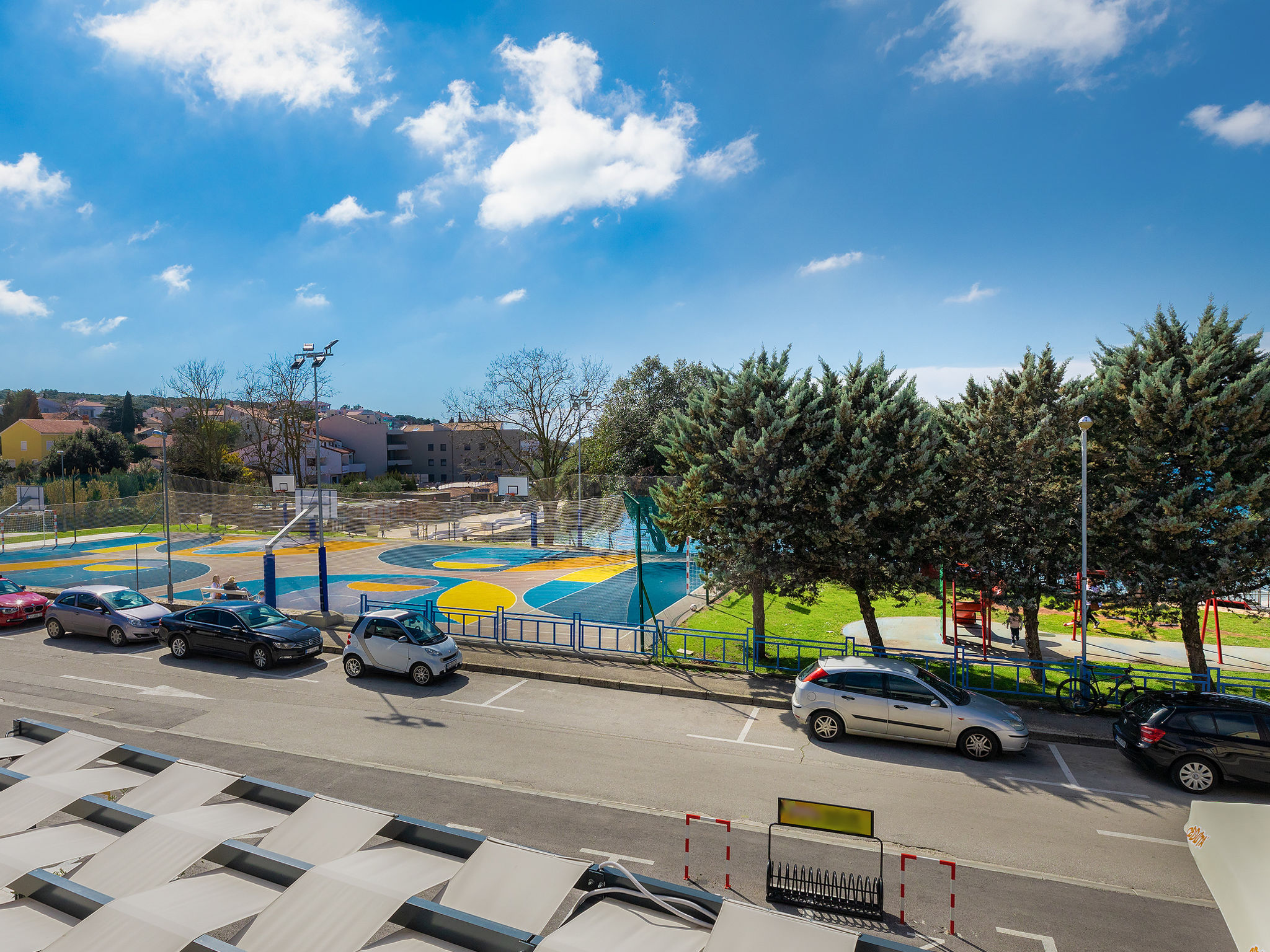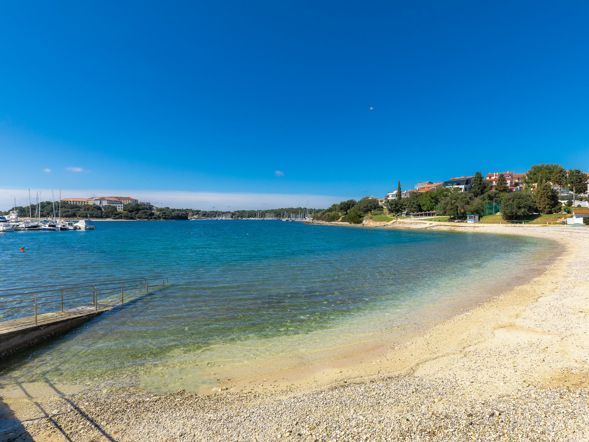 Schönes Mehrfamilienhaus "Wing 77". Im Ortsteil Pješčana Uvala, 6 km vom Zentrum von Pula, sonnige Lage, 50 m vom Meer, 50 m vom Strand. Im Hause: Internetzugang. Parkplatz beim Haus. Einkaufsgeschäft 500 m, Supermarkt 3.5 km, Restaurant, Kieselstrand, Steinstrand, Felsstrand 50 m. Jacht-Hafen 500 m, Surfschule 2 km, Segelschule 2 km, Tennis 2 km, Reitstall 5 km. Nahe gelegene Sehenswürdigkeiten: Amphitheater 6 km. Bitte beachten: Flugplatz 10 km vom Haus. Im Erdgeschoss: Einkaufsgeschäft, Café.