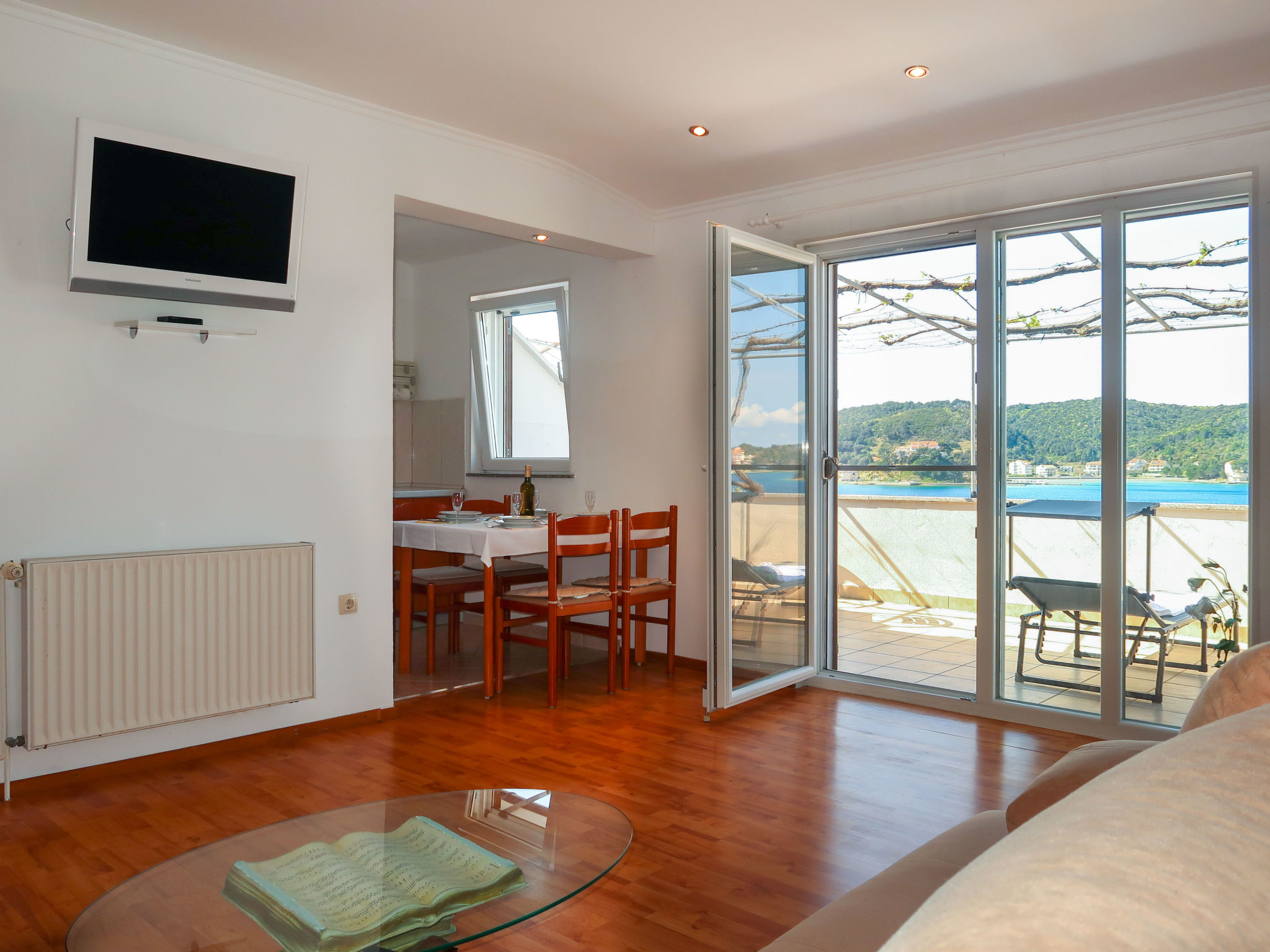 Supetarska Draga 7 km von Rab: Dreifamilienhaus "Katica". Sonnige, erhöhte Lage, 100 m vom Meer, 100 m vom Strand. Zur Mitbenutzung: Grundstück 1'000 m2 (eingezäunt). Terrasse (30 m2), Gartenmöbel, Grill. Im Hause: Internetzugang, Waschmaschine (extra) (zur Mitbenutzung). Parkplatz beim Haus auf dem Grundstück. Einkaufsgeschäft 700 m, Restaurant 400 m, Sandstrand 5 km, Kieselstrand 100 m (klein). Jacht-Hafen 700 m. Bitte beachten: private Bootsanlegestelle (extra) auf Anfrage.