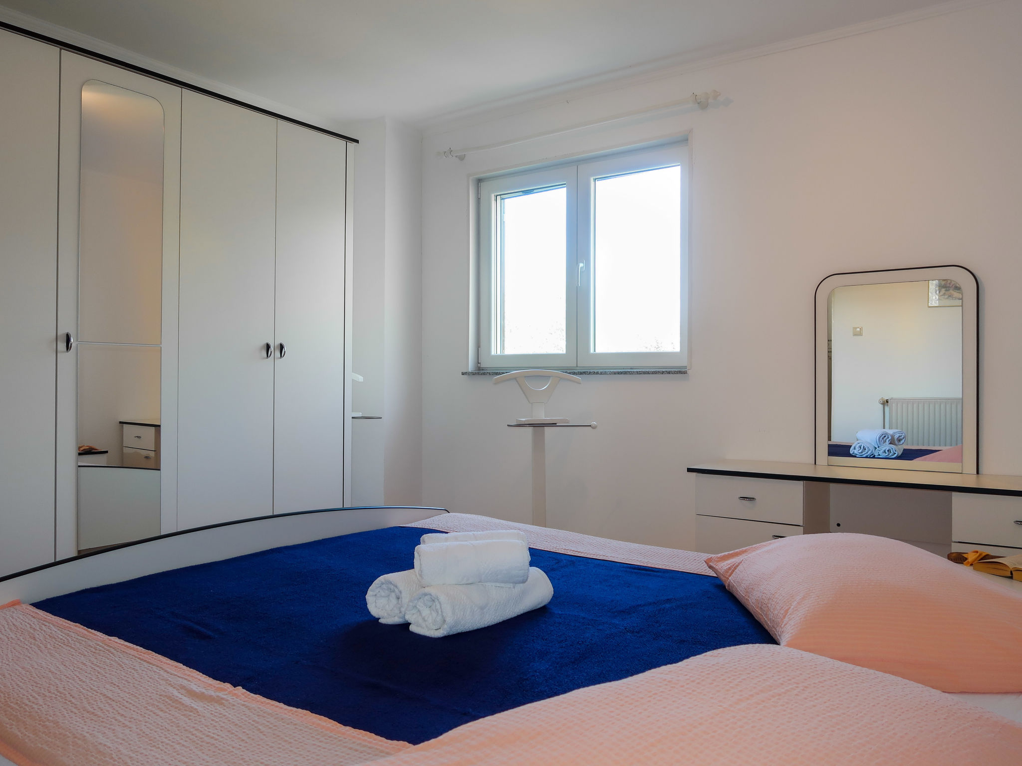 2-Zimmer-Wohnung 50 m2 im 1. Stock. Wohn-/Esszimmer mit 1 Doppeldiwanbett (180 cm, Länge 200 cm), Sat-TV. Ausgang zum Balkon. Eingang mit Klimaanlage. 1 Zimmer mit 1 franz. Bett (180 cm, Länge 200 cm). Offene Küche (2 Kochplatten, Backofen, 2 Flammen, Wasserkocher, Mikrowelle, elektrische Kaffeemaschine). Dusche/WC. Klimaanlage (extra). Balkon 15 m2. Balkonmöbel. Schöne Sicht auf das Meer. Zur Verfügung: Internet (Wireless LAN, gratis). Bitte beachten: Nichtraucher-Unterkunft. 1 Haustier/Hund erlaubt. Feuerlöscher.