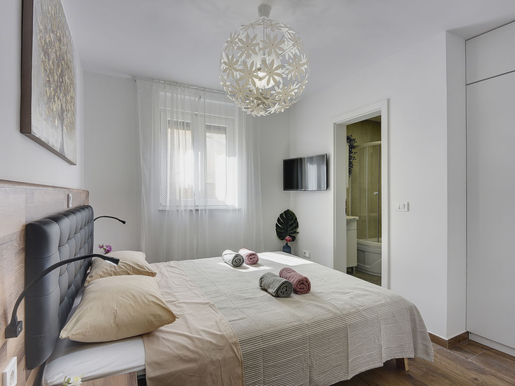 Ližnjan 2 km von Medulin: Villa "Noemi", auf 2 Stockwerken. 1 km vom Zentrum von Ližnjan, ruhige, sonnige, erhöhte Lage, 1 km vom Meer, 1.2 km vom Strand. Zur Alleinbenutzung: Grundstück 590 m2 (eingezäunt), Garten mit Pflanzen, Schwimmbad eckig (27 m2, 130 cm tief, 01.05.-01.10.) mit Innentreppe. Aussendusche, Terrasse (20 m2), Gartenmöbel, Grill. Im Hause: Internetzugang, Waschmaschine. Parkplatz (für 2 Autos, überdacht) beim Haus auf dem Grundstück. Einkaufsgeschäft 650 m, Restaurant 600 m, Sandstrand 2 km, Kieselstrand 1.2 km, Felsstrand 1.2 km. Tennis 500 m, Reitstall 2 km. Nahe gelegene Sehenswürdigkeiten: Adrenalin park 5 km, Nature park Kamenjak 10 km. Jugendgruppen nur auf Anfrage. Das Haus besteht aus 2 Wohnungen vermietet als eine Einheit. .