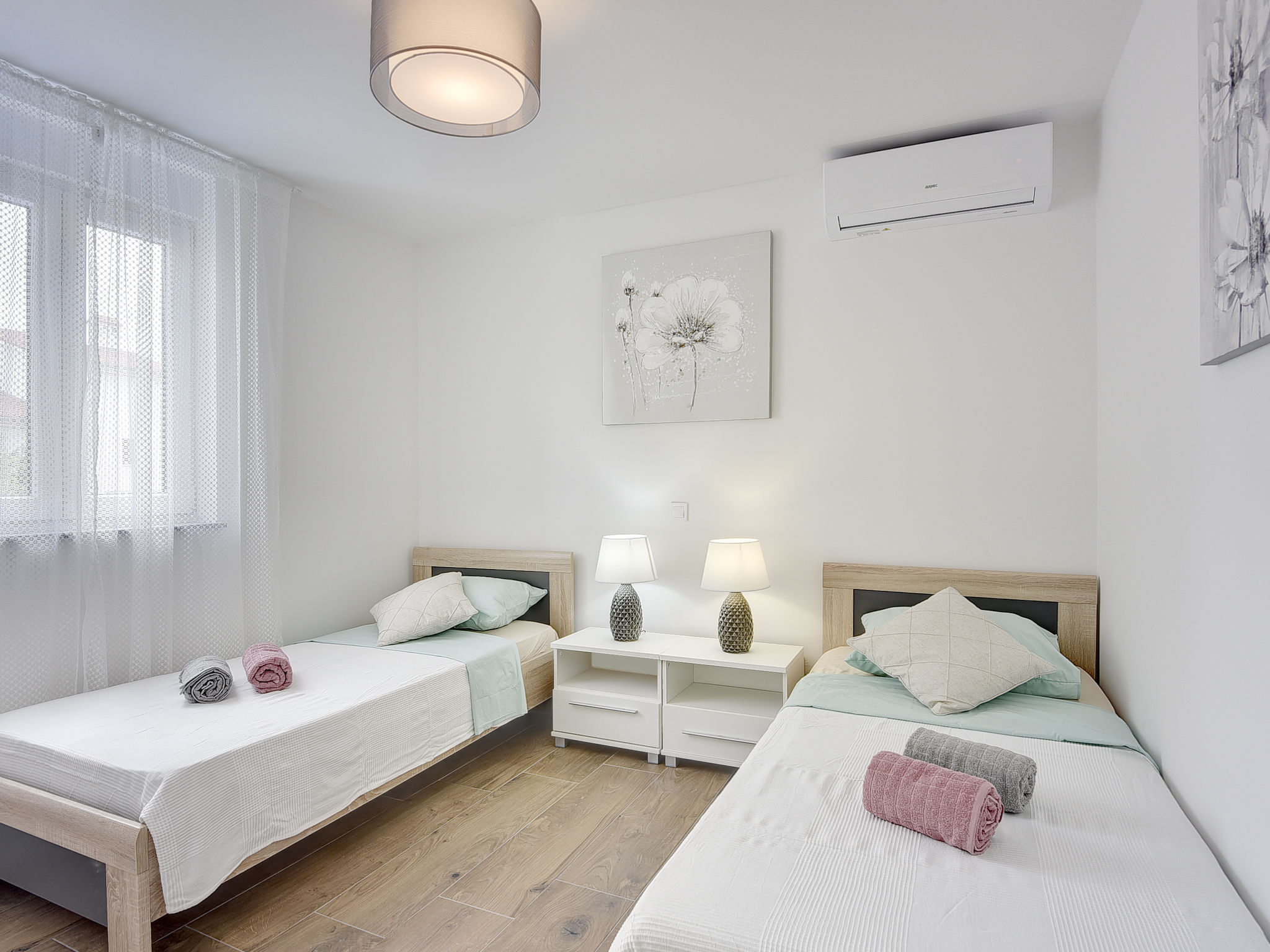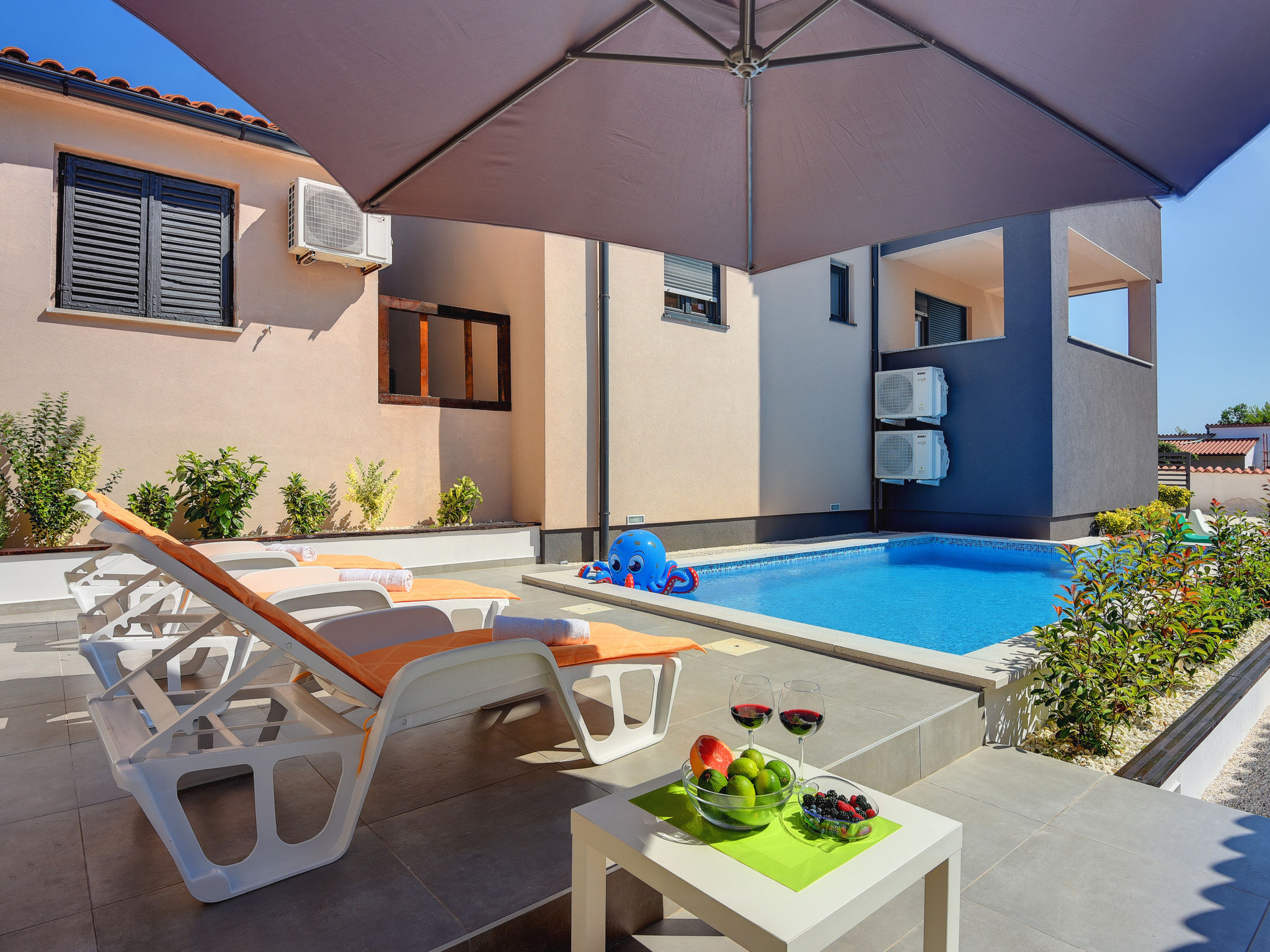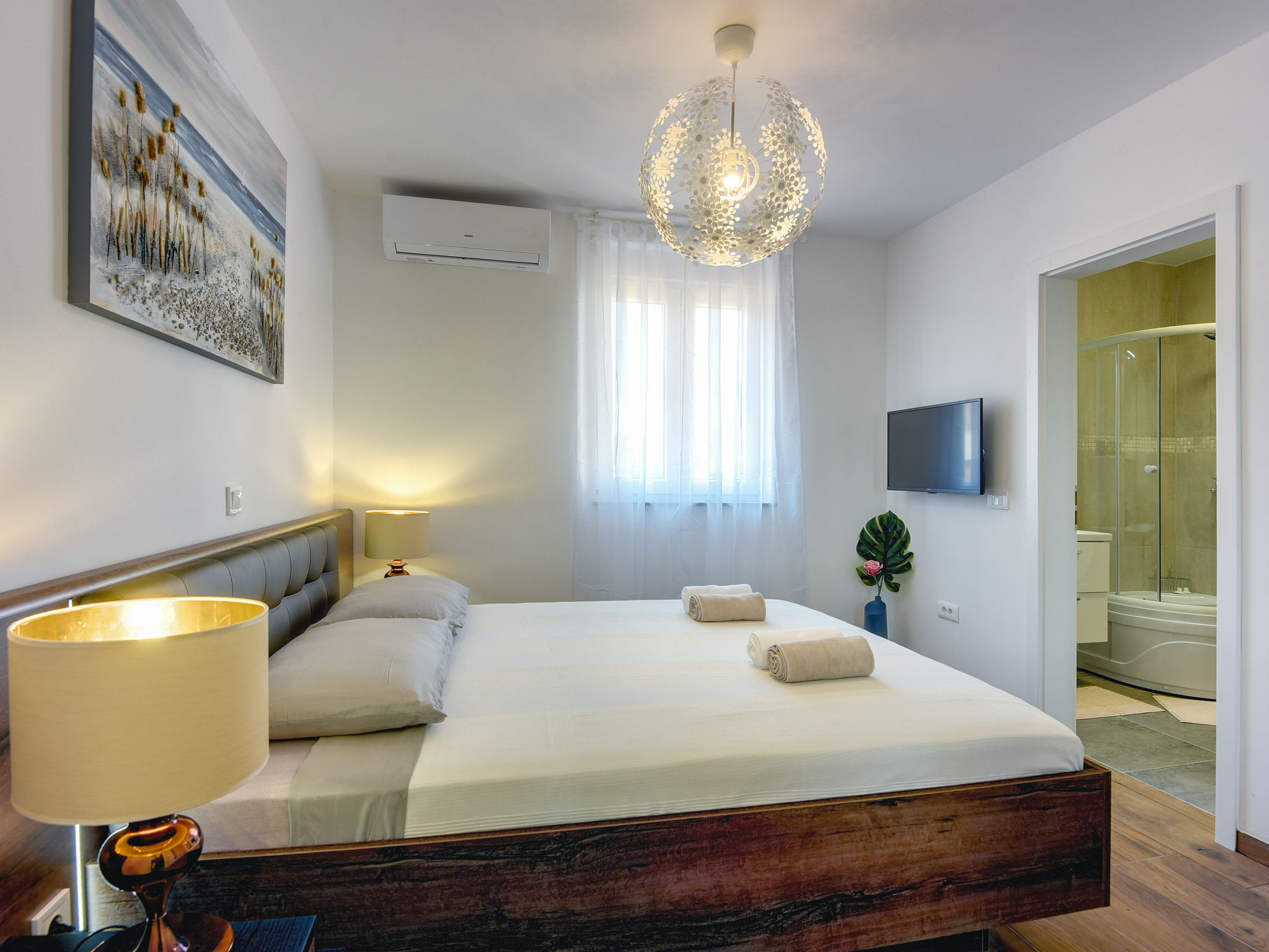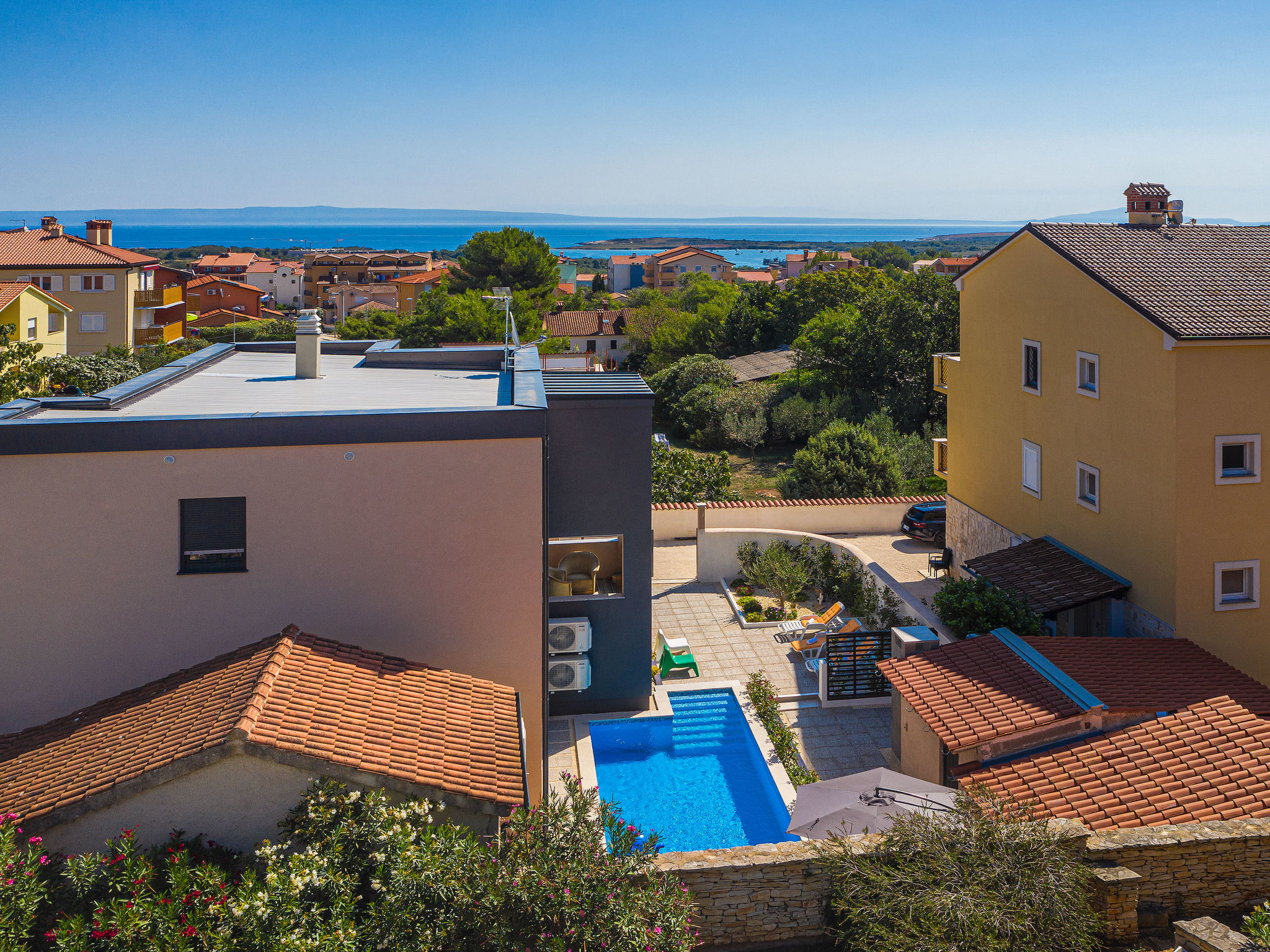 6-Zimmer-Villa 130 m2 auf 2 Stockwerken. Wohn-/Esszimmer mit 1 Diwanbett (140 cm, Länge 200 cm), Sat-TV und Klimaanlage. Ausgang zur Terrasse. 1 Zimmer mit 2 Betten (90 cm, Länge 200 cm), Klimaanlage. 1 Zimmer mit 1 franz. Bett (160 cm, Länge 200 cm), Dusche/WC und Sat-TV. Offene Küche (Backofen, Geschirrspüler, 4 Glaskeramikherd Platten, Wasserkocher, Mikrowelle, Tiefkühler, elektrische Kaffeemaschine). Dusche/WC. Obergeschoss: Wohn-/Esszimmer mit 1 Diwanbett (140 cm, Länge 200 cm), Sat-TV und Klimaanlage. Ausgang zur Terrasse. 1 Zimmer mit 1 franz. Bett (160 cm, Länge 200 cm), Dusche/WC, Sat-TV und Klimaanlage. 1 Zimmer mit 1 franz. Bett (160 cm, Länge 200 cm). Offene Küche (Backofen, Geschirrspüler, 4 Glaskeramikherd Platten, Wasserkocher, Mikrowelle, Tiefkühler, elektrische Kaffeemaschine). Dusche/WC. Terrasse 10 m2, überdacht, Terrasse 22 m2 teilweise überdacht. Terrassenmöbel, Liegestühle. Sicht auf das Meer, das Schwimmbad und den Garten. Zur Verfügung: Waschmaschine, Safe, Haartrockner. Internet (Wireless LAN, gratis).