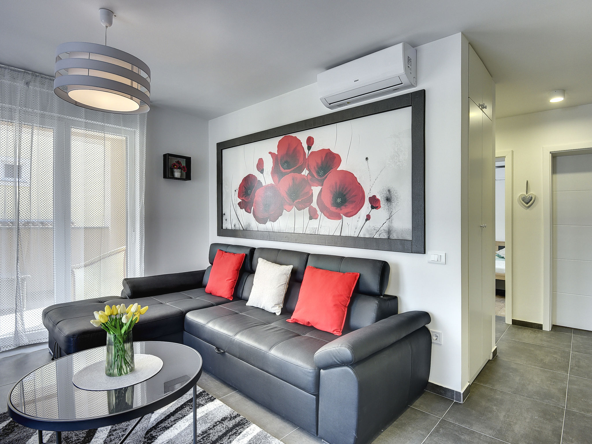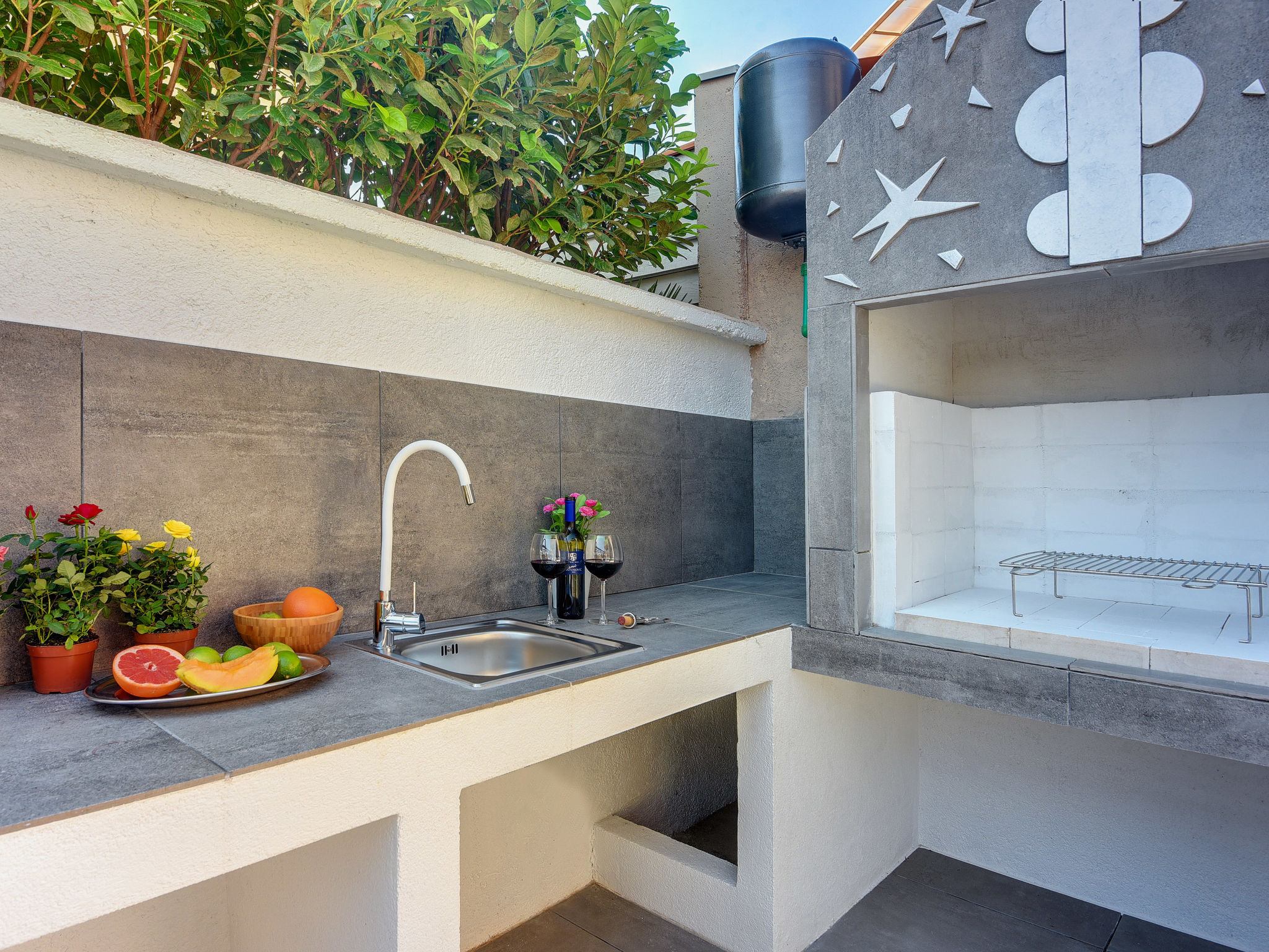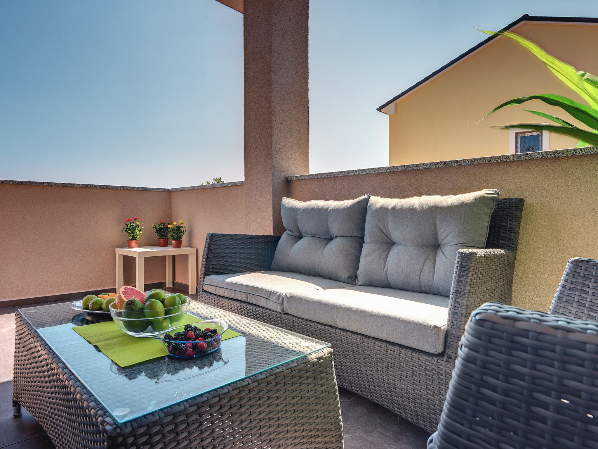 6-Zimmer-Villa 130 m2 auf 2 Stockwerken. Wohn-/Esszimmer mit 1 Diwanbett (140 cm, Länge 200 cm), Sat-TV und Klimaanlage. Ausgang zur Terrasse. 1 Zimmer mit 2 Betten (90 cm, Länge 200 cm), Klimaanlage. 1 Zimmer mit 1 franz. Bett (160 cm, Länge 200 cm), Dusche/WC und Sat-TV. Offene Küche (Backofen, Geschirrspüler, 4 Glaskeramikherd Platten, Wasserkocher, Mikrowelle, Tiefkühler, elektrische Kaffeemaschine). Dusche/WC. Obergeschoss: Wohn-/Esszimmer mit 1 Diwanbett (140 cm, Länge 200 cm), Sat-TV und Klimaanlage. Ausgang zur Terrasse. 1 Zimmer mit 1 franz. Bett (160 cm, Länge 200 cm), Dusche/WC, Sat-TV und Klimaanlage. 1 Zimmer mit 1 franz. Bett (160 cm, Länge 200 cm). Offene Küche (Backofen, Geschirrspüler, 4 Glaskeramikherd Platten, Wasserkocher, Mikrowelle, Tiefkühler, elektrische Kaffeemaschine). Dusche/WC. Terrasse 10 m2, überdacht, Terrasse 22 m2 teilweise überdacht. Terrassenmöbel, Liegestühle. Sicht auf das Meer, das Schwimmbad und den Garten. Zur Verfügung: Waschmaschine, Safe, Haartrockner. Internet (Wireless LAN, gratis).