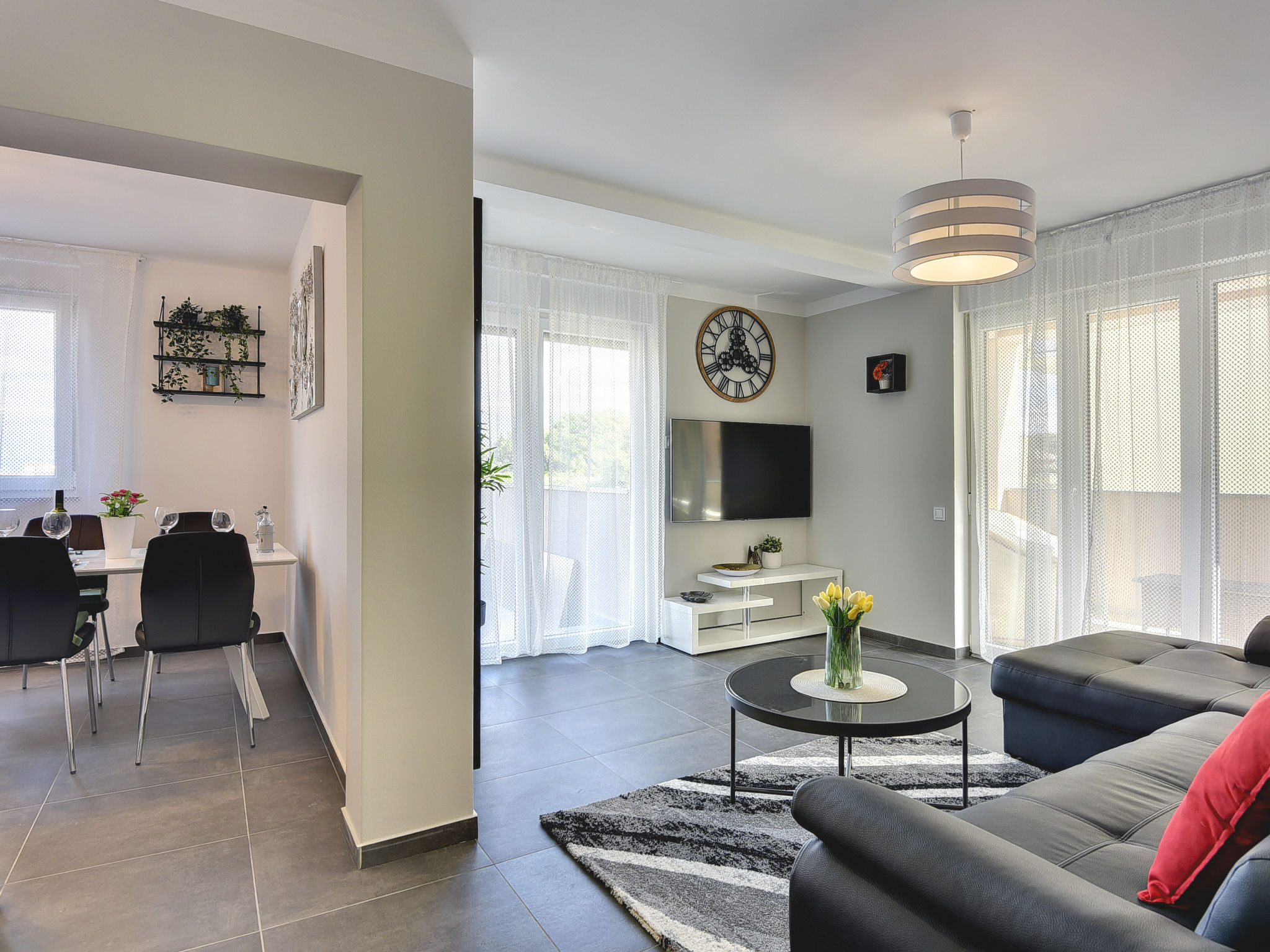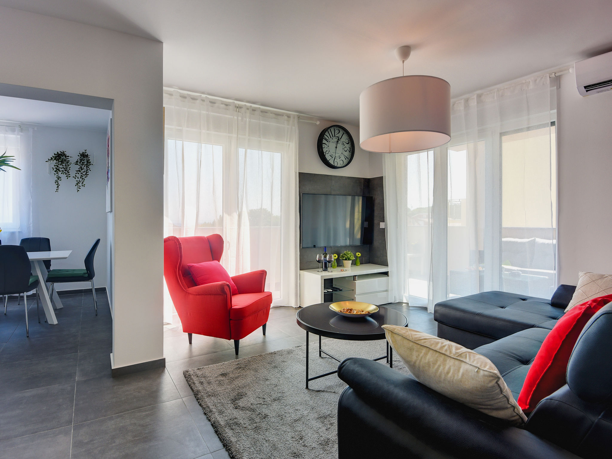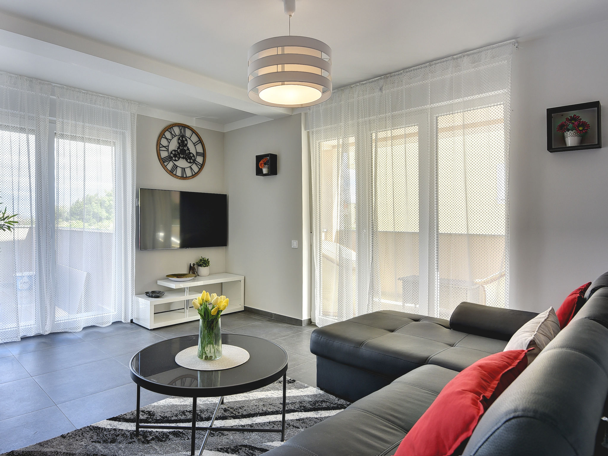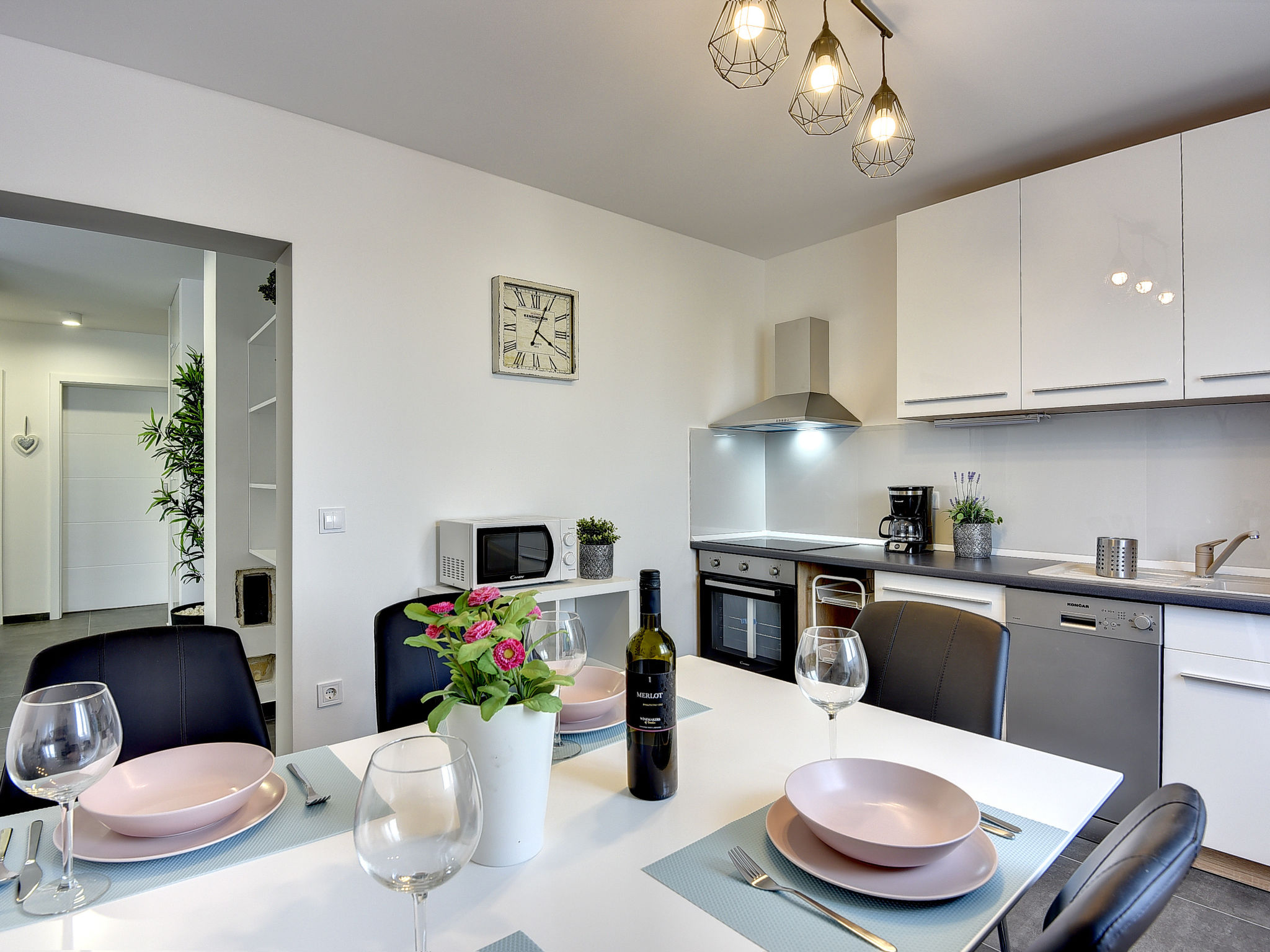6-Zimmer-Villa 130 m2 auf 2 Stockwerken. Wohn-/Esszimmer mit 1 Diwanbett (140 cm, Länge 200 cm), Sat-TV und Klimaanlage. Ausgang zur Terrasse. 1 Zimmer mit 2 Betten (90 cm, Länge 200 cm), Klimaanlage. 1 Zimmer mit 1 franz. Bett (160 cm, Länge 200 cm), Dusche/WC und Sat-TV. Offene Küche (Backofen, Geschirrspüler, 4 Glaskeramikherd Platten, Wasserkocher, Mikrowelle, Tiefkühler, elektrische Kaffeemaschine). Dusche/WC. Obergeschoss: Wohn-/Esszimmer mit 1 Diwanbett (140 cm, Länge 200 cm), Sat-TV und Klimaanlage. Ausgang zur Terrasse. 1 Zimmer mit 1 franz. Bett (160 cm, Länge 200 cm), Dusche/WC, Sat-TV und Klimaanlage. 1 Zimmer mit 1 franz. Bett (160 cm, Länge 200 cm). Offene Küche (Backofen, Geschirrspüler, 4 Glaskeramikherd Platten, Wasserkocher, Mikrowelle, Tiefkühler, elektrische Kaffeemaschine). Dusche/WC. Terrasse 10 m2, überdacht, Terrasse 22 m2 teilweise überdacht. Terrassenmöbel, Liegestühle. Sicht auf das Meer, das Schwimmbad und den Garten. Zur Verfügung: Waschmaschine, Safe, Haartrockner. Internet (Wireless LAN, gratis).