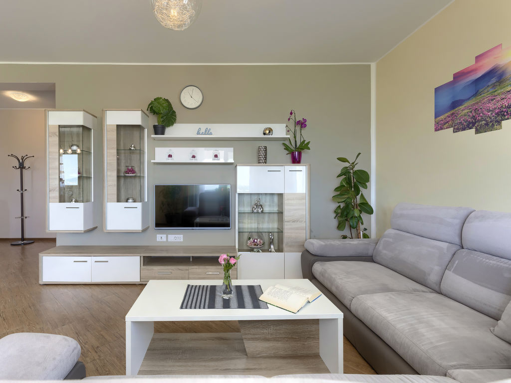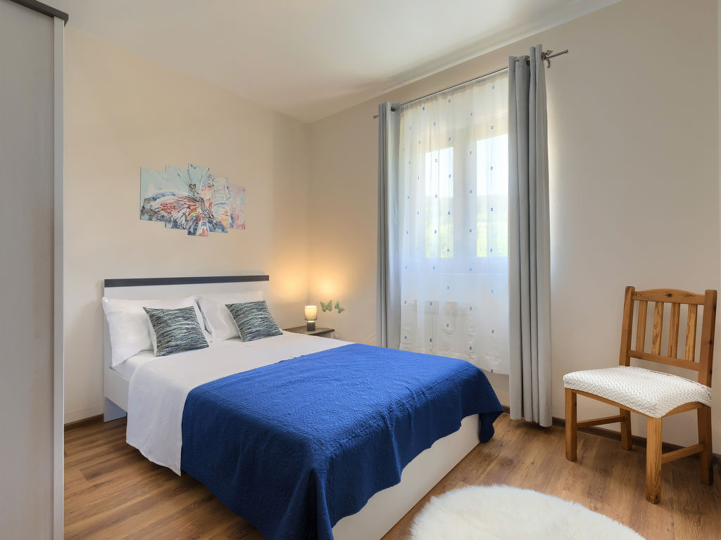 Einfamilienhaus "Montebello". Im Weiler Kranceti, 2 km vom Zentrum von Motovun, ruhige, sonnige Lage, 26 km vom Meer. Zur Alleinbenutzung: Grundstück 1'000 m2, Garten mit Rasen, Schwimmbad eckig (7 x 4 m, 33 m2, 150 cm tief, 01.05.-30.09.) mit Innentreppe. Aussendusche, Terrasse (20 m2), Gartenmöbel, Grill. Im Hause: Internetzugang, Waschmaschine. Parkplatz (für 2 Autos) beim Haus auf dem Grundstück. Einkaufsgeschäft 2.5 km, Restaurant 2.5 km, Kieselstrand 26 km. Wanderwege ab Haus 2.5 km, Radweg 2.5 km. Nahe gelegene Sehenswürdigkeiten: Aquapark 23 km. Der Besitzer akzeptiert keine Jugendgruppen. Erdgeschoss ist geschlossen und nicht bewohnt.