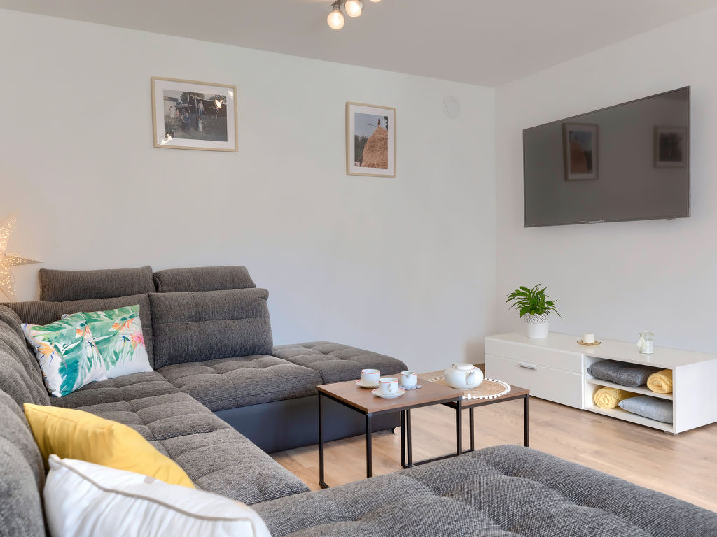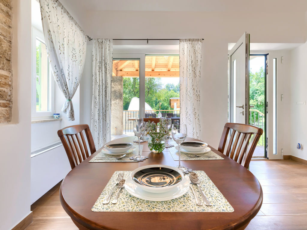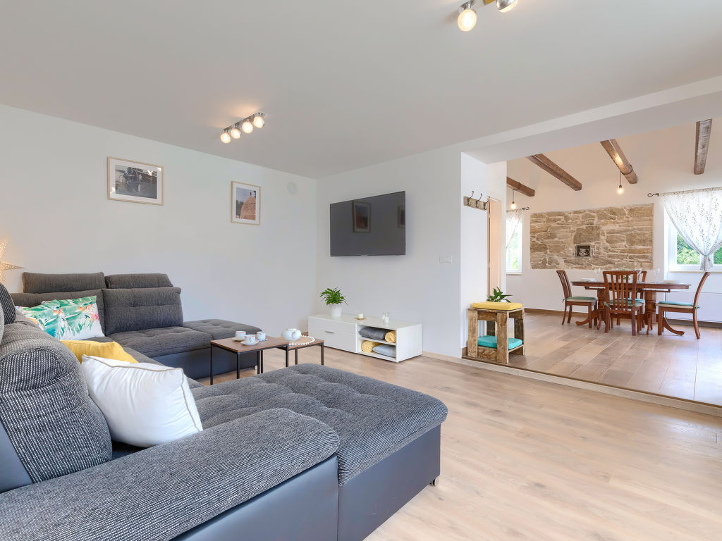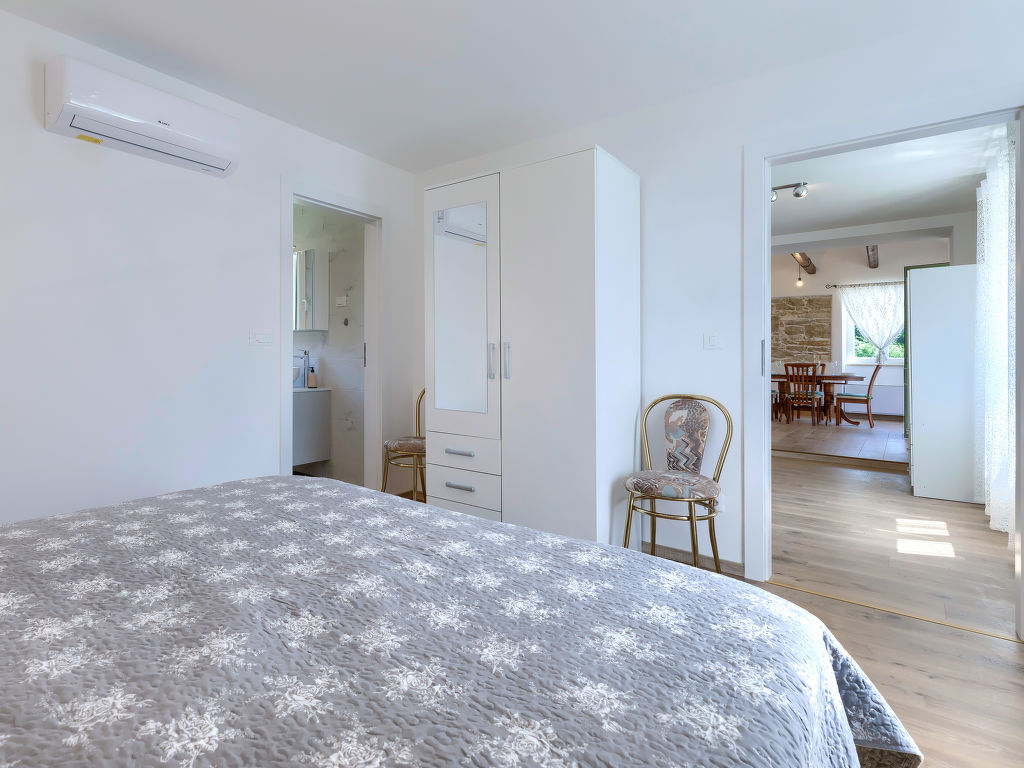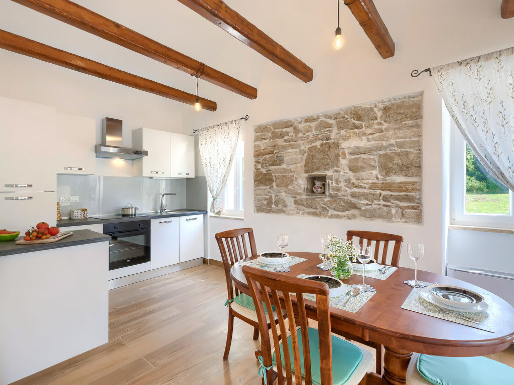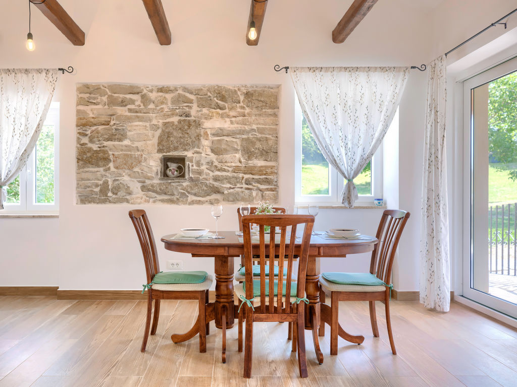 Doppelhaus "Villa Dobrila", aus dem 19. Jahrhundert, renoviert im Jahre 2021. Im Weiler Stancija Pataj, 4.5 km vom Zentrum von Pazin, ruhige, sonnige Lage, 33 km vom Meer. Zur Alleinbenutzung: Grundstück 1'000 m2, Bäumen, Wiese, Aufstellpool rund (3.96 m Durchmesser, 100 cm tief, 01.05.-30.09.). Im Hause: Internetzugang, Waschmaschine. Parkplatz (für 2 Autos, überdacht) beim Haus auf dem Grundstück. Einkaufsgeschäft 1 km, Restaurant 4 km, Kieselstrand 33 km. Wanderwege ab Haus 100 m, Radweg 150 m. Der Besitzer akzeptiert keine Jugendgruppen.