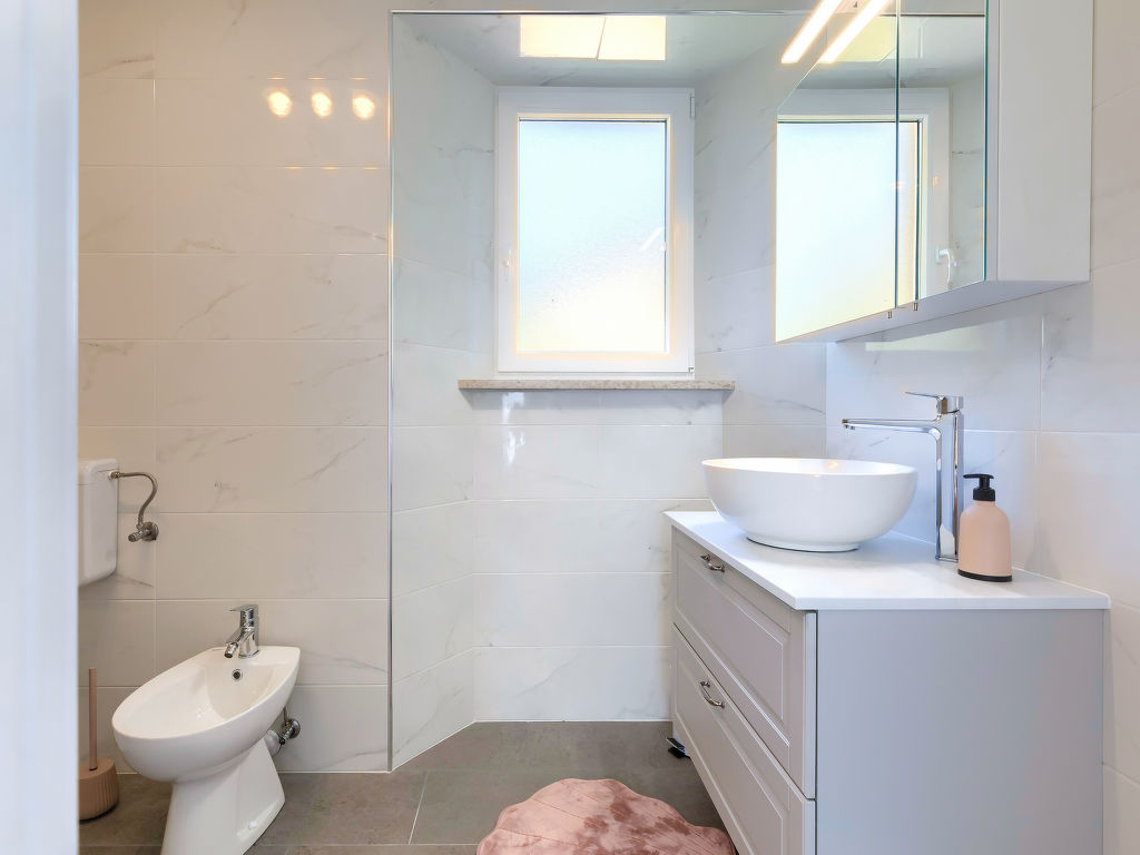 2-Zimmer-Doppelhaushälfte 60 m2. Objekt geeignet für 2 Erwachsene + 2 Kinder. Schön und gemütlich eingerichtet: Wohn-/Esszimmer mit 1 Doppeldiwanbett (140 cm, Länge 200 cm), Sat-TV (Flachbildschirm), Klimaanlage. Ausgang zur Terrasse. 1 Zimmer mit 1 franz. Bett (180 cm, Länge 200 cm), Dusche/Bidet/WC und Klimaanlage. Offene Küche (Backofen, Geschirrspüler, 4 Glaskeramikherd Platten, Wasserkocher, Tiefkühler, elektrische Kaffeemaschine). Dusche/WC. Terrasse 15 m2, überdacht. Terrassenmöbel, Elektrogrill (mobil), Liegestühle. Sicht auf das Schwimmbad. Zur Verfügung: Haartrockner. Internet (Wireless LAN, gratis).